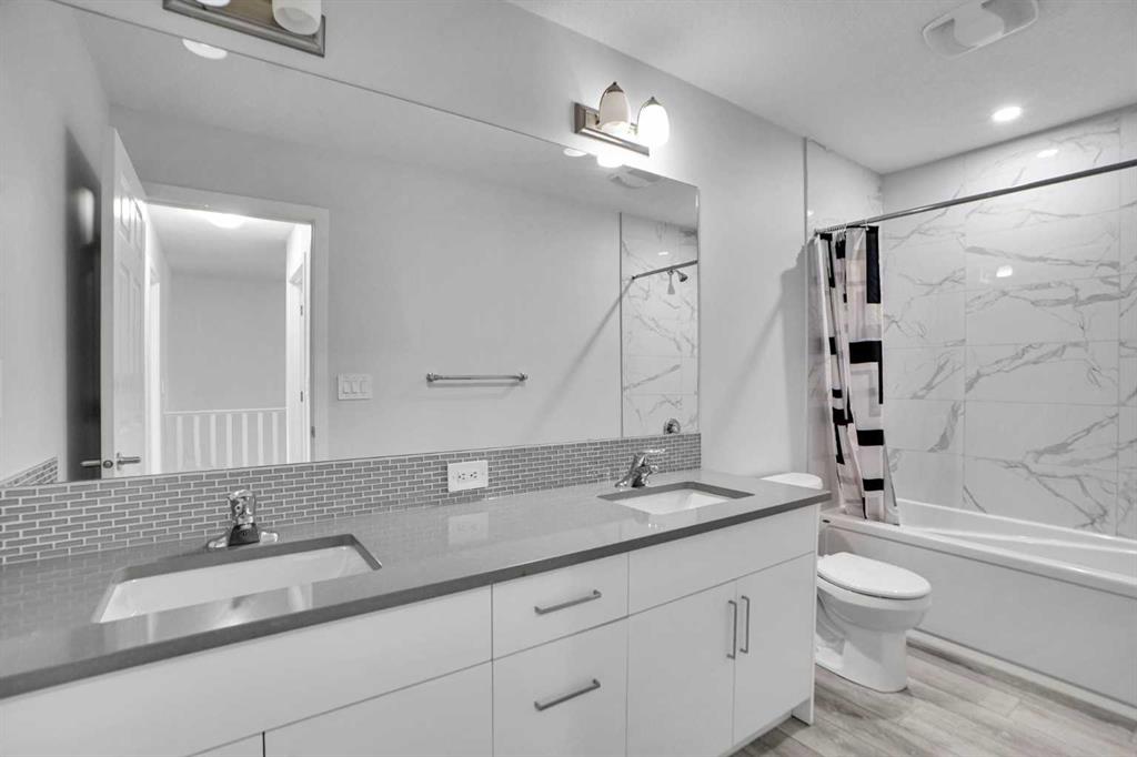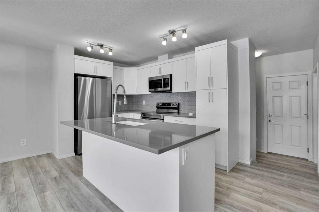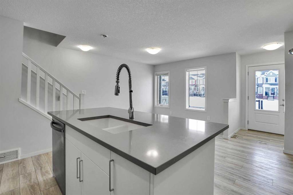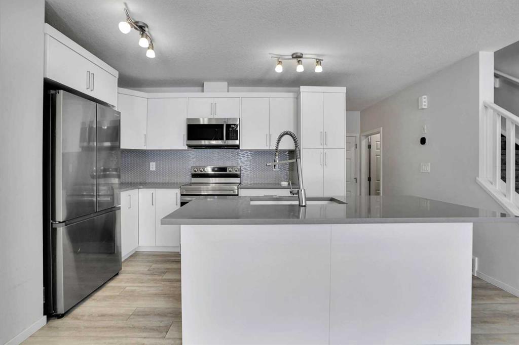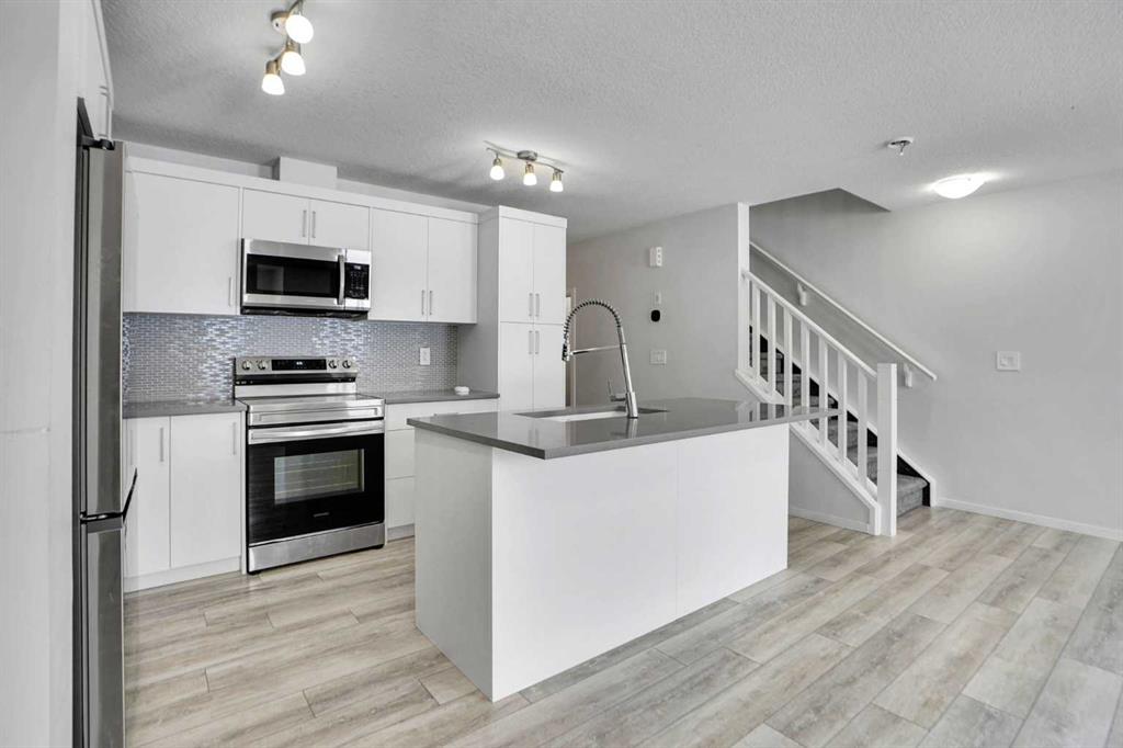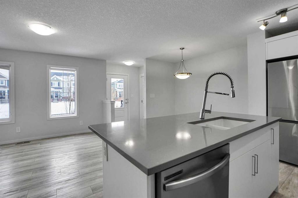 NO CONDO FEES – Discover exceptional value and stylish living at 216 Windbury Lane SW, a beautifully upgraded 3-bedroom, 2.5-bath townhome nestled in the heart of South Windsong, Airdrie. Perfectly positioned directly across from a park and scenic walking paths, this home offers the ideal blend of comfort, location, and modern design—with zero condo fees. Step into a bright and inviting open-concept main floor featuring luxury vinyl plank flooring, knock-down ceilings, and an abundance of natural light. The designer kitchen is the true showpiece, showcasing sleek quartz countertops, stainless steel appliances, upgraded cabinetry, and a large central island with bar seating, making it perfect for hosting or enjoying casual family meals. Upstairs, the spacious primary suite offers a tranquil retreat with a luxurious tiled ensuite shower, while two additional bedrooms provide ample space for kids, guests, or a home office. Both bathrooms are finished with high-end tilework and modern fixtures for a spa-like feel. Enjoy the convenience of an attached garage, a private driveway, and a fully landscaped exterior—all just minutes from top-rated schools, shopping, and quick access to Deerfoot Trail, CrossIron Mills, and North Calgary. Whether you're a first-time buyer, a growing family, or looking to downsize without sacrificing style, this move-in-ready gem delivers the perfect balance of function and flair—all with no condo fees. Don't miss this rare opportunity!