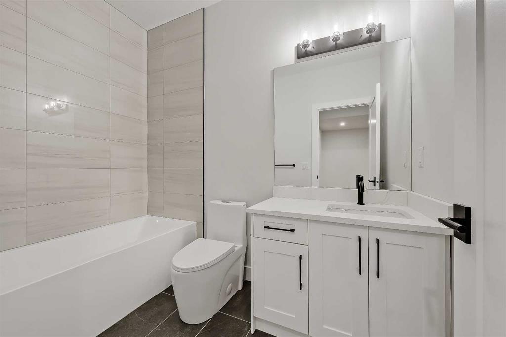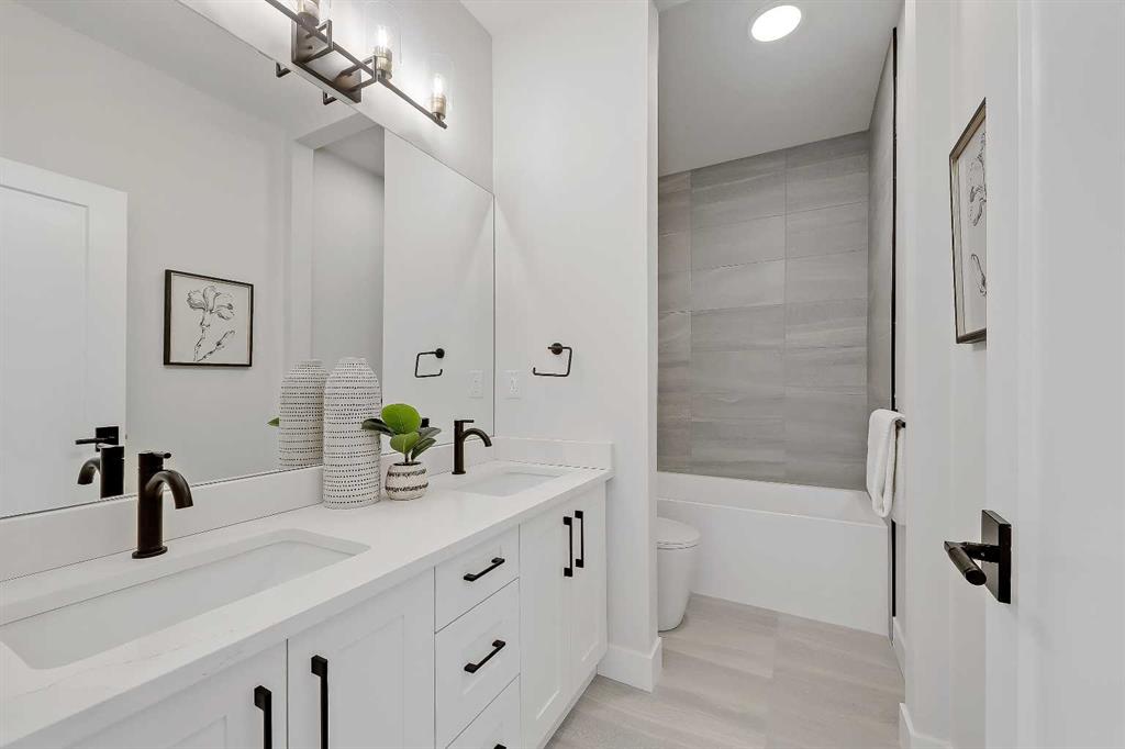 Striking design meets everyday functionality in this BRAND NEW inner-city infill, where curated finishes, a standout layout, and an ATTACHED DOUBLE GARAGE come together in a way that’s rarely seen. From the moment you step inside, DESIGNER TILE sets the tone, paired with clean lines, warm wood tones, and a bright, intentional flow that feels elevated without sacrificing comfort. The FOYER makes an immediate impression with statement tile and thoughtful storage, leading into a front PRIVATE OFFICE with oversized windows, ideal for working from home in a space that feels separate yet connected. Just beyond, the DINING ROOM sits in a central position, creating a natural transition between the front of the home and the main living areas, perfect for both everyday meals and hosting. The KITCHEN anchors the space with a long QUARTZ ISLAND, BUILT-IN OVEN, sleek cabinetry, and a layout designed to function as well as it looks. At the rear, the LIVING ROOM is warm and inviting, centred around a GAS FIREPLACE with CUSTOM BUILT-INS. Large sliding doors span the back wall, bringing in natural light and opening onto the deck and backyard for an easy indoor-outdoor connection. A discreet POWDER ROOM and smart storage complete the main level. Upstairs, the PRIMARY SUITE feels like a true retreat with VAULTED CEILINGS, large windows, and a spacious WALK-IN CLOSET. The ENSUITE is finished with a FREESTANDING SOAKER TUB, GLASS SHOWER, and DOUBLE VANITY, blending clean design with everyday comfort. Two additional bedrooms are well-sized and connected by a JACK & JILL BATHROOM, while the centrally located LAUNDRY room adds convenience exactly where it’s needed. The fully finished basement expands your living space with a large REC ROOM, WET BAR, and a fourth bedroom with its own WALK-IN CLOSET, plus a full bathroom. Whether used for entertaining, guests, or a private retreat, this level offers flexibility without compromise. Direct access to the ATTACHED DOUBLE GARAGE is paired with a functional MUDROOM entry, designed for real life. Outside, the backyard is private and usable, with space to relax and entertain. The elevated deck and large rear windows enhance the connection between indoor and outdoor living. Located in the heart of SOUTH CALGARY, this home offers quick access to MARDA LOOP, where you’ll find local favourites like MERCATO, VILLAGE ICE CREAM, and PHIL & SEBASTIAN COFFEE. You’re just minutes to RIVER PARK and the ELBOW RIVER PATHWAYS for walking, biking, and year-round outdoor living. Nearby schools include ALTADORE SCHOOL and CENTRAL MEMORIAL HIGH SCHOOL, with easy access to MOUNT ROYAL UNIVERSITY and downtown via 14TH STREET SW and CROWCHILD TRAIL. A refined home that delivers on layout, design, and livability, with features that truly set it apart. *Photos are from show suite / other side.