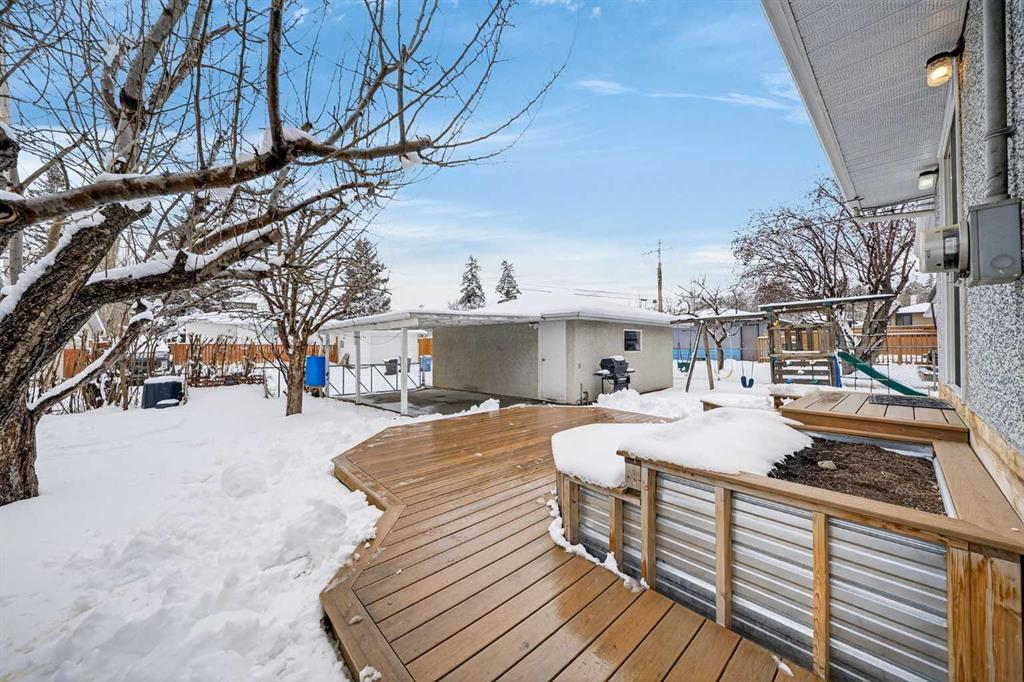 Welcome to this lovingly maintained and thoughtfully updated home in the highly desirable community of Haysboro, set on a beautiful 55 x 100 ft lot. Known for its mature tree-lined streets, family-friendly atmosphere, and unbeatable convenience, Haysboro offers quick access to downtown, major roadways, and transit—making it a top choice for commuters and families alike. Inside, you’ll find original hardwood floors, fresh paint throughout, and a flexible layout with 2 bedrooms plus a den that can easily convert back to a third bedroom upstairs. The renovated kitchen is bright and functional, opening onto a newer south-facing deck with built-in stepped planters—perfect for relaxing or entertaining in the sun. The backyard is a true retreat, featuring mature landscaping with pear, cherry and apple trees, perennials, and plenty of space to garden or unwind. Downstairs, the fully finished basement offers a spacious family room, bedroom with ensuite, flex area, newer carpet, and newer legal windows. French drains and updated window wells provide peace of mind and long-term durability. With an updated main bathroom and recently replaced windows, this home is move-in ready. Enjoy being just minutes from the LRT, with a quick and easy commute to downtown, as well as close proximity to schools, parks, shopping, and everyday amenities. This is a fantastic opportunity to own a beautifully updated home in one of Calgary’s most accessible and established neighborhoods.