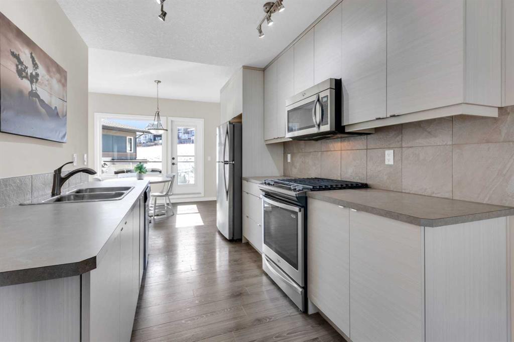 This bright townhouse features large windows that bring in natural light and offer great views of green space. This home has just been repainted. This townhome is surrounded by paved walking paths, green space and natural reserves. Bow Valley High School is a 5- to 10-minute walk away. On the open-concept main level, you will find ample space to enjoy, including a kitchen featuring upgraded stainless-steel appliances, including a gas range; a powder room; and a dining area with a door leading out to a private deck. Professionally kept grounds featuring a fire-pit and garden boxes, along with lawns, trees and shrubs. Yard maintenance includes lawn mowing and snow removal. Upstairs features two master bedrooms, each with its own full en-suite bathroom and walk-in or walk-through closets. Each room is spacious enough for a king-sized bed. The upstairs laundry has a washer, dryer, and ample storage. A linen closet helps with storage, a coat closet on the main floor, and one under the stairs in the garage. Park two vehicles in the heated attached tandem double garage and still have space for a workshop and to store sports equipment. Quiet, respectful neighbours. The house is set back from River Heights Drive and backs onto designated green space. Just a five-minute drive into town and to Spray Lakes Sports and city centre, quick access to HWY22/HWY1 for a 25-minute drive to Calgary or 35 minutes to Kananaskis and just under an hour to Banff. The daily commuter bus to downtown Calgary stops close by.