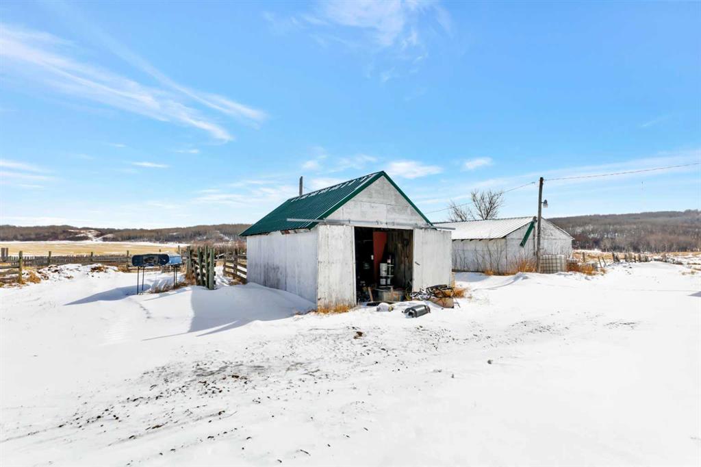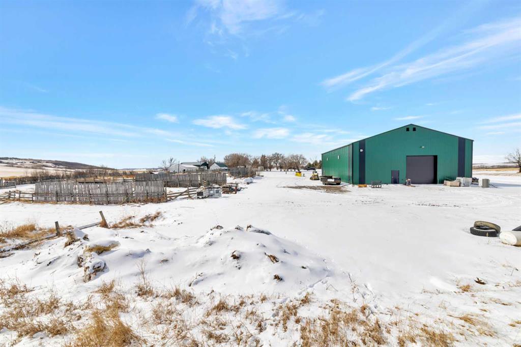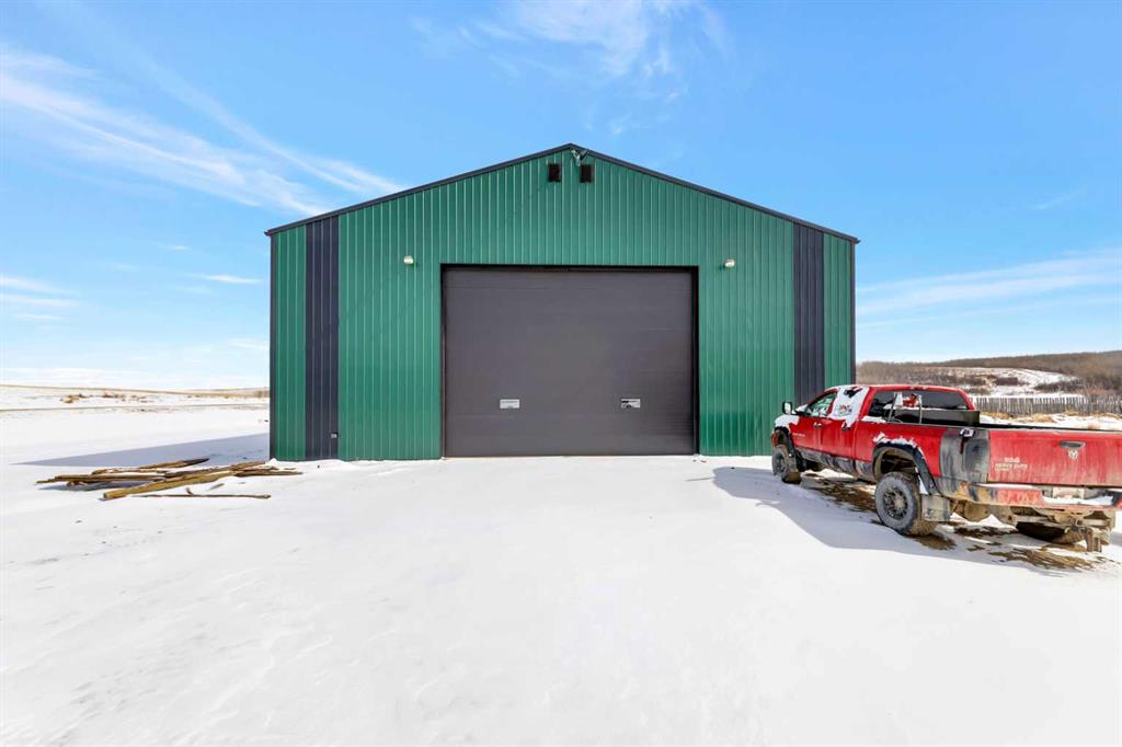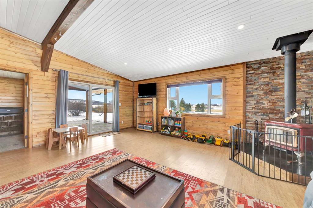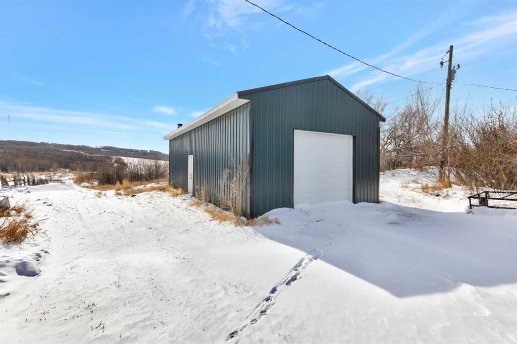 Looking for some peace and quiet? Maybe it's time to get out of the hustle and bustle and slow down. This 18 acre acreage might just be the answer! The property features a large 1,700 square foot home with a 75x54 heated shop with 20' high ceilings and a 20x40 insulated garage with 12' ceilings. The home has a great layout with some key additions and updates made over the years including a large mud room with laundry and massive pantry space. The kitchen has ample storage, counter top space and updated stainless steel appliances. The large dining room over looks the cozy family room with wood stove to help offset heating costs. The main floor has 2 bedrooms and a den with the primary bedroom featuring a walk-in through closet to the newly complete ensuite with stunning tile shower. The basement is complete with lots of storage, an additional bedroom and family room. Outside you'll find lots of space to roam and play with a large chicken coop and an insulated shelter behind the shop to raise pigs. This property is ready for year-round hobby farming and the stunning views are ones you don't want to miss!