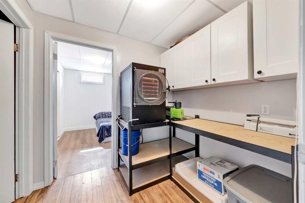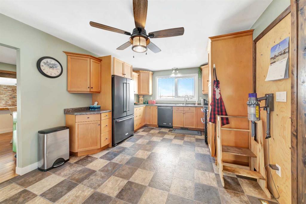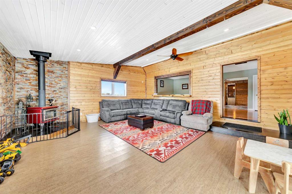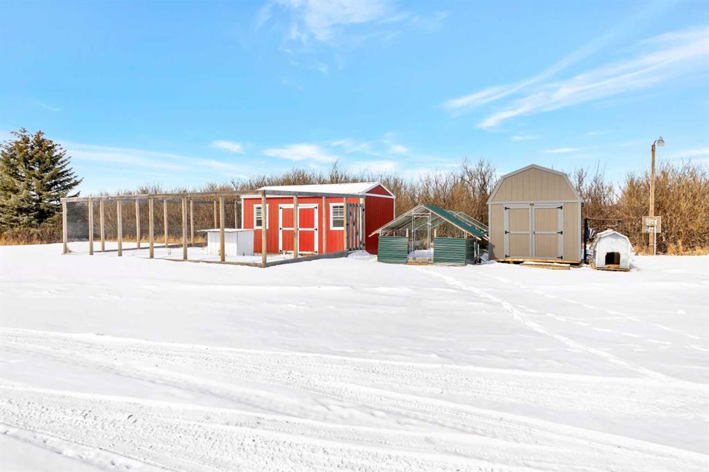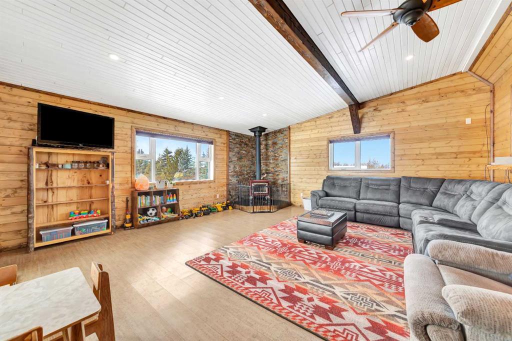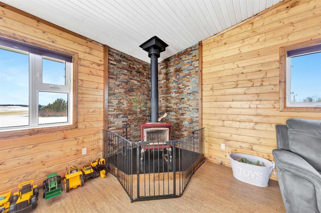 Looking for some peace and quiet? Maybe it's time to get out of the hustle and bustle and slow down. This 18 acre acreage might just be the answer! The property features a large 1,700 square foot home with a 75x54 heated shop with 20' high ceilings and a 20x40 insulated garage with 12' ceilings. The home has a great layout with some key additions and updates made over the years including a large mud room with laundry and massive pantry space. The kitchen has ample storage, counter top space and updated stainless steel appliances. The large dining room over looks the cozy family room with wood stove to help offset heating costs. The main floor has 2 bedrooms and a den with the primary bedroom featuring a walk-in through closet to the newly complete ensuite with stunning tile shower. The basement is complete with lots of storage, an additional bedroom and family room. Outside you'll find lots of space to roam and play with a large chicken coop and an insulated shelter behind the shop to raise pigs. This property is ready for year-round hobby farming and the stunning views are ones you don't want to miss!