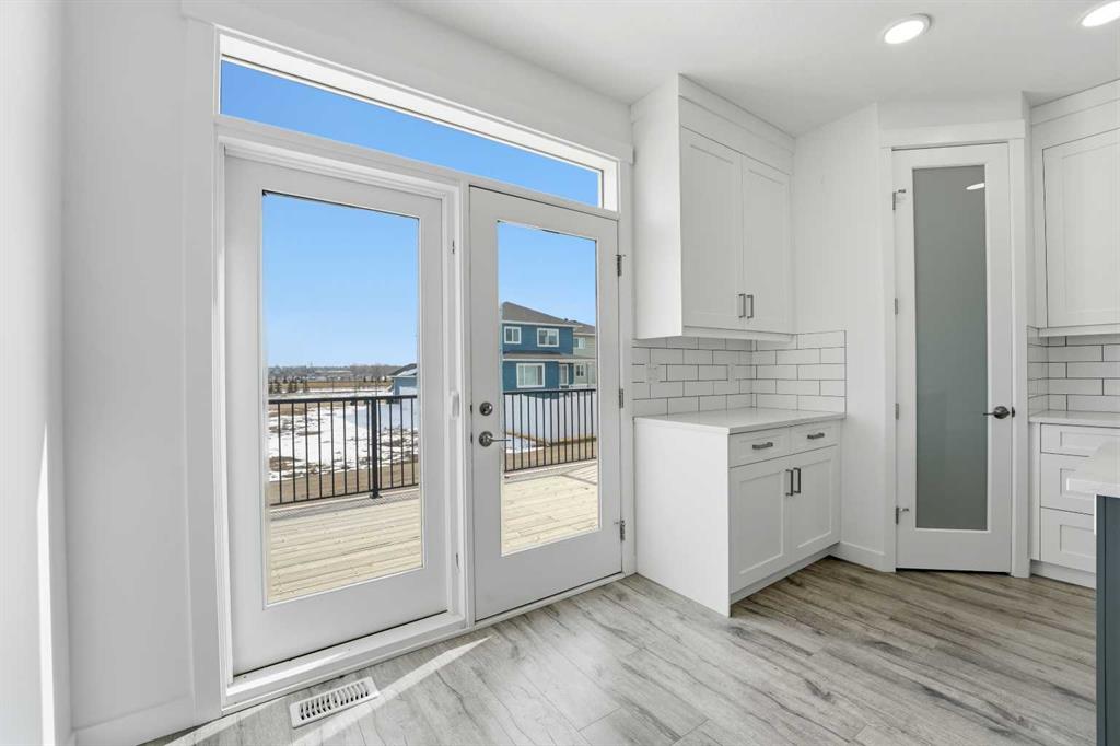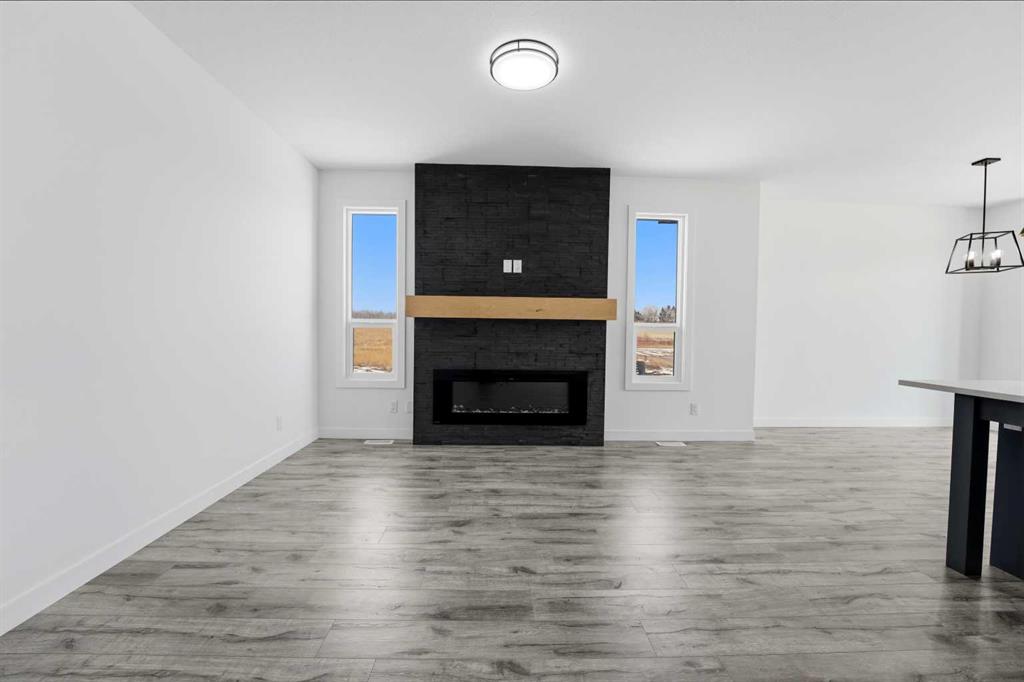 Be the first to call this modern bungalow home! Nestled on a premium corner lot in the serene and sought-after community of Bella Vista. Never lived in and built in 2022, this beautifully crafted home offers over 1,422 sq ft of thoughtfully designed living space, blending modern elegance with everyday functionality. Step inside to discover a bright, open-concept layout highlighted by soaring ceilings, oversized doors, and an abundance of natural light. The inviting living area is anchored by a striking fireplace feature wall, perfect for cozy evenings or entertaining guests. The modern kitchen is a true showpiece, complete with a large central island, ample full-height cabinetry, and a seamless flow into the dining and living spaces. Summer just got sweeter with a large deck off the dining room. The spacious primary suite offers a peaceful retreat, featuring a generous walk-in closet and a sleek ensuite with double vanity, and a floor to ceiling tile shower. A second well-sized bedroom, 4 piece bathroom, and convenient main floor laundry round out the main level. The unfinished basement provides endless potential—whether you envision a home gym, or expansive family room, the space is yours to design. A double attached garage adds both convenience and value. Builder is offering a $4,500 appliance credit, allowing you to customize your new home to your taste. With immediate possession available, this is a rare opportunity to own a pristine, move-in-ready bungalow in a welcoming community.