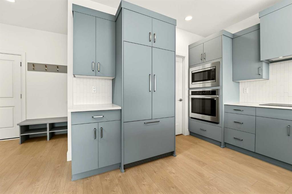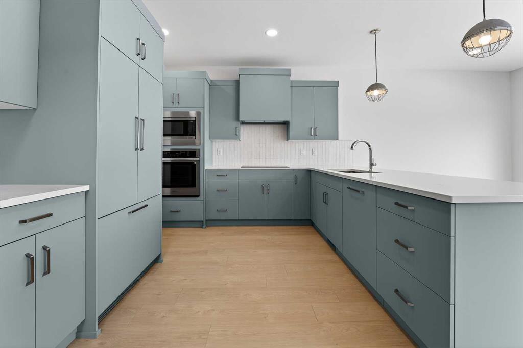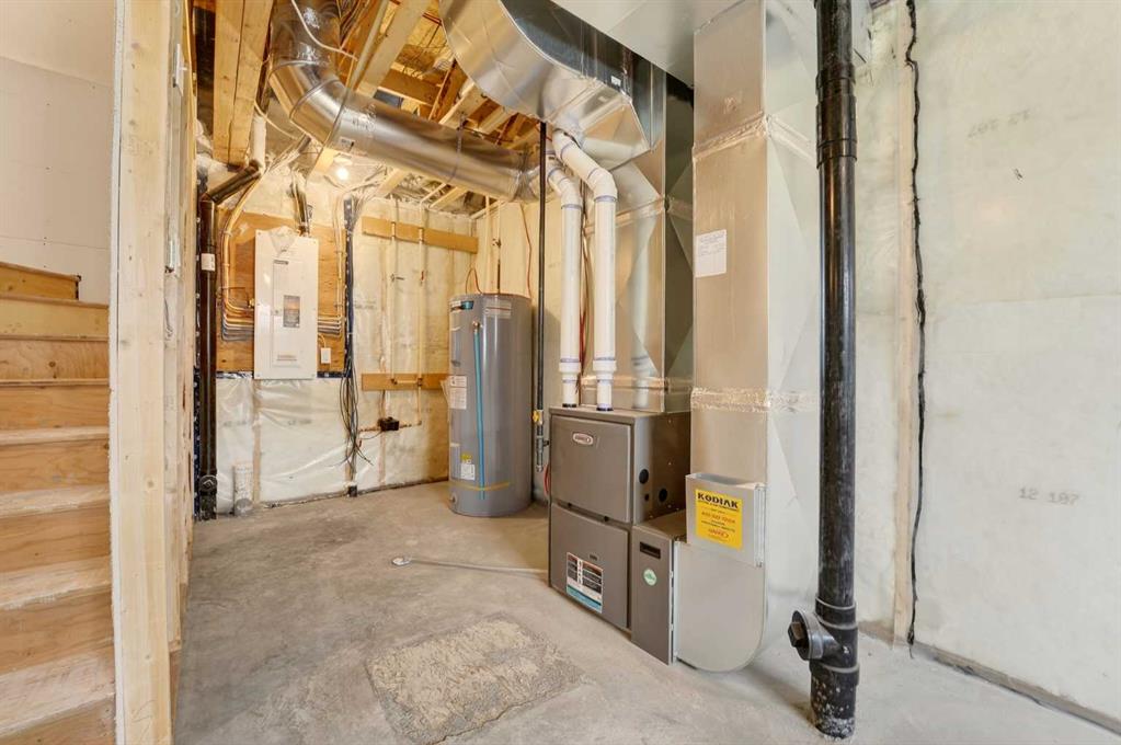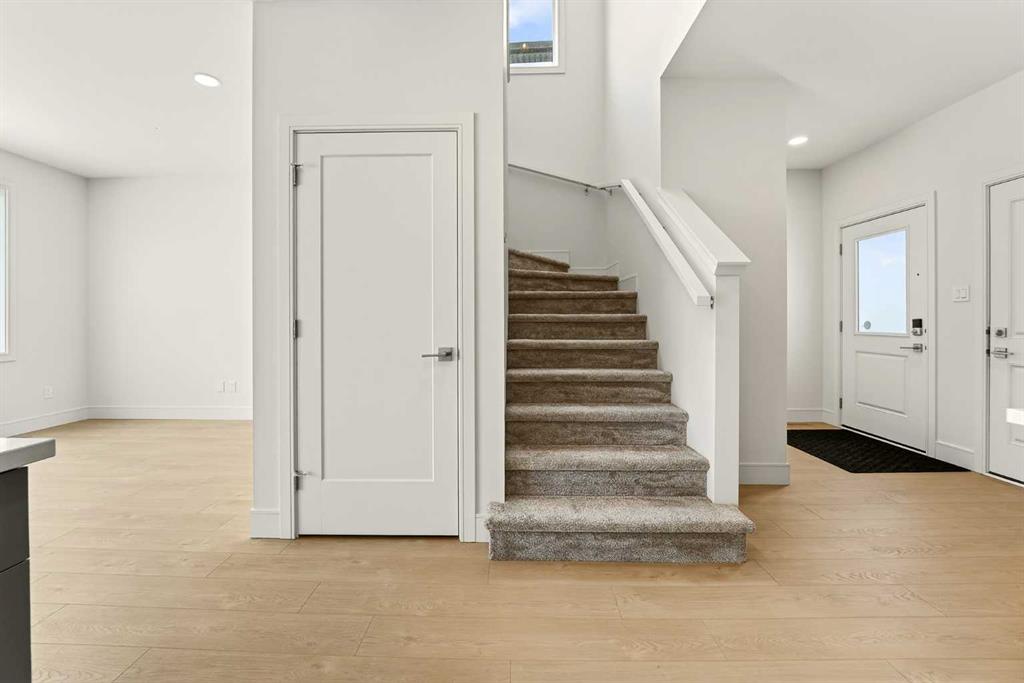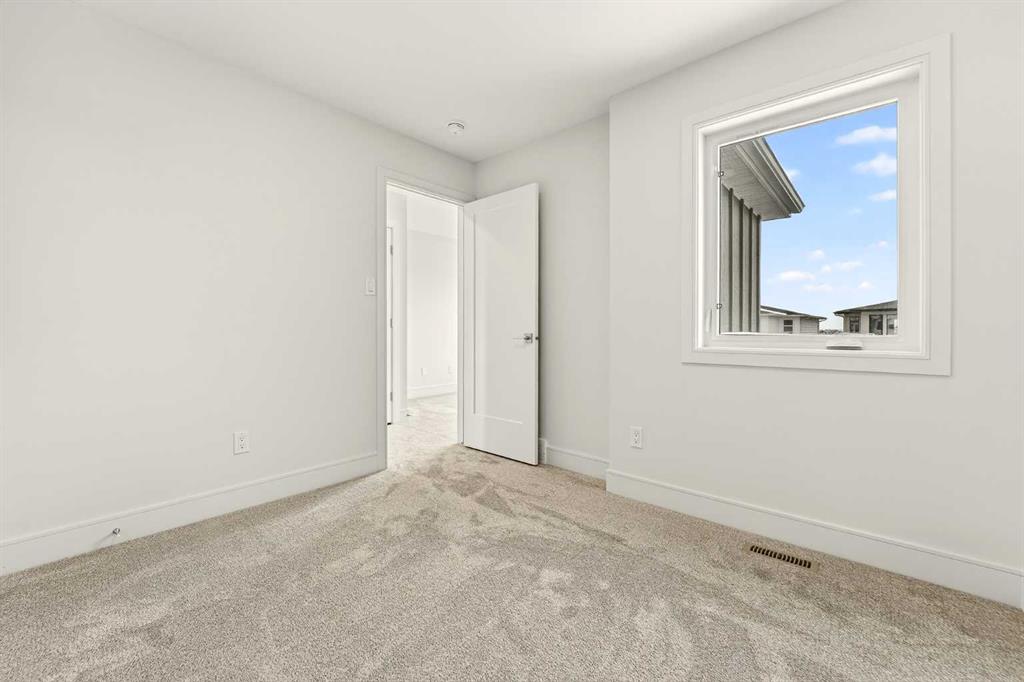 Located in the community of Southbrook, this brand new Lannark floor plan by Stranville Living backs directly onto Robert Plaxton Elementary School. A lot position like this is hard to come by, offering green space, open views, and the convenience of having a school just steps from your back door. The main level is anchored by a large U-shaped kitchen that provides plenty of counter space and bar seating, making it a natural gathering spot for the household. Quartz countertops pair with quality appliances including a panelled Fisher & Paykel fridge, built-in oven and microwave, an efficient induction cooktop, and a panelled dishwasher that blends into the cabinetry for a clean, cohesive look throughout. A generous walk-in pantry keeps the kitchen clutter free and adds the kind of everyday storage that makes a real difference. The dining area flows naturally from the kitchen and offers access to your future deck, connecting indoor and outdoor living with ease. The living room rounds out the main level with a large window that draws in natural light and creates a warm, inviting space to relax. The second level is thoughtfully laid out with everything the family needs in one place. The primary bedroom is spacious and private, featuring a walk-in closet and an ensuite with a tiled walk-in shower. Two additional bedrooms share a four-piece bathroom, and a conveniently located laundry room means you never have to haul baskets between floors. At the end of the hall, a generous bonus room offers flexible space perfect for movie nights, a playroom for the kids, or even a home yoga studio. With GST included in the purchase price and a 10-year new home warranty for added peace of mind, the Lannark in Southbrook delivers a well thought out layout, quality finishes throughout, and one of the most desirable lot positions in the community. Photos are virtually staged.