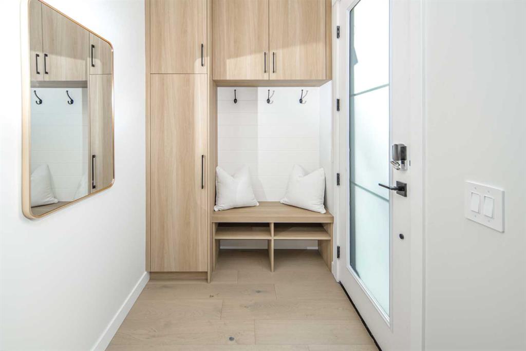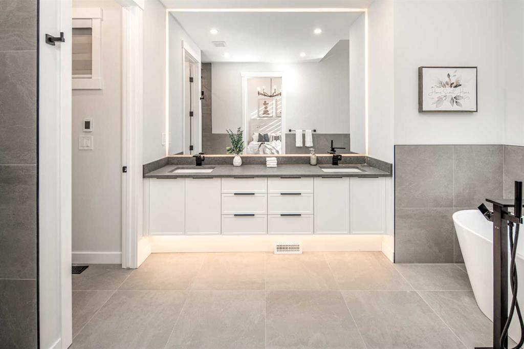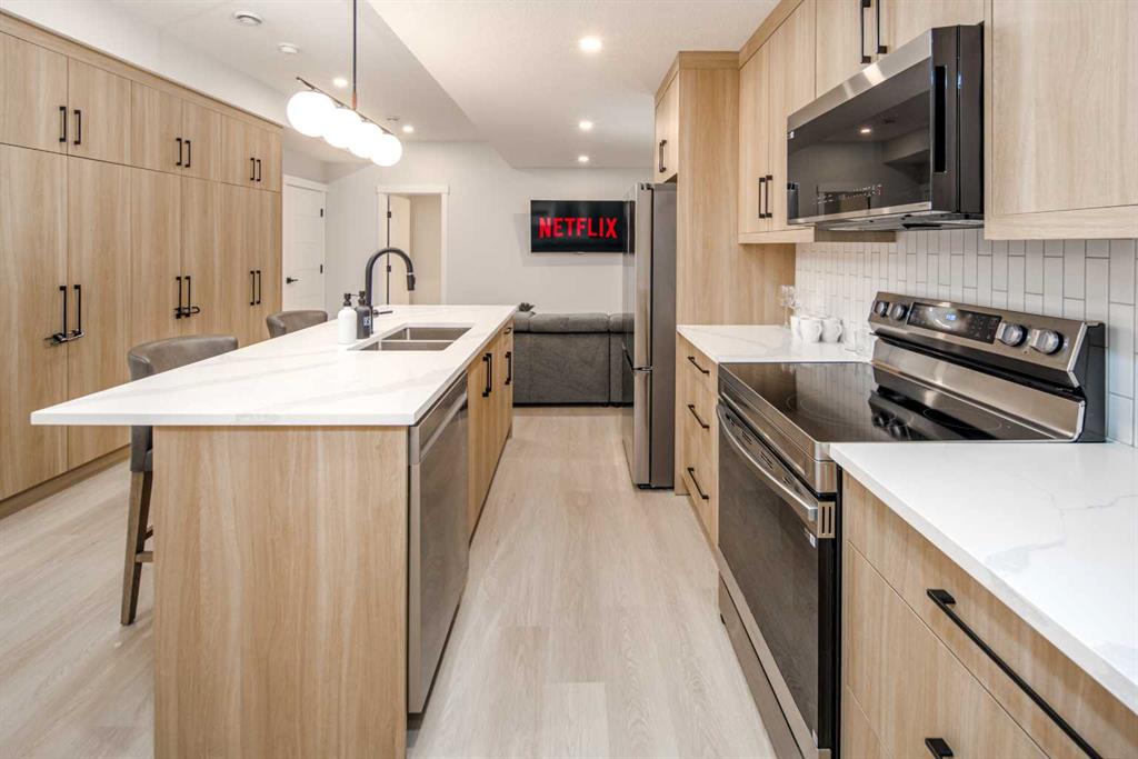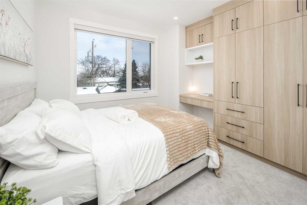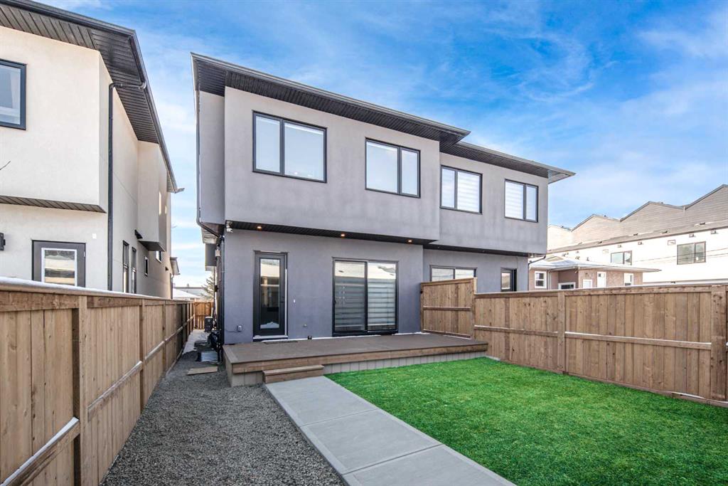 This luxury semi-detached infill combines refined design, thoughtful layout, and strong income potential with a fully legal 2-bedroom basement suite (city approved), making it well-suited for both end users and investors in today’s market. The main floor is designed to feel open and elevated, featuring 10-ft ceilings that enhance natural light flow and create a more spacious, airy environment compared to standard builds. A bright front dining area is framed by large windows, offering a welcoming space for both daily living and entertaining. At the center of the home, the chef-inspired kitchen showcases natural stone countertops, full-height custom cabinetry, a waterfall island with oak accents, LED feature lighting, and a premium appliance package—delivering both durability and a high-end finish. The adjacent living room is anchored by a floor-to-ceiling tiled gas fireplace with custom built-ins, creating a warm yet modern focal point. A dedicated main floor office provides flexibility for working from home, while the rear mudroom with built-in storage offers practical access to the backyard and garage. Upstairs continues with 9-ft ceilings, maintaining a consistent sense of space throughout. A versatile bonus room at the top of the stairs functions well as a secondary lounge, media area, or workspace. The primary suite is elevated by a vaulted ceiling, adding volume and a more luxurious feel to the retreat. The ensuite is thoughtfully designed with a double vanity, soaker tub, glass-enclosed shower, and in-floor heating, delivering everyday comfort during Calgary’s colder seasons. Two additional well-sized bedrooms, a full bathroom, and a conveniently located upper laundry room complete the level. The basement is built with 9-ft ceilings and features a fully finished legal 2-bedroom suite with a separate entrance. Designed to maximize livability, the suite includes a bright open living area, a modern kitchen, and a full bathroom, offering an excellent opportunity for rental income or multi-generational living without compromising comfort. Located in the established inner-city community of Renfrew, this home offers quick access to downtown (approximately 5 minutes) and is within close proximity to the amenities of Bridgeland, including popular cafes, restaurants, and local shops. With convenient connections to Edmonton Trail, 16 Avenue, and Deerfoot Trail, commuting and daily travel are efficient and accessible.