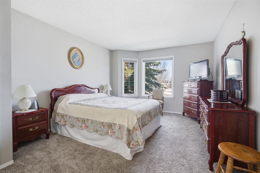 Welcome to this beautifully maintained 3 bedroom, 3 bathroom bungalow-style villa offering effortless living in the highly sought-after community of Valley Ridge. With 1,276 sq. ft. above grade, a walkout basement, and double attached garage, this home perfectly blends comfort, convenience, and low-maintenance living. Step inside to discover a bright and inviting main floor featuring newer flooring and a thoughtful, open-concept layout. The living room is warm and welcoming, highlighted by a stunning stone-front gas fireplace and a large bay window that fills the space with natural light. The dining area seamlessly extends to the spacious upper deck, complete with a gas hookup, sleek metal railing and new vinyl decking; the perfect space for outdoor entertaining or relaxing evenings. The kitchen is both functional and cheerful, featuring a large skylight that floods the space with natural light, along with updated stainless steel appliances and ample cabinetry. Stylish up/down blinds throughout the home provide both privacy and versatility. The spacious primary retreat features a three-piece ensuite and double closets with custom organizers. The second bedroom could also be used as a den/office space and a full bathroom complete this level. The walkout basement expands your living space with a generous recreation area, third bedroom, four-piece bathroom, and massive storage area. Additional highlights include a newer furnace, central air conditioning and water softening and filtration system, ensuring year-round comfort and peace of mind. Enjoy the ease of condo living with fees that include snow removal and access to the clubhouse just across the street—making this an ideal home for those who love to travel or want a true lock-and-leave lifestyle. Nestled in the desirable community of Valley Ridge, this home offers quick access to downtown, the ring road system, and endless mountain getaways, along with nearby parks, pathways, and golf. This is a rare opportunity to own a turnkey villa in a prime location—don’t miss your chance to call it home!