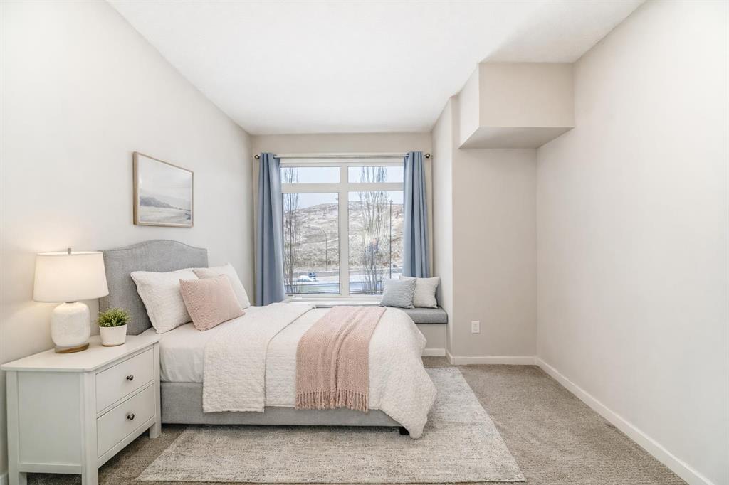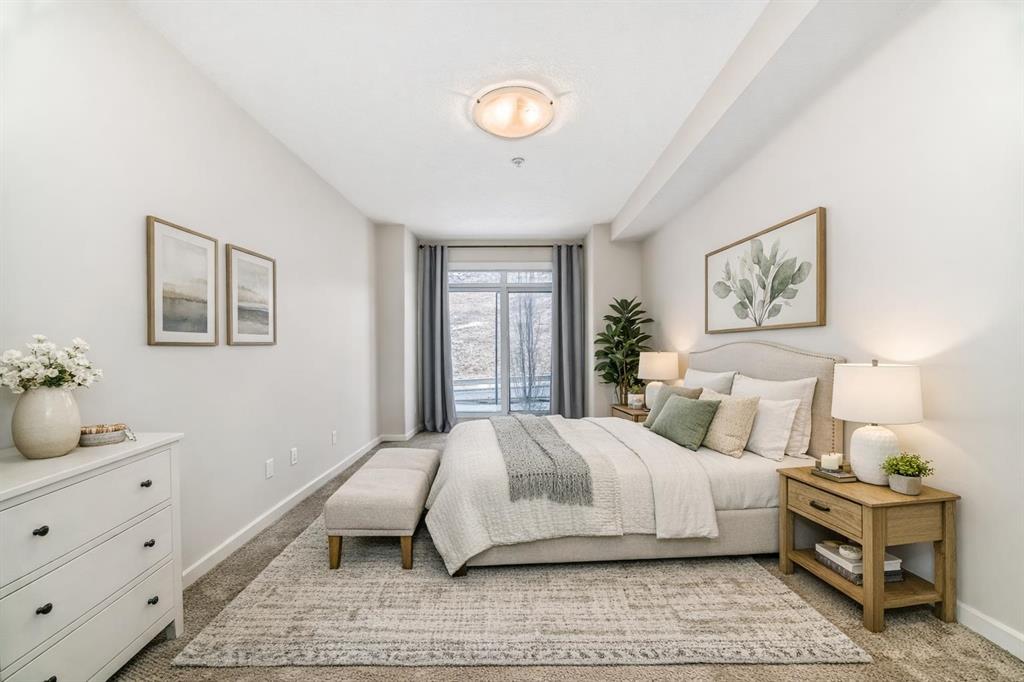 Looking for a MODERN, MOVE-IN READY CONDO FOR SALE IN COCHRANE? This FRESHLY PAINTED SPACIOUS 2-BEDROOM, 2-BATHROOM HOME offers a bright, open-concept living area with LARGE WINDOWS and a layout designed for both comfort and style, located in the desirable East End community. Enjoy a modern kitchen featuring NEWER STAINLESS STEEL APPLIANCES, granite countertops, a sit-up breakfast bar, and maple cabinetry providing ample storage. The generous living room includes a GAS FIREPLACE for chilly evenings and opens onto a private patio—perfect for BBQs, relaxing, or entertaining friends and family. The primary bedroom boasts a walk-through closet and a luxurious 5-piece ensuite. A second bedroom and 4-piece bathroom add flexibility for guests, family, or a home office. Additional highlights include IN-SUITE LAUNDRY with LOTS OF STORAGE, titled UNDERGROUND HEATED PARKING, and condo fees that cover heat, gas, water, building maintenance, snow removal and much more! Centrally located in beautiful Cochrane, this condo is close to shopping, restaurants, and parks, with easy access to Highway 1A and just a short drive to Calgary and the mountains. Offering both convenience and tranquillity, this home is ideal for first-time buyers, downsizers, or investors looking for Cochrane real estate opportunities. Don’t miss out—contact your favourite REALTOR® to book a private viewing today!