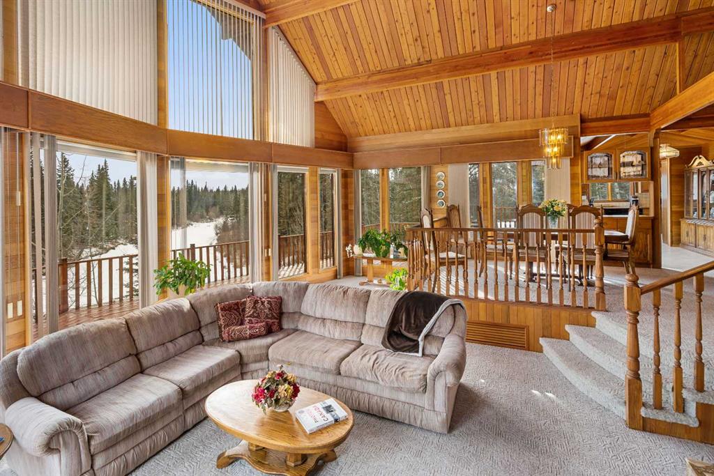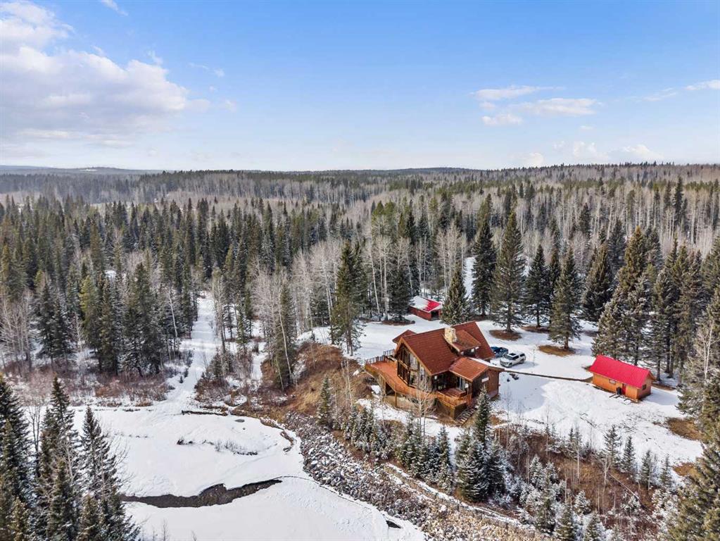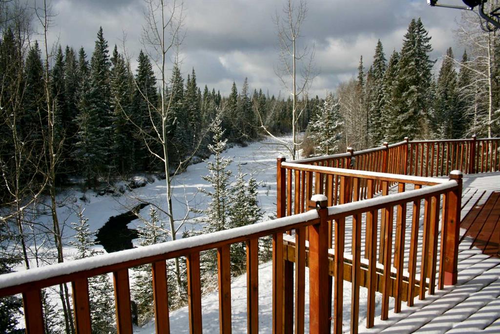 A rare opportunity to own 80 extraordinary acres with direct river access (Fallen Timber Creek) and breathtaking valley views northwest of Calgary. Set in an unforgettable natural setting, this remarkable property offers over 4,000 sq. ft. of developed living space across three levels, Including a spacious walkout family room. A large balcony overlooking the river and a seamless connection to the landscape from every angle. Designed for both comfort and function, the property includes a double detached garage, an additional single garage, and an impressive 48' x 32' workshop, with a yard space that allows ample room to pull in a trailer and turn around with ease. Private hiking and quad trails weave through the land, while Crown land only a few quarters to the west adds even more freedom and recreational access. Scenic, private, and exceptionally well equipped, this is a river property of rare quality and lasting appeal.