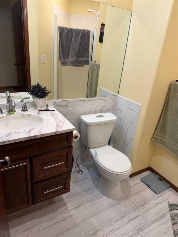 Welcome to this charming and well-maintained 3-bedroom, 2-bathroom half duplex offering excellent curb appeal and a warm, inviting feel. The covered front porch with stone accents creates the perfect first impression and a cozy spot to relax. Step inside to a bright and functional layout featuring vaulted ceilings on the main floor, enhancing the sense of space and natural light throughout. The home offers three well-sized bedrooms, along with the convenience of upstairs laundry—perfect for busy family living. The fully developed basement boasts impressive 9’ ceilings, providing a more open and comfortable lower-level living space. Outside, enjoy a large back deck overlooking a spacious pie-shaped lot, offering plenty of room for outdoor entertaining, kids, or pets. Additional highlights include a private fenced yard and ample parking with a generous driveway. Situated in a quiet, family-friendly neighbourhood close to parks, schools, and everyday amenities, this home is an excellent opportunity for first-time buyers, families, or investors alike.