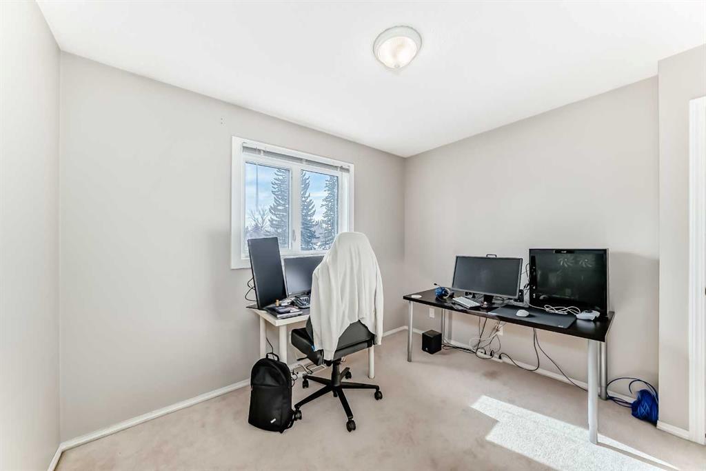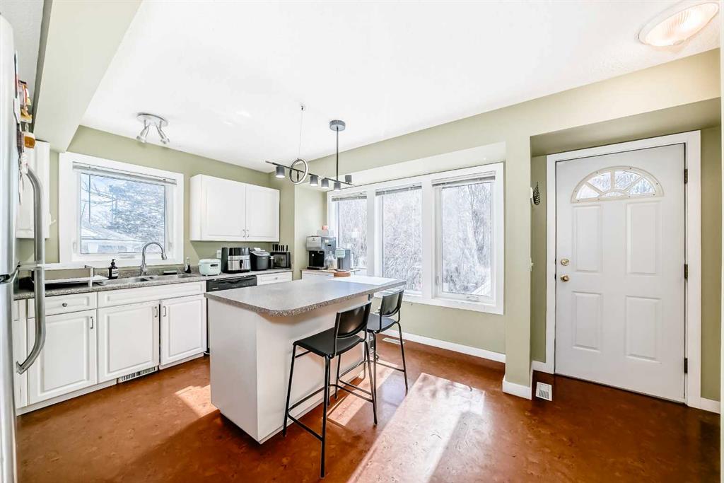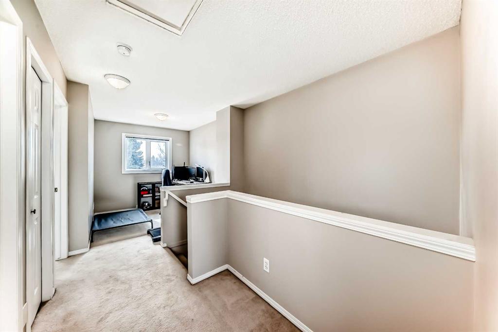 This exceptional 2-bedroom, 2-bathroom end-unit townhome offers enhanced privacy and abundant natural light, tucked away in a quiet, secluded setting. Step inside to a spacious foyer with ample storage for everyday essentials. The main level features a bright, well-designed kitchen complete with a large island and generous counter space—perfect for meal preparation and gathering. The inviting living room is anchored by a cozy corner gas fireplace, while direct access to the balcony extends your living space outdoors. This level is completed by a convenient 2-piece bath and in-suite laundry. Upstairs, the primary bedroom offers a walk-in closet and direct access to a well-appointed main bathroom featuring a corner soaker tub and separate shower. A second bedroom and versatile loft provide flexible space for a home office, guest area, or additional lounge. Recently upgraded with new vinyl windows, this home offers added comfort and low-maintenance living. The single attached garage provides everyday convenience and dependable protection from Calgary’s winter conditions. Ideally located with easy access to Richmond Road and Crowchild Trail, as well as 17 Ave, Marda Loop, shopping, and parks. This is a rare opportunity to own a well-maintained end-unit townhome with an attached garage in a prime location—all for under $400,000.