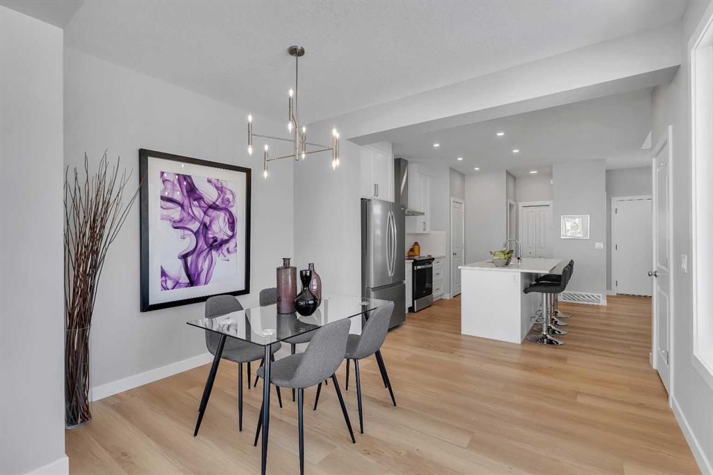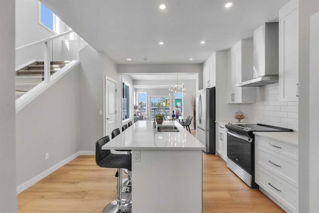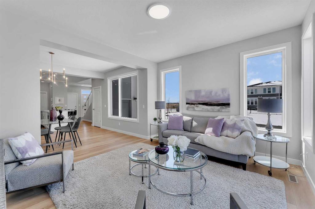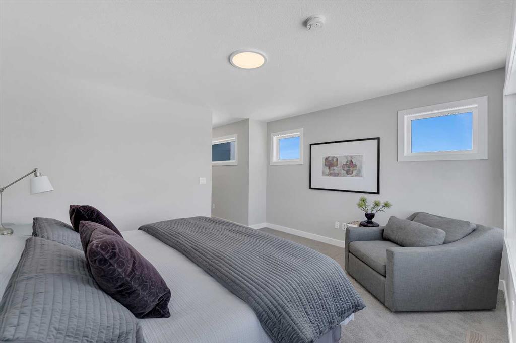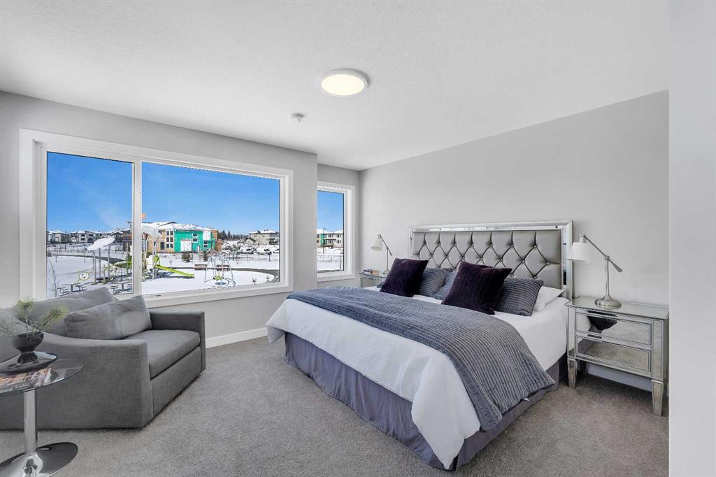 Set on a desirable lot backing onto a walking path and playpark, this award-winning Alliston Homes new build offers mountain views, southwest exposure, and over 1,700 sq ft of beautifully designed space. Large windows (triple pane) throughout the main floor let sunlight pour in all day, creating a bright, inviting space that truly sets this home apart. Step inside to an open-concept main floor highlighted by modern finishes and sleek glass railings. The kitchen is both functional and stylish, featuring stainless steel appliances, ample cabinetry, and a spacious island perfect for entertaining. The layout flows seamlessly into the dining and living areas, where views of the greenspace can be enjoyed from every angle. Step outside to your sunny backyard and enjoy direct sightlines to the playpark, ideal for keeping an eye on the kids. Upstairs, a central loft provides flexible space for a home office or reading nook. The primary suite is expansive, complete with a walk-in closet and a spa-inspired ensuite featuring dual sinks and an oversized shower. Two additional bedrooms, a full bathroom, and convenient upper-level laundry complete the upper floor. The basement offers a separate entry and is ready for future development to suit your needs. Located in South Shore, surrounded by estate homes, walking paths, and playgrounds, and just steps from Chestermere Lake, this community is designed for those who value both lifestyle and location.
