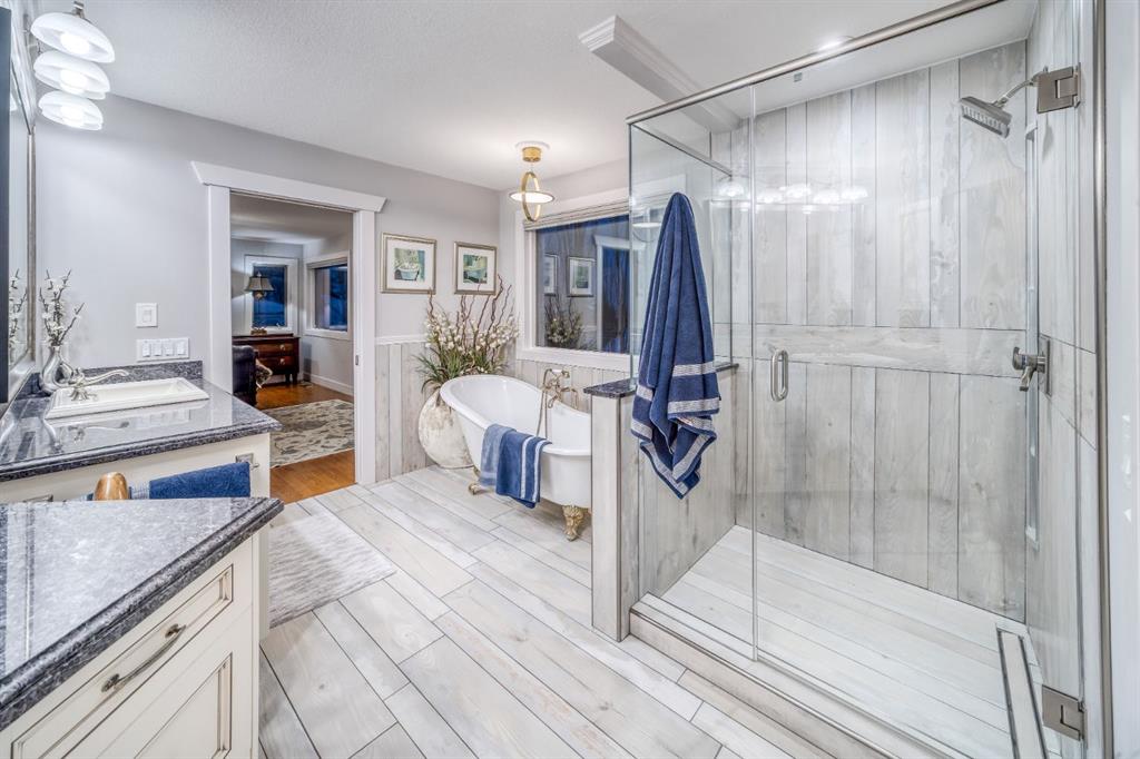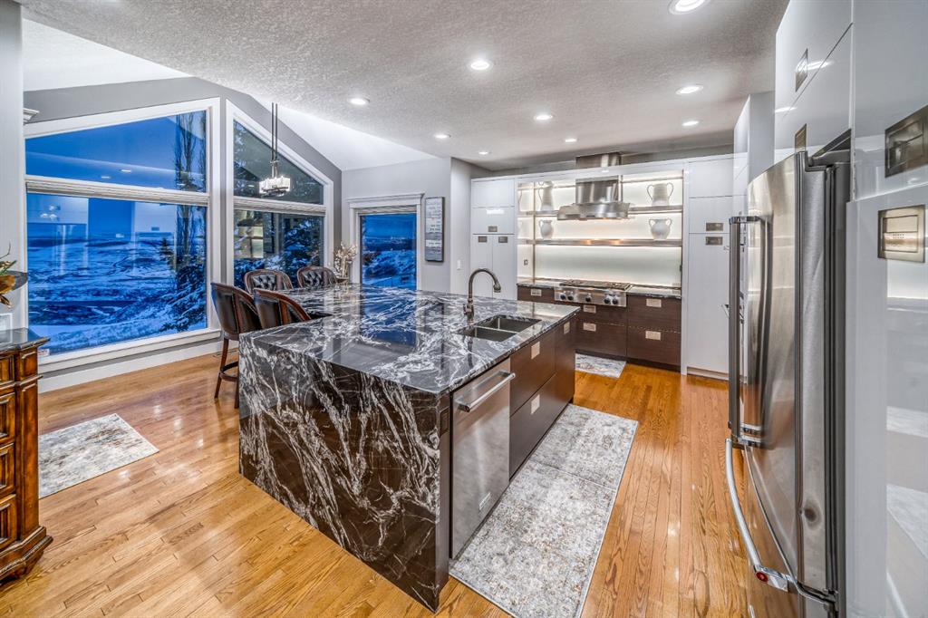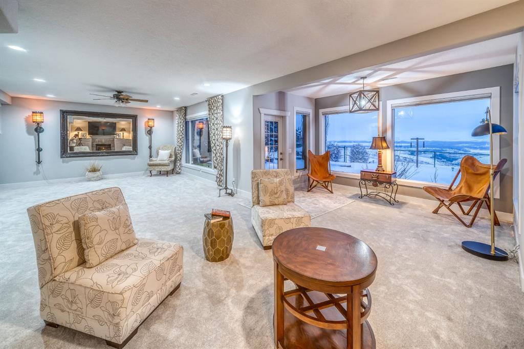 **OPEN HOUSE SAT APRIL 25 1-4PM**An extraordinary opportunity to own a meticulously maintained residence, ideally positioned along the coveted outer ridge of Gleneagles View. This exceptional two-storey home captures breathtaking, unobstructed views of the Rocky Mountains, Glenbow Provincial Park, the Bow River valley, and the renowned Links of Gleneagles Golf Course—a truly rare and privileged setting. Offering over 4,300 sq. ft. of thoughtfully designed living space, the home features six bedrooms and three and a half bathrooms, including four bedrooms on the upper level—an uncommon and highly sought-after layout for families. Extensive upgrades enhance both form and function, including updated lighting throughout, a renovated primary ensuite, a fully renovated main bathroom, refreshed main-floor powder room, and a renovated lower-level bathroom, along with new baseboards and window casings, upgraded closet doors and shelving, fresh paint throughout, central air conditioning, new carpet in the lower level, a water softener, and two new hot water tanks. The home is also equipped with two furnaces for added comfort and efficiency. From the moment you arrive, the home reveals a timeless design and welcoming presence. The expansive open-concept main floor offers effortless flow between living spaces, perfectly suited for both everyday comfort and elevated entertaining. The beautifully renovated kitchen anchors the home, thoughtfully positioned to keep the host connected as guests gather in the living room around the fireplace, framed by sweeping views beyond. Entertaining continues seamlessly into the formal dining room, designed to accommodate both intimate dinners and larger celebrations with ease. Completing the main level are a private office or den, a spacious laundry and mudroom with sink, and a formal living room—ideal for hosting and conversation. A stunning curved staircase connects all levels, adding architectural elegance while guiding you to the upper floor where the luxurious primary retreat awaits, complete with a spa-inspired ensuite with claw foot tub, walk in shower, and captivating views. Three additional generously sized bedrooms all with walk in closets, complete this level. The fully developed walkout lower level offers two additional bedrooms, a fully renovated bathroom, and an expansive recreation space with games and sitting areas—perfect for guests, teens, or multi-generational living. Outdoor living is equally impressive, with southwest exposure showcasing uninterrupted views of the surrounding landscape. Enjoy long summer evenings taking in the mountains and valley, whether relaxing on the upper balcony or gathered around the gas fire pit below. Ideally located just minutes from Cochrane’s amenities and approximately 15 minutes to Calgary, this home offers the perfect balance of luxury, privacy, and accessibility, with immediate access to scenic pathways and one of the region’s premier golf courses.