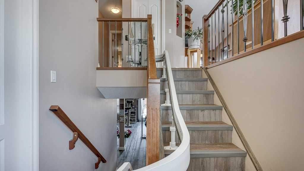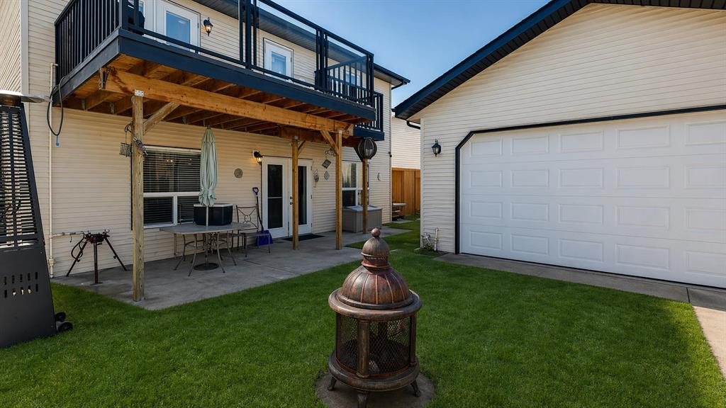 Located on a quiet crescent in sought-after SE Red Deer, this fully developed walkout bi-level with two garages delivers space, style, and serious functionality. Step inside to a bright, south-facing living room featuring vaulted ceilings and durable vinyl plank flooring. The updated kitchen makes a statement with two-tone maple cabinetry, quartz countertops, tiled flooring, a black granite sink with garburator, pantry, and stainless steel appliances. The dining area opens to a sunny upper deck finished with newer Duradek and convenient gas lines for BBQing on both levels. The main floor offers two bedrooms, a 4-piece bath, and a spacious primary retreat complete with double closets, a 4-piece ensuite, and direct access to the upper deck. The walkout basement is designed for relaxing and entertaining, featuring a large family/TV area, space for games, an additional bedroom, 4-piece bath, and a generous storage/utility room. Car enthusiasts and hobbyists will love the attached garage PLUS a heated detached garage equipped with 220V and even its own TV setup. Outside, enjoy a low-maintenance, fully fenced yard with poured concrete, storage shed, and minimal grass to keep upkeep easy. Comfort upgrades include in-floor heat and a new air conditioner (2025). Recent improvements also include furnace (2025), hot water tank (2023), Duradek (2023), quartz countertops & kitchen tile (2023), basement flooring (2023), and exterior seasonal strip lighting. Well-maintained, move-in ready, and located in a fantastic neighbourhood—this one checks all the boxes.