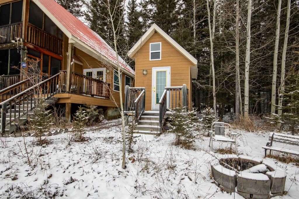 Escape to Bergen Springs… where nature, privacy & mountain views come together. Just 10 minutes from Sundre, under an hour to Calgary & 1 hour to Red Deer, this adorable retreat offers the perfect balance of convenience & peaceful country living. Tucked among mature trees with incredible west facing mountain views, this is nature at its finest. Built solid in 1999 with durable Hardie board siding & a metal roof, this charming 742 sq ft home is ideal as a fulltime residence or weekend getaway. Inside, you’ll find a cozy & functional layout with 2 bedrooms, a welcoming living space warmed by a gas fireplace, and a blend of pine flooring & carpet that adds to the rustic charm. Step outside & truly appreciate the setting with multiple decks offering sun & shade throughout the day, including an east-facing front deck for morning coffee, a west rear deck to soak in the mountain views, & a second level west deck off the primary bedroom. Adding to the functionality of the property is a versatile outdoor building complete with heat & power, ideal for a craft studio, hobby space, or workshop, providing year round use & flexibility for your creative interests. With its own private well, natural gas service, forced air furnace & 1500-gallon septic system, this property offers comfortable, all season/year-round living in a truly special location. Whether you’re looking to unwind, explore, or simply take in the view, this Bergen Springs gem delivers.