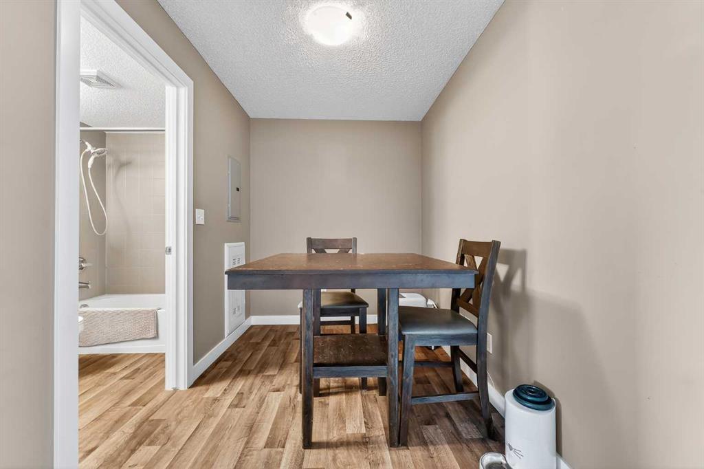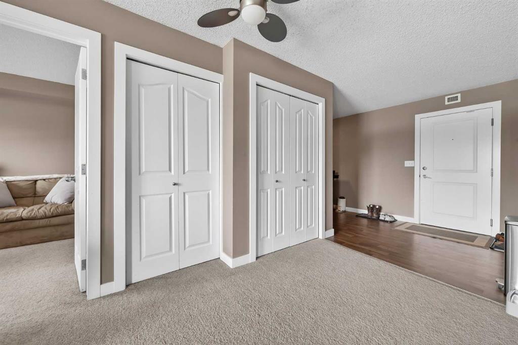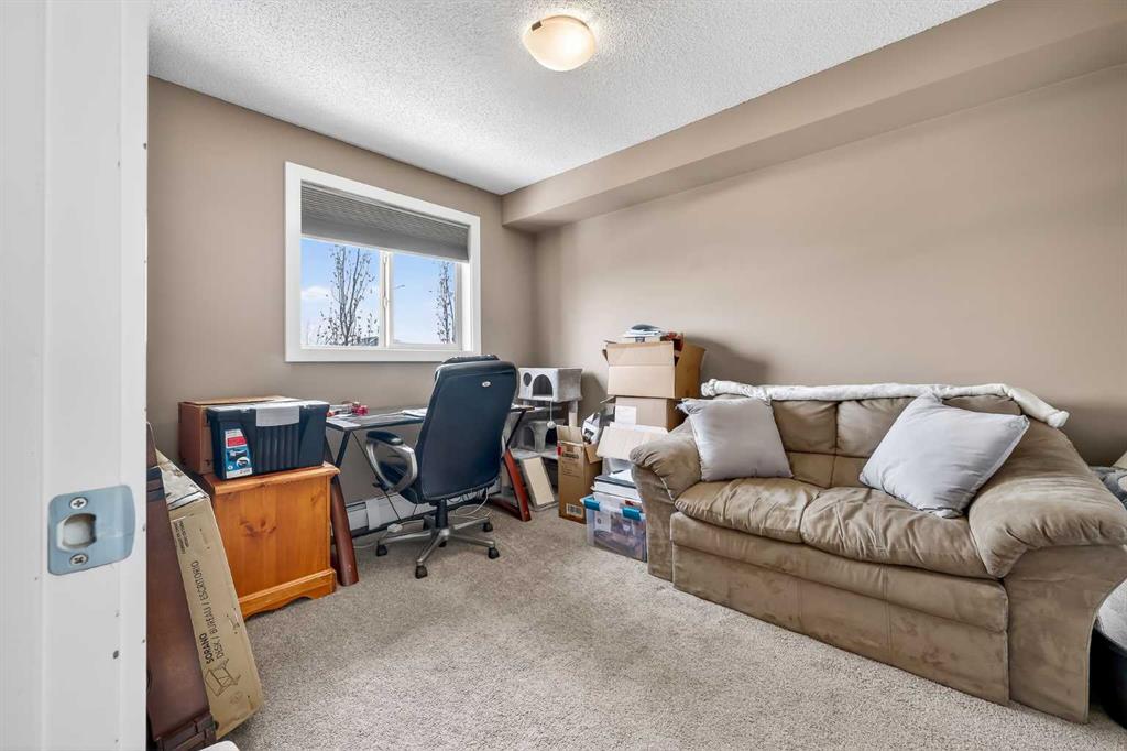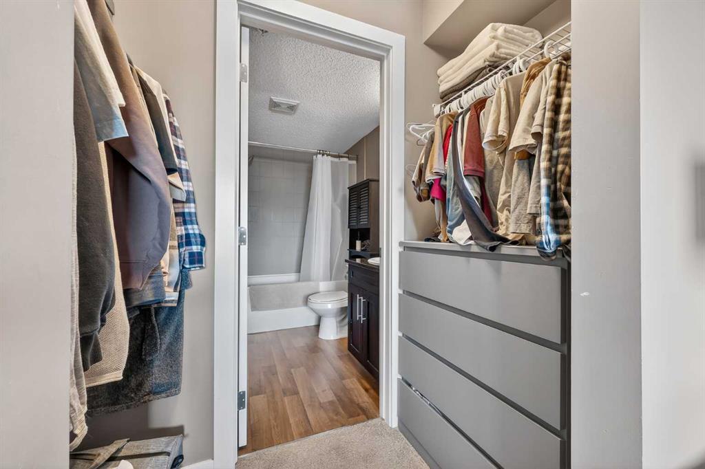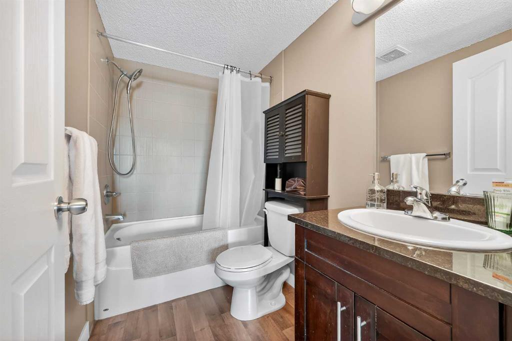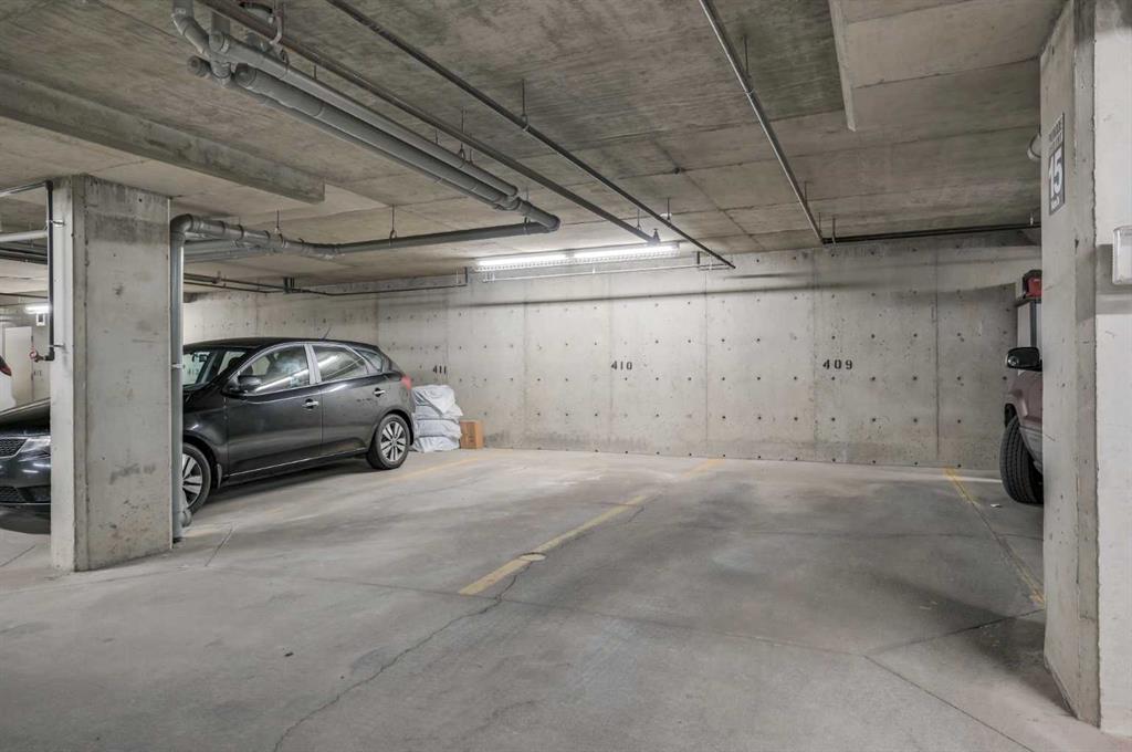 Welcome to your new home at Creekside Village in the heart of downtown—a spacious west-facing 2-bedroom, 2-bathroom condo with a versatile den designed for modern living. Perfect for couples, small families, or professionals, the den can easily be used as a home office, dining nook, or guest space, adapting to your lifestyle. Step inside to a bright open-concept layout with a wide entrance and a generous living/dining area—ideal for entertaining or relaxing. The upgraded kitchen features granite/quartz countertops, stainless steel appliances, ample cupboard space, and a breakfast bar. A separate in-suite laundry room provides added convenience, while the primary bedroom offers a private 4 piece en-suite with granite vanity and soaker tub. The second full bathroom includes a soaker tub and matching granite vanity, and both bedrooms feature large windows and ample closet space for natural light and functionality. Enjoy your morning coffee or evening wind-down on the covered patio and take advantage of 2 titled underground parking stalls for year-round security and ease. Located in a vibrant community in Downtown Airdrie, this condo places everything at your fingertips: Midtown Shopping Square, grocery stores (Sobeys), restaurants, coffee shops, salons, medical clinics, pharmacies, day care, yoga/fitness centers, playgrounds, schools, and parks—all just a short walk away.