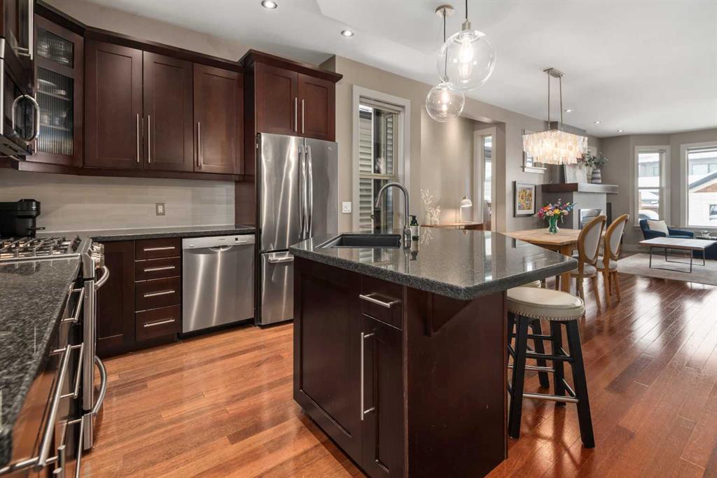 Nestled in the heart of sought-after Altadore, this beautifully finished 4-bedroom, detached two-storey home with double detached garage, offers the perfect blend of timeless style, thoughtful upgrades, and exceptional outdoor living. Inside, you’ll find 9-foot ceilings, rich merbeau hardwood floors, granite countertops, a large central island, stainless steel appliances, and a warm gas fireplace that anchors the inviting main living space. Upstairs you'll find 3 bedrooms, including a gorgeous primary retreat featuring vaulted ceilings, a walk-in closet, and a luxurious ensuite complete with granite countertops, a skylight, a soaker tub, and a separate glass shower. The fully finished basement expands the living space with a comfortable media room, fourth bedroom, 3-piece bathroom, generous laundry room, ample storage, and a true hidden gem — a cold room/wine cellar. Outside, enjoy the sunny west-facing backyard with an impressive 400 sq. ft. composite TREX deck, modern cedar privacy screen, and a natural gas firepit — perfect for entertaining or relaxing at the end of the day. Recent upgrades include air conditioning (2020), roof (2020), fridge (2020), sump pump (2020), hot water tank (2019), water softener (2024), and exterior lighting (2025). Located in one of Calgary’s most desirable inner-city communities, Altadore is loved for its tree-lined streets, strong sense of community, and unbeatable access to amenities. Enjoy being just minutes from Marda Loop’s vibrant shops, restaurants, and cafes, excellent schools, parks, River Park, Sandy Beach, and scenic pathway systems, all while having quick access to downtown.