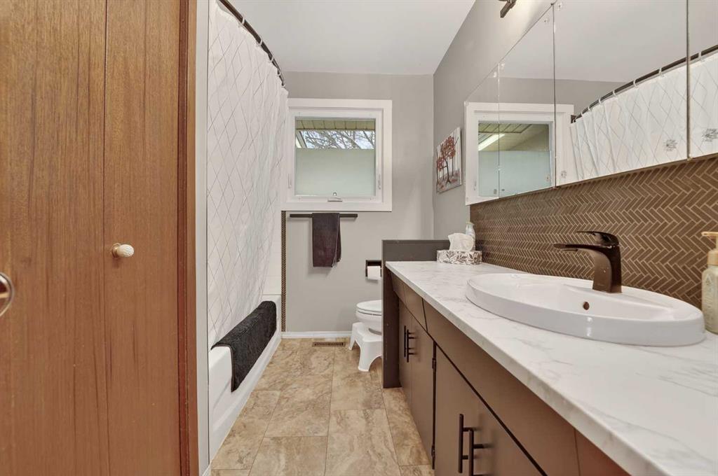 This well-maintained bi-level offers the perfect blend of comfort, flexibility, and long-term value, it is ideal for first-time buyers looking to get into the market or investors seeking strong rental potential. The bright, open concept main floor is designed for everyday living and easy entertaining, featuring a spacious living room and a functional kitchen with ample counter space for multiple cooks. A cozy coffee nook transitions into a sun-filled dining area with a charming bay window overlooking the mature, private backyard. Step outside to a covered patio which is perfect for relaxing or hosting summer BBQs. Upstairs includes two generous size bedrooms and a beautifully updated full bathroom. Downstairs, the fully finished lower level adds even more versatility with a warm family room, and 2 additional bedrooms, matching updated bathroom, generous storage, and a separate rear entrance through the laundry area, creating excellent potential for a future suite setup. The exterior is equally impressive, offering front double parking plus rear alley access to an oversized single garage with workshop or storage space, potential RV parking, and a low-maintenance yard with garden areas and a poured patio. Recent updates include newer windows & patio doors, new dishwasher & HWT, plus the garage roof was recently done & new carpet in the basement when the 4th bedroom was added. Located close to schools, parks, and shopping in a welcoming neighborhood, this is a smart move whether you're buying your first home or expanding your investment portfolio.