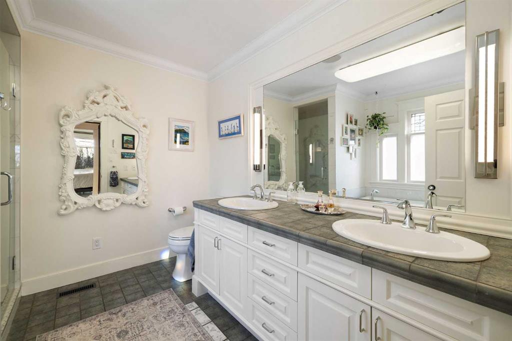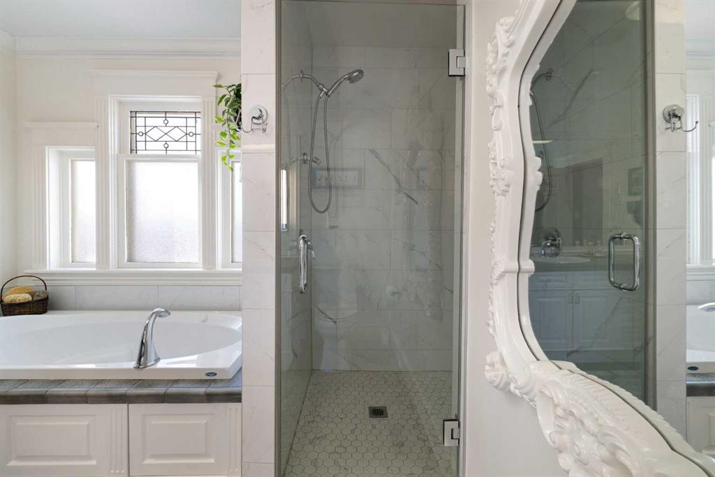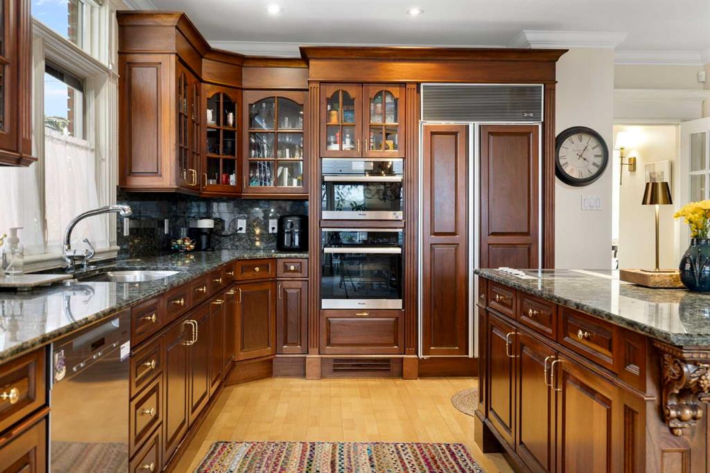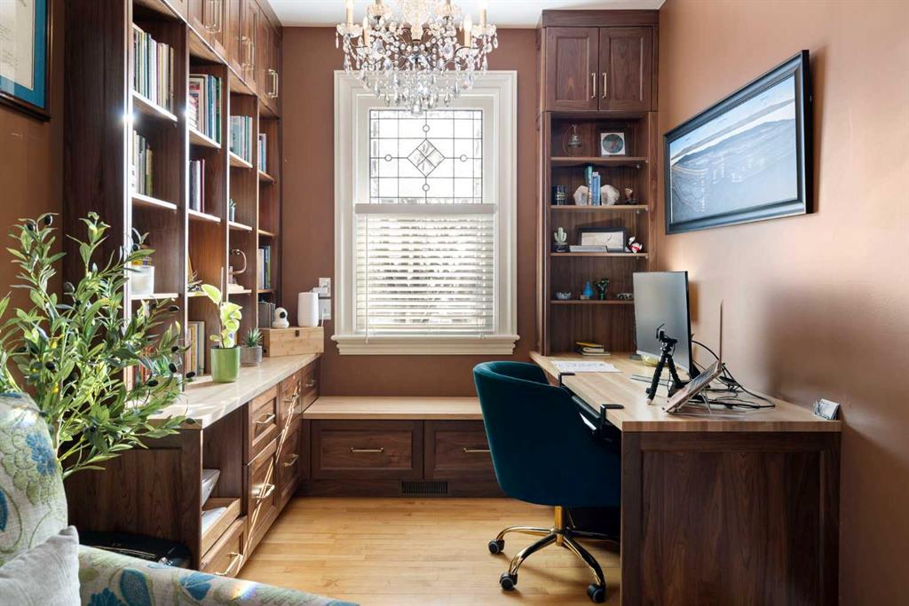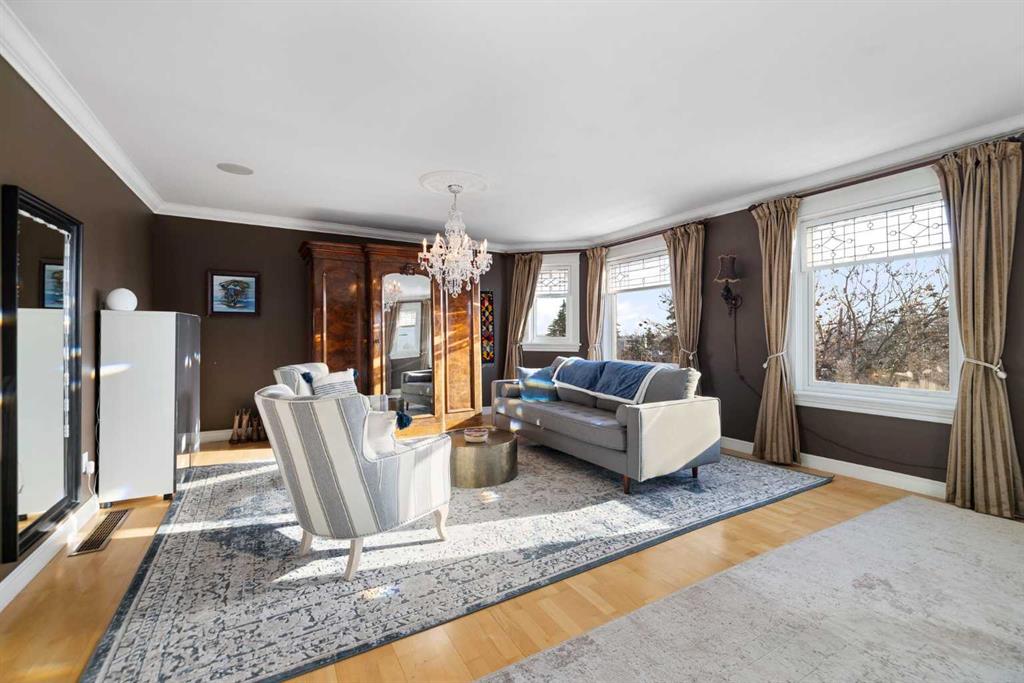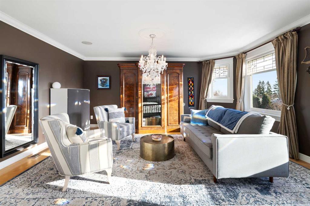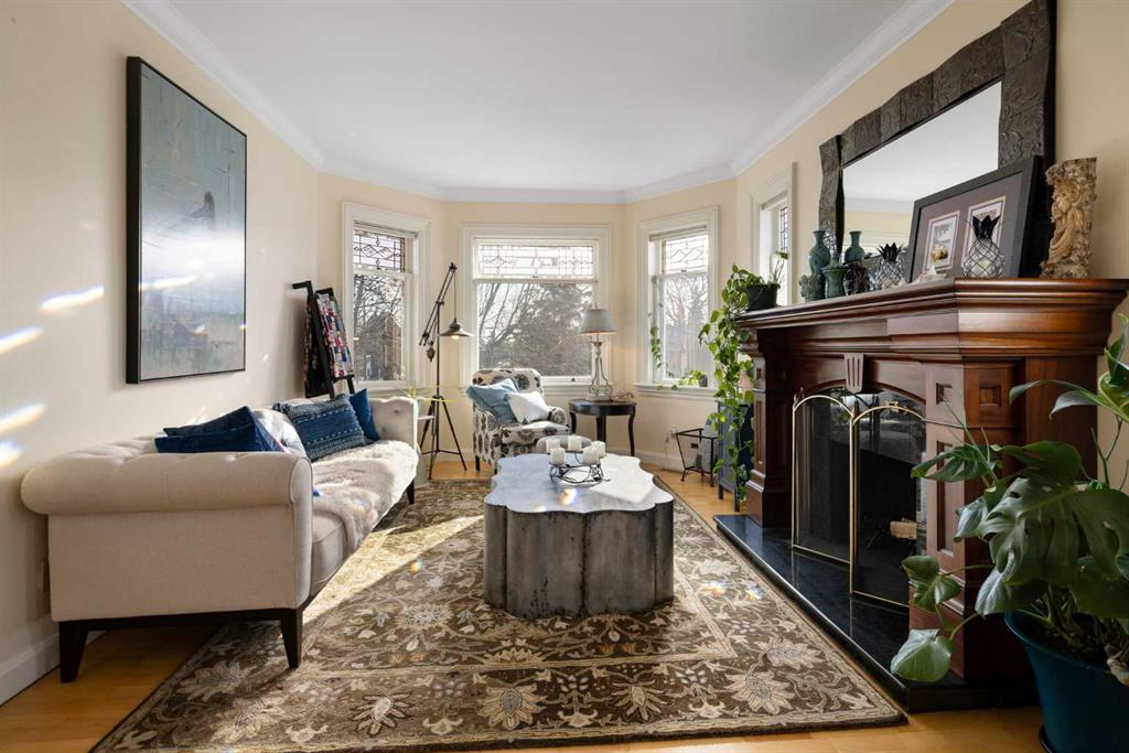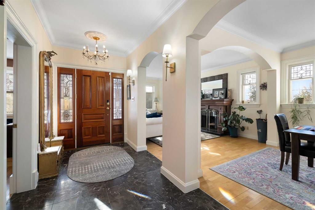Stepping into this well-maintained 1912 estate in Shaganappi feels like entering a livable piece of art. High ceilings & marble floors set the stage for an interior where historic soul meets modern precision. With over 3,800 sq.ft of curated living space, the layout was designed to host grand events. As you step in, you're welcomed by dual living spaces and two dining features framed by custom mahogany millwork, an executive office with built-ins, and the warmth of a classic wood-burning fireplace. The daily rhythm revolves around light and luxury. The kitchen is anchored by rich mahogany cabinetry, newer Miele appliances, and vast counters scaled for entertaining. Mornings begin in the primary suite, bathed in east-facing sunlight with direct views of the Calgary skyline before stepping into a custom-built ensuite. While heritage homes often lack modern utility, investments in this home ensure comfortable living with dual laundry setups on both the main and upper floors, alongside newly upgraded bathrooms. The lower level maximizes versatility with a separate entrance, a full bathroom, and a dedicated flex space. A third fireplace warms the mahogany-trimmed rec room, but the true highlight is the custom movable bookcase, which seamlessly swings open to reveal hidden storage and a utility room. Outside, the west-facing yard is a private summer oasis featuring a four-zone irrigation system, a stone patio, and a built-in water feature. Inner-city living usually means fighting for parking, but this property redefines urban convenience with a large garage, a parking pad and a long interlocking brick driveway in front, located less than 10 minutes from downtown. You're encouraged to join the Shaganappi community association for access to the private tennis courts, outdoor rink and community events. Make sure to enjoy the surrounding area by visiting either of the two off-leash parks, exploring the Bow River, and discovering all the conveniences along 17th Ave. To finish it off, take a short 10-minute walk to the C-Train Station where you're only two stops away from Downtown Calgary.