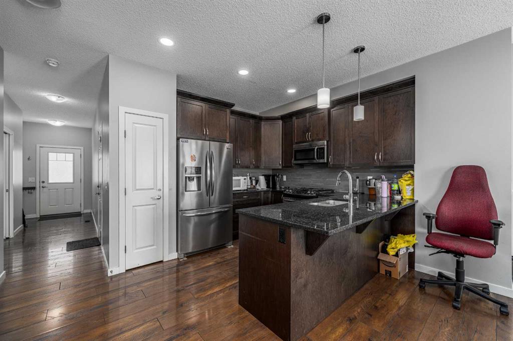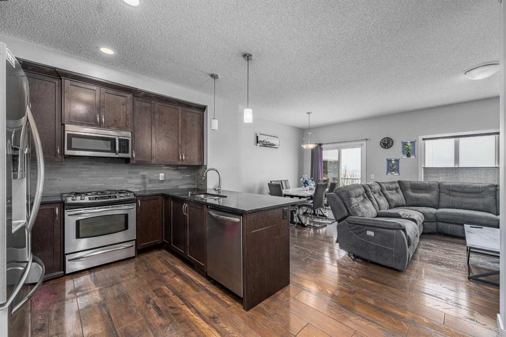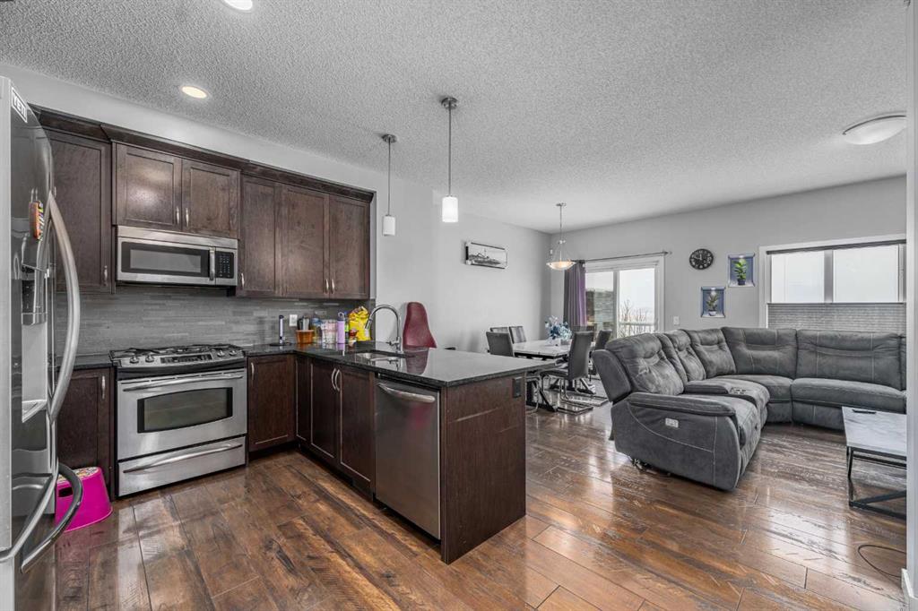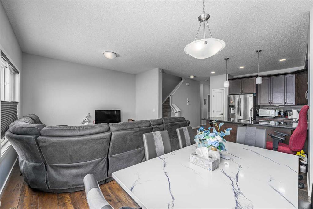 Welcome to the highly sought-after community of Hillcrest! This well-appointed home is ideally located within walking distance to Northcott Prairie School (Grades K–9), making it a perfect fit for growing families. Featuring a bright and open floor plan, the main level showcases beautiful hardwood and tile flooring along with a functional layout designed for everyday living and entertaining. The kitchen is a standout, complete with quartz countertops and soft-close cabinetry, offering both style and practicality. Upstairs you will find three spacious bedrooms, while the partially developed basement offers two additional bedrooms, providing flexibility for guests, a home office, or extended family. Step outside to enjoy the sunny south-facing, private fenced backyard, backing onto peaceful, undeveloped farmer’s fields. On clear days, take in stunning views of the Calgary skyline from your large raised deck, the perfect place to relax or host summer gatherings. Additional highlights include a single attached garage and a quiet location with local traffic only. This is a fantastic opportunity to own in one of Airdrie’s most popular neighborhoods.