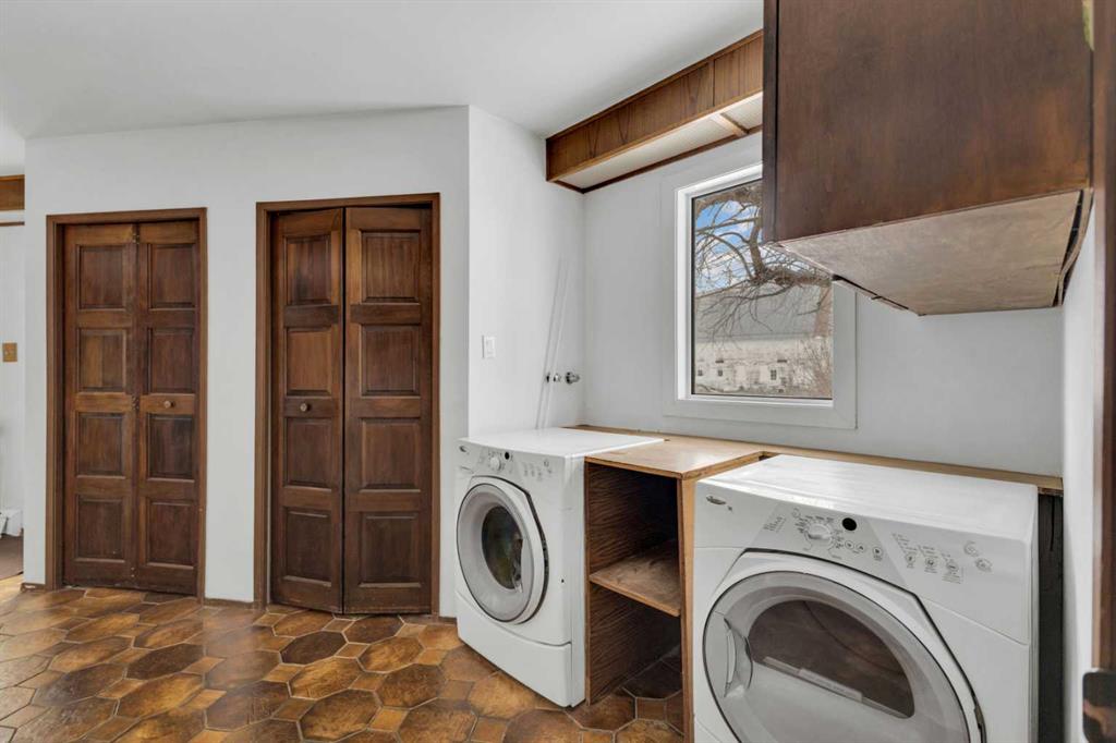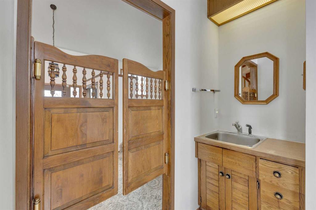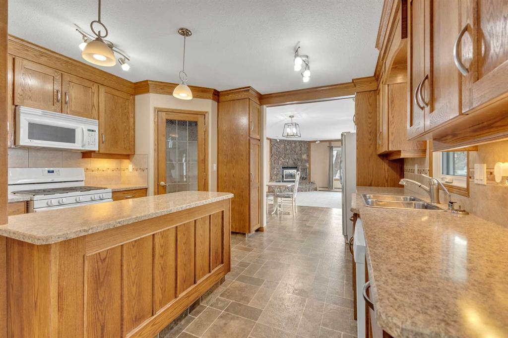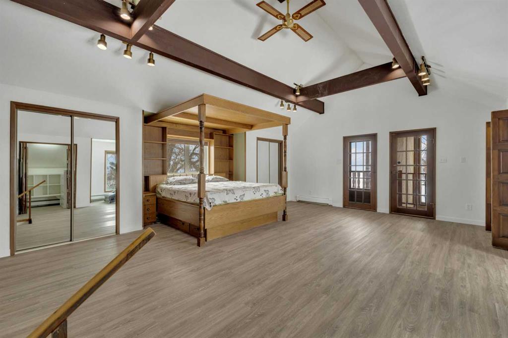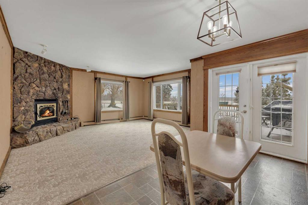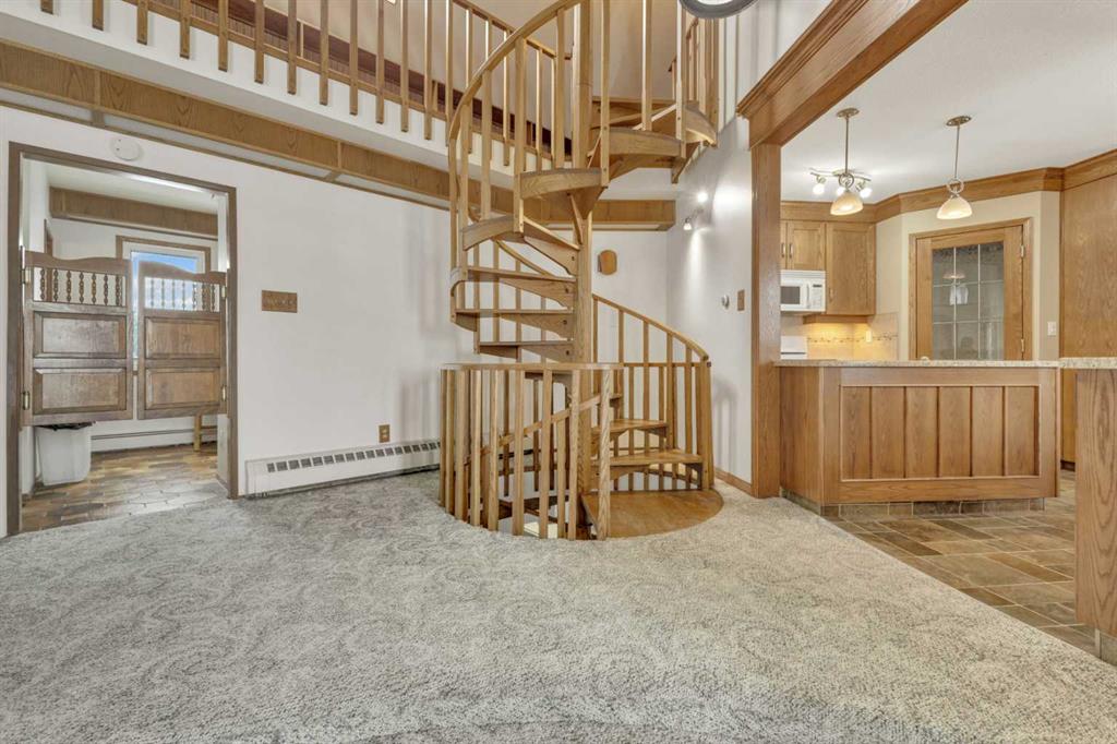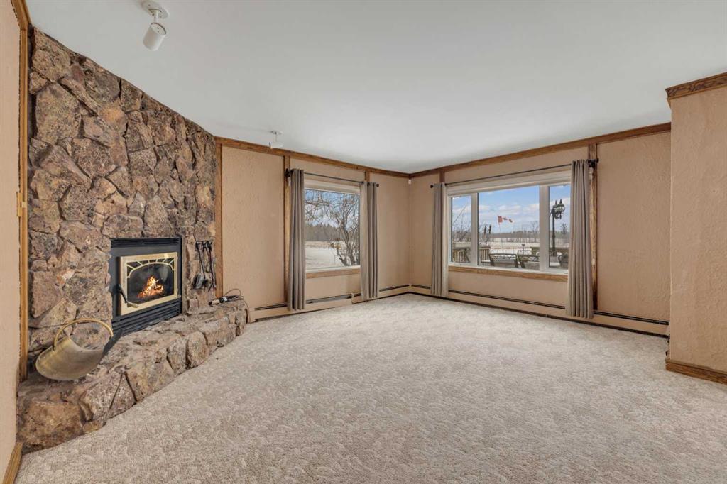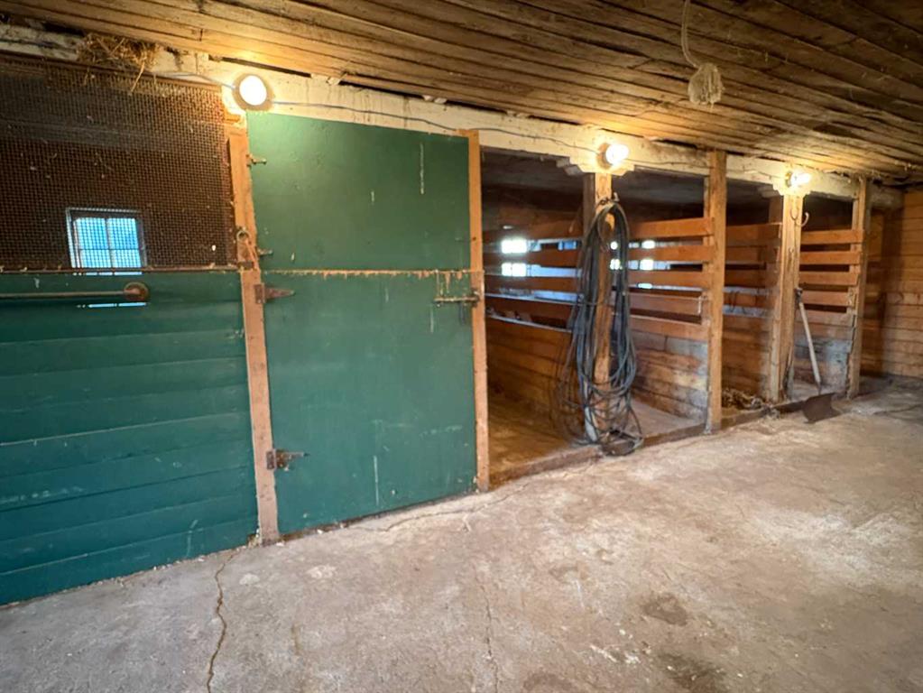 NOT IN a subdivision and NO IMMEDIATE neighbors. An incredible opportunity 30 YEARS in the making!! Just under 7 Acres of flat, usable land with an incredible shelterbelt. This updated character home blends charm and function, featuring stunning oak spiral staircase, Colorado stone fireplace and major upgrades throughout (kitchen-2015, windows & roof-2021, paint, flooring-2024 and more!). Newer front and rear decks on steel screw pile anchors, and everything outside you need for livestock, horses and the mechanic in your life. A hip roof barn that is 30ft W x 44ft L with 5 box stalls and large pens ready for critters. The XL heated farm shop is 43ft W x 50ft L with a 20x14ft high door – so much space for working, welding, mechanic and storage! Peaceful, private and just minutes to Ponoka – this is acreage living at its best!