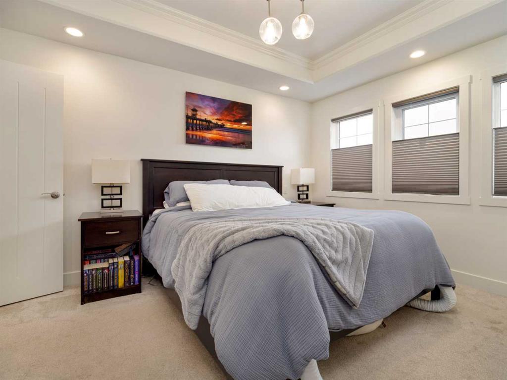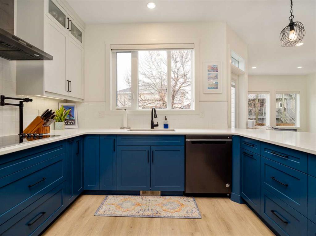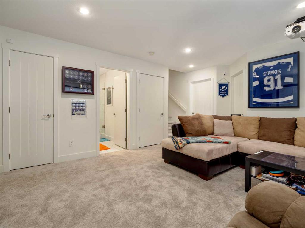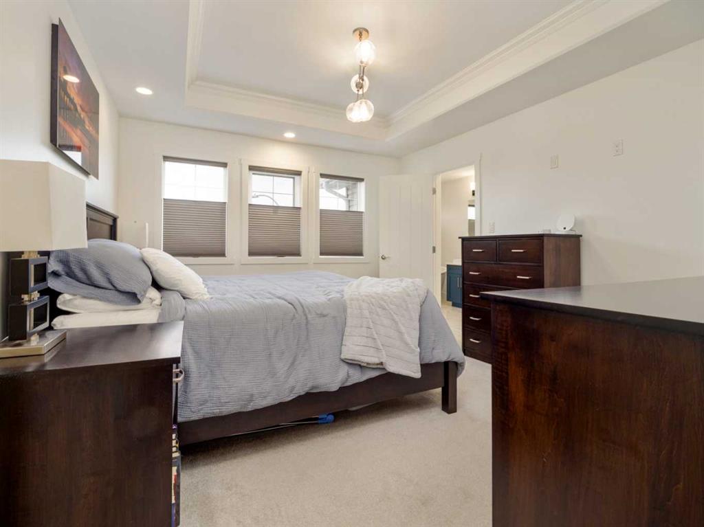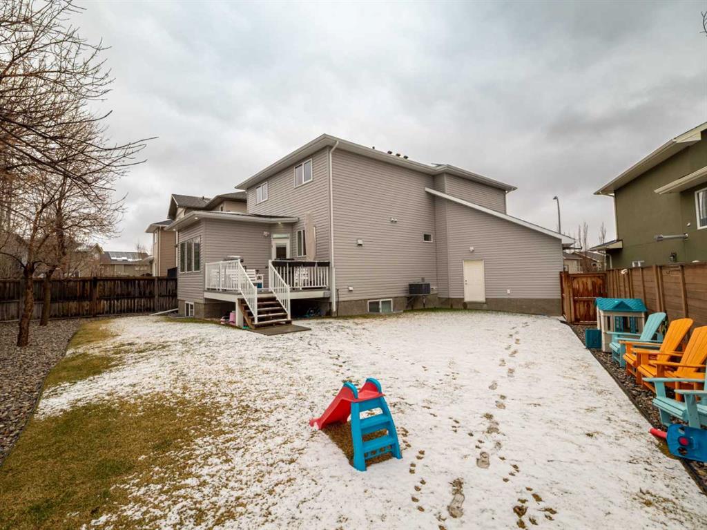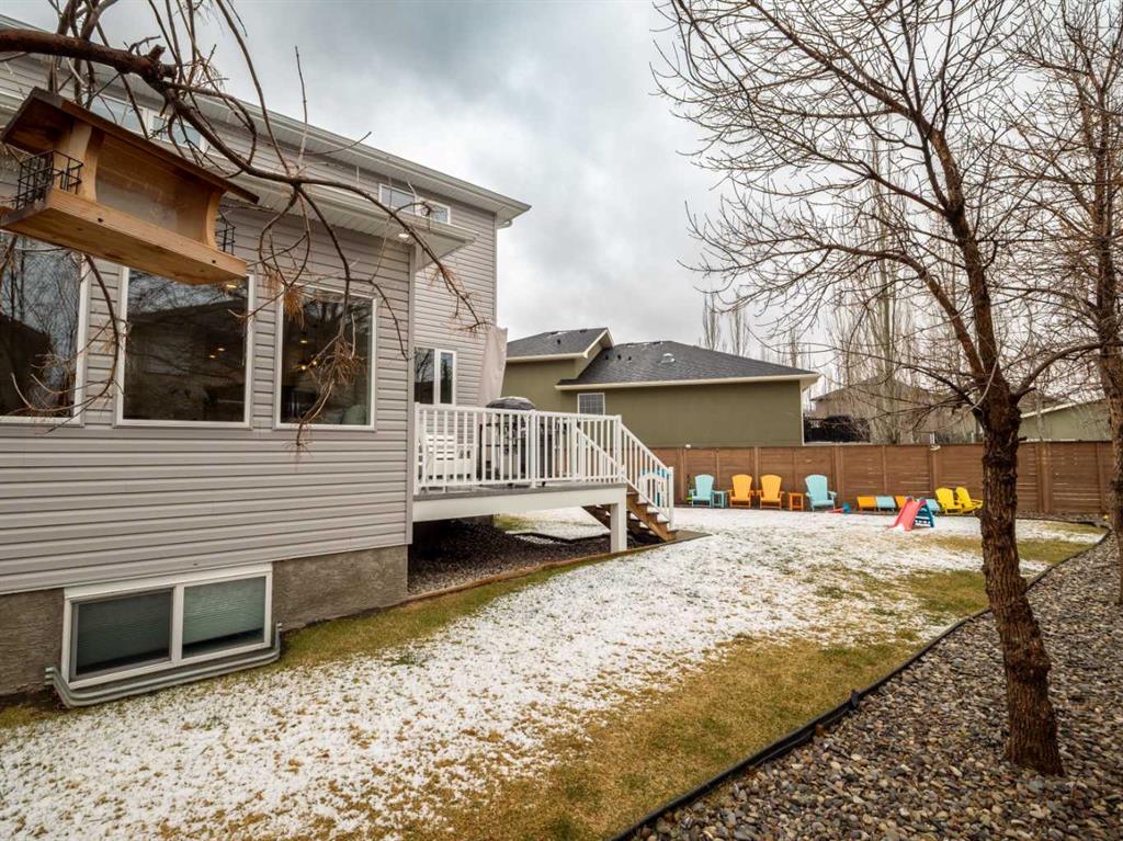 Just 5 year old two storey fully finished home on a pie shaped lot in a cul-de-sac in Sixmile, originally built by 5P's construction. Home has fantastic function and style! Main floor features welcoming entry with tile floors that continue to mudroom(with entrance to garage) and 2 piece bath. Open plan with 9 foot ceilings and laminate floors for kitchen, dining, and living room areas. Kitchen features floor to ceiling cabinets, quartz counters, pot filler by the stove, standout blue lower cabinets, a walk-thru pantry to mudroom, and full appliance package with built-in wall oven, and electric range. Sink area has window that looks out to backyard and deck. Dining space is a good size and gives you options for table sizes. Living room has gas fireplace with floor to ceiling tile, large windows for plenty of light, and door to deck out back. Upper level houses 3 bedrooms including primary with large 5 piece ensuite featuring separate soaker tub, walk-in shower, and double vanity. Ensuite leads to walk-in closet with built-in shelving. Upper level also has a laundry room that passes through the hallway and the primary walk-in closet. Another 4 piece bathroom with tub/shower combo completes the upper level. Basement is fully developed with family/theatre room that includes the projector and screen! There is also a 4th bedroom and another bathroom with full size walk-in tiled shower. Basement also has a separate storage room, and furnace/utility room. More storage can be found under the stairs. Large pie shaped yard is fenced, has contoured landscaping, and features plenty of room for kids and pets to run! Underground sprinklers are in the back to keep the lawn green in the summer! Home has conveniences of central a/c, tankless hot water, Hunter Douglas Blinds, and a large 31x33 heated double garage with man door to backyard! Location is close to parks, elementary school, shopping, restaurants, medical, and all big box shopping in South Lethbridge including Walmart, Costco, Superstore, Rona, Home Depot, Best Buy, Canadian Tire, etc! Move in and Enjoy!