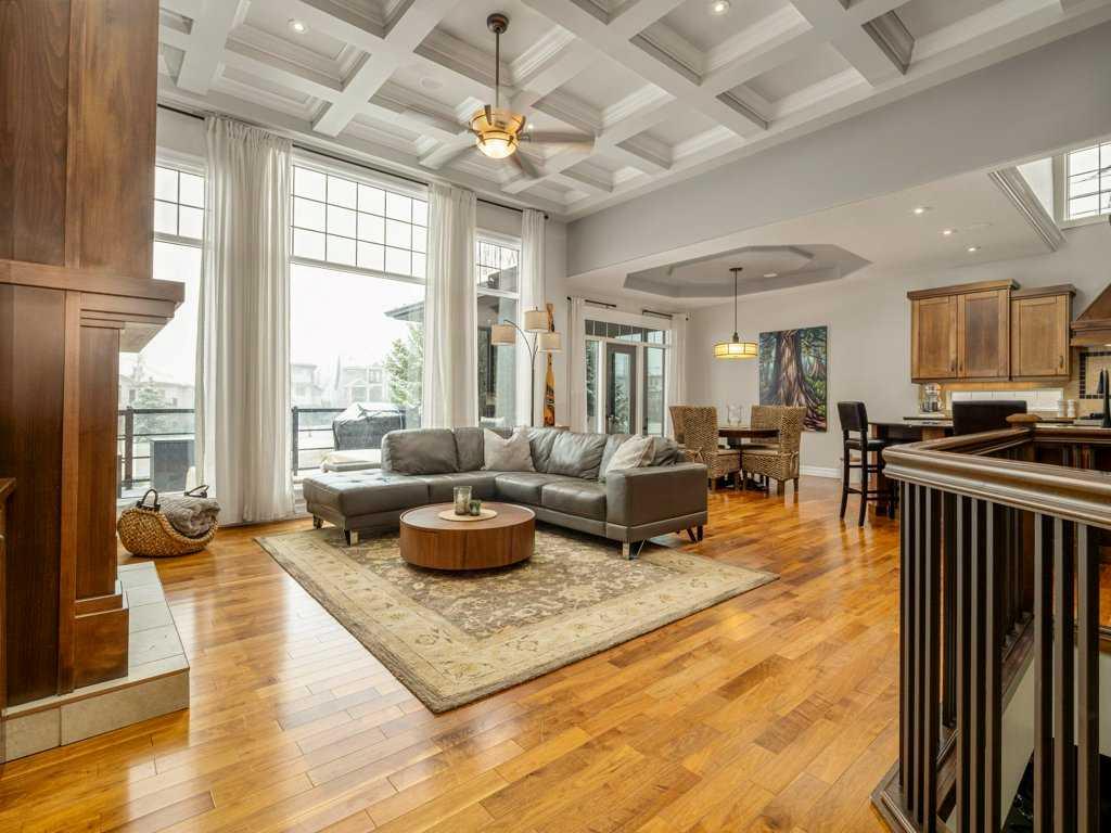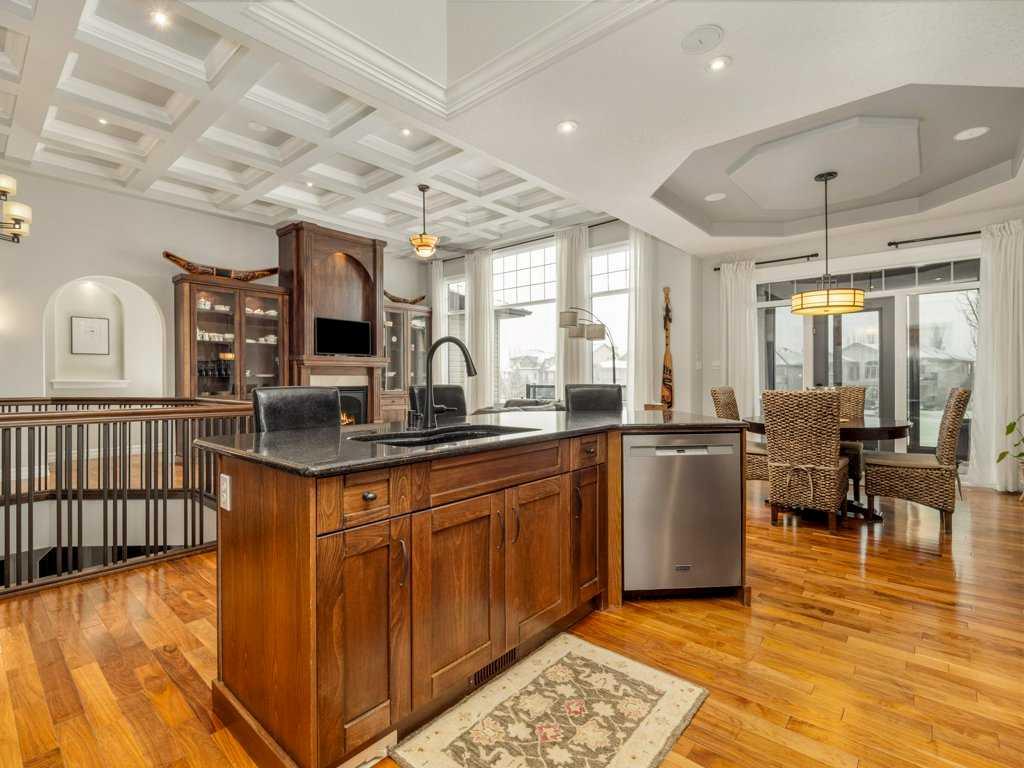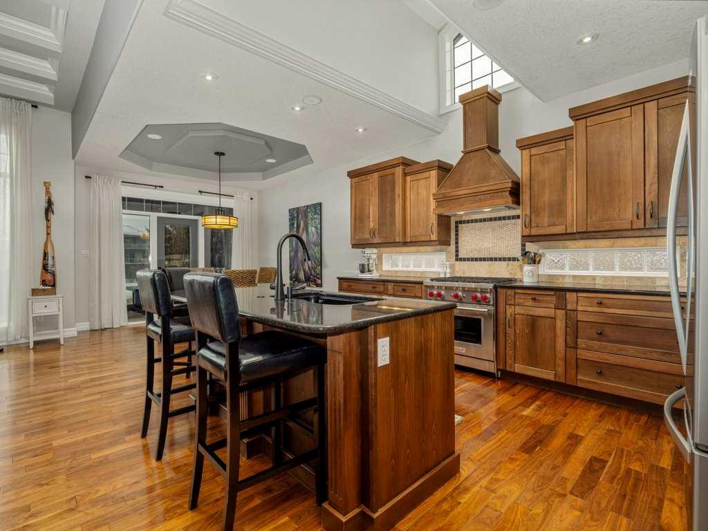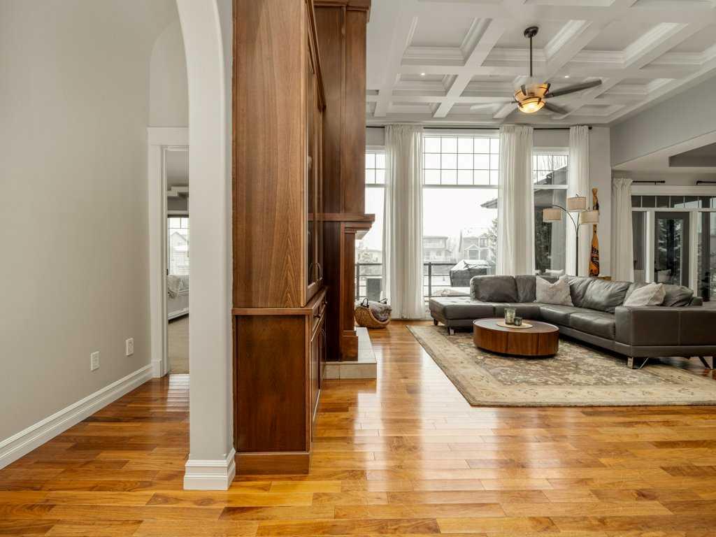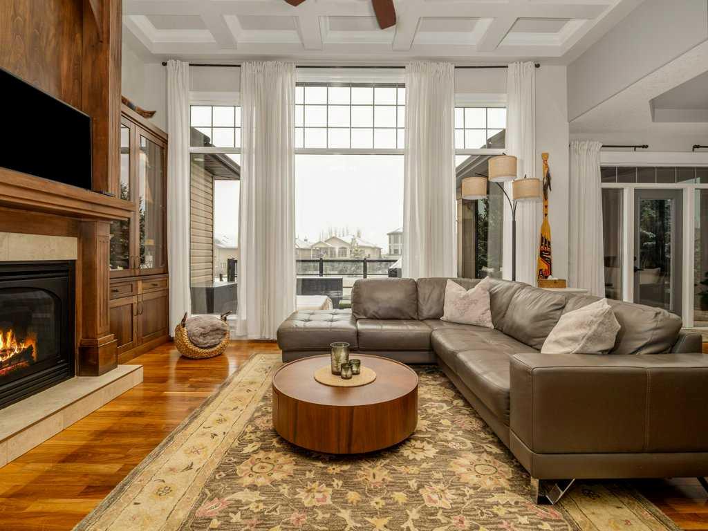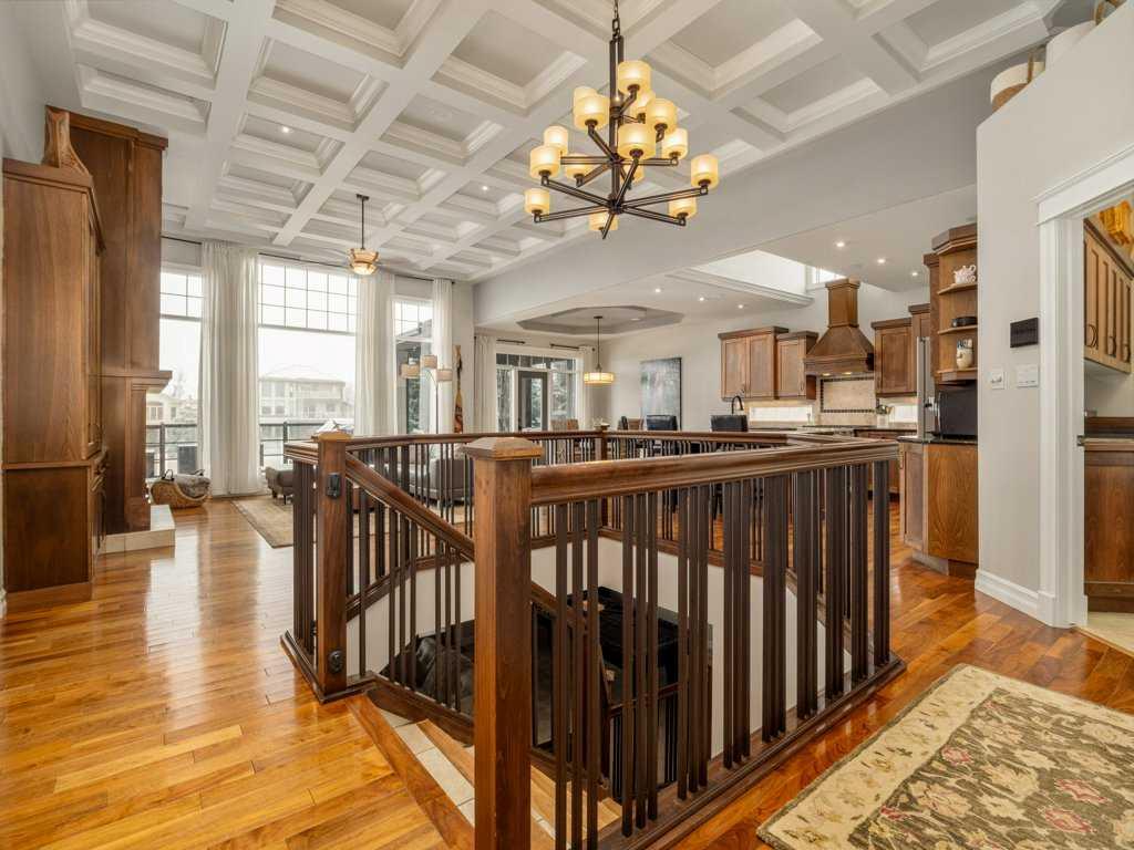 Experience elevated living in this exceptional former Signature Show Home, crafted with a level of detail and timeless design. Perfectly positioned to capture tranquil lake and park views, this home offers an unmatched combination of luxury, comfort, and privacy in one of the most desirable neighbourhoods. From the moment you step inside, the quality is undeniable. Intricate coffered ceilings, expansive windows, and a grand fireplace framed by custom wood built-in bookcases create a warm yet sophisticated main living space. Rich hardwood floors flow throughout, complementing the home’s elegant architectural features. The chef’s kitchen is both beautiful and functional, complete with a spacious pantry designed to inspire culinary creativity and effortless entertaining. Main floor laundry adds everyday convenience, while the recently upgraded Control4 smart home system ensures modern living at your fingertips. Retreat to the luxurious primary suite, where large windows invite in natural light and peaceful views. The spa-inspired five-piece ensuite offers a serene escape at the end of the day. The fully developed walkout lower level is an entertainer’s dream. Enjoy movie nights in the dedicated theatre room (which can easily convert back to a bedroom if desired), relax by the gas fireplace, or host gatherings around the pool table and wet bar. Step outside to your private hot tub area for the ultimate unwind. Backing onto a serene stream, pond, and expansive greenspace, the backyard offers exceptional privacy. The generous upper deck — partially enclosed with privacy glass — allows you to enjoy peaceful morning coffees or evening sunsets year-round, with half of the deck covered for added comfort in any season. Additional highlights include heated basement floors, a newly installed hot water tank/boiler, and a garage equipped with a car lift for your prized vehicle. Meticulously maintained here is a rare opportunity to own a showpiece home in an extraordinary setting. Call your realtor today and book a showing.