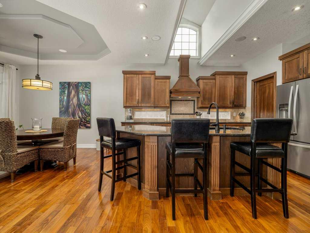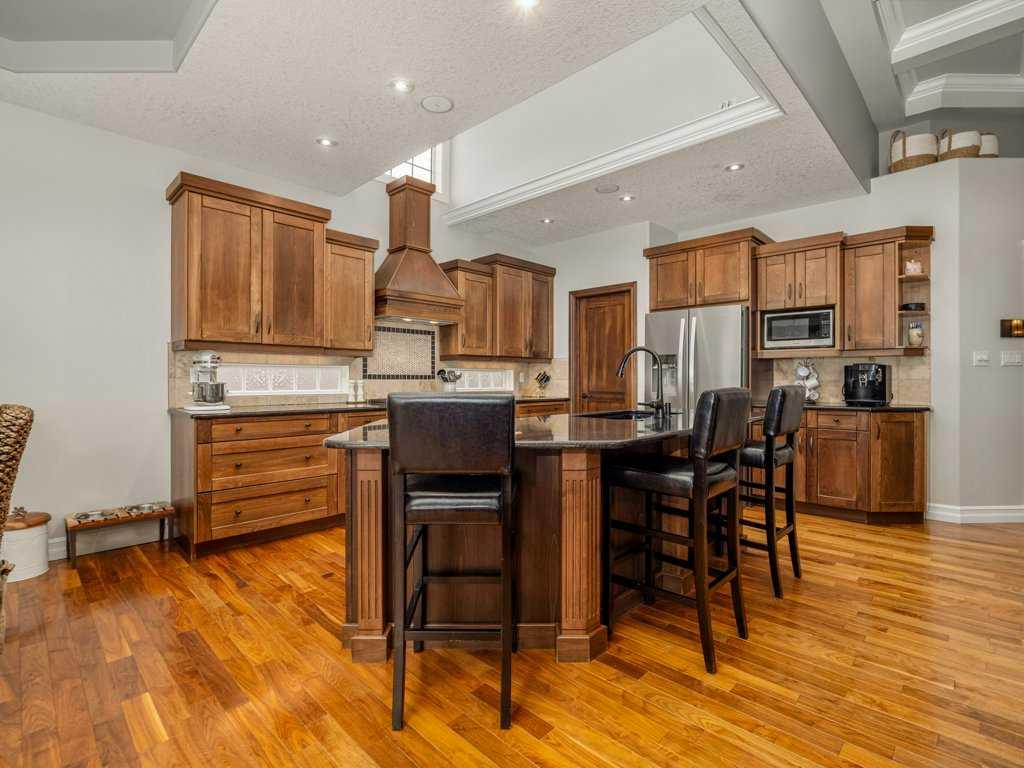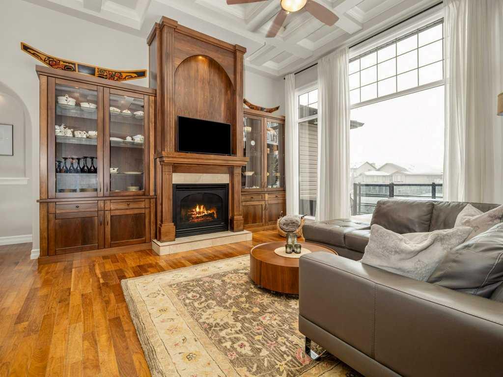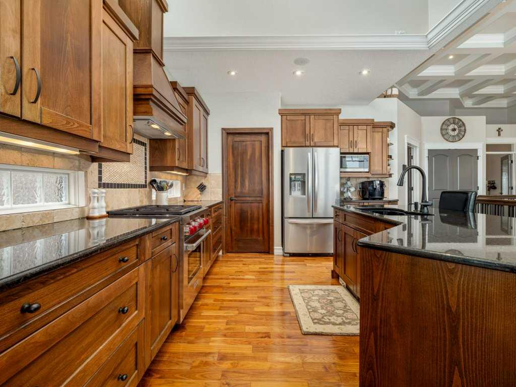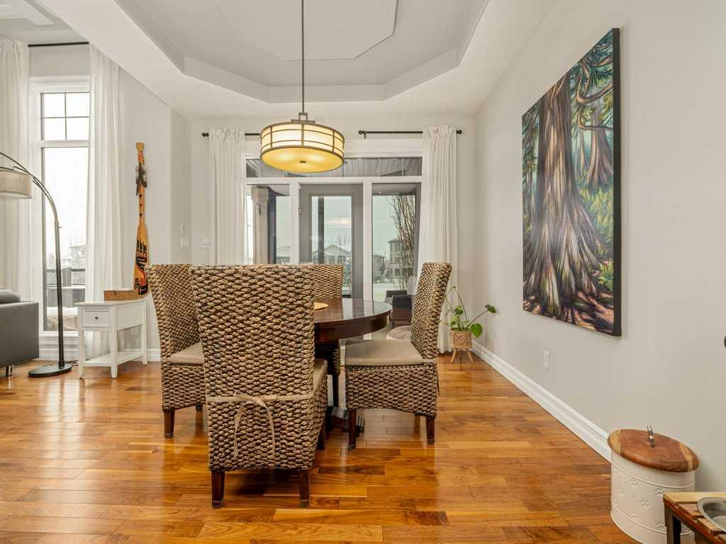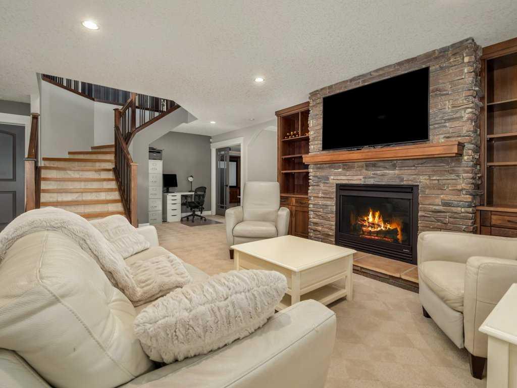 Experience elevated living in this exceptional former Signature Show Home, crafted with a level of detail and timeless design. Perfectly positioned to capture tranquil lake and park views, this home offers an unmatched combination of luxury, comfort, and privacy in one of the most desirable neighbourhoods. From the moment you step inside, the quality is undeniable. Intricate coffered ceilings, expansive windows, and a grand fireplace framed by custom wood built-in bookcases create a warm yet sophisticated main living space. Rich hardwood floors flow throughout, complementing the home’s elegant architectural features. The chef’s kitchen is both beautiful and functional, complete with a spacious pantry designed to inspire culinary creativity and effortless entertaining. Main floor laundry adds everyday convenience, while the recently upgraded Control4 smart home system ensures modern living at your fingertips. Retreat to the luxurious primary suite, where large windows invite in natural light and peaceful views. The spa-inspired five-piece ensuite offers a serene escape at the end of the day. The fully developed walkout lower level is an entertainer’s dream. Enjoy movie nights in the dedicated theatre room (which can easily convert back to a bedroom if desired), relax by the gas fireplace, or host gatherings around the pool table and wet bar. Step outside to your private hot tub area for the ultimate unwind. Backing onto a serene stream, pond, and expansive greenspace, the backyard offers exceptional privacy. The generous upper deck — partially enclosed with privacy glass — allows you to enjoy peaceful morning coffees or evening sunsets year-round, with half of the deck covered for added comfort in any season. Additional highlights include heated basement floors, a newly installed hot water tank/boiler, and a garage equipped with a car lift for your prized vehicle. Meticulously maintained here is a rare opportunity to own a showpiece home in an extraordinary setting. Call your realtor today and book a showing.