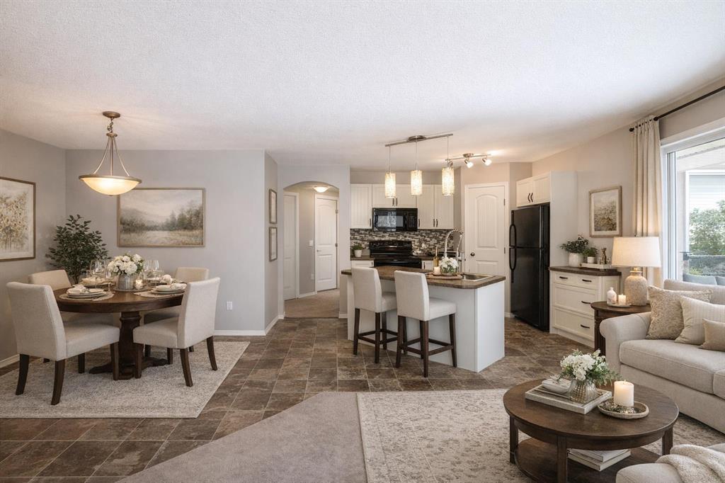 Move-in ready and vacant for immediate possession, this beautifully maintained ground floor condo offers both comfort and convenience. Enjoy easy access with parking located just steps from your front door, plus nearby visitor parking for guests. The welcoming front entry provides the perfect opportunity to add your own personal touch, while the private concrete patio at the back is ideal for relaxing, barbecuing, or adding garden boxes. Inside, the bright open-concept layout features modern paint tones, stylish white cabinetry, and a functional corner pantry for added storage. The kitchen flows seamlessly into the dining and living areas, creating a warm and inviting space for everyday living or entertaining. The updated bathroom showcases contemporary black fixtures and hardware for a sleek, modern finish. Offering two bedrooms, including a second bedroom with direct access to the back patio, this home embraces indoor-outdoor living with a peaceful greenspace setting. With two separate entrances, two assigned parking stalls, low condo fees, and a truly turn-key condition, this is an excellent opportunity for first-time buyers, downsizers, or investors alike.