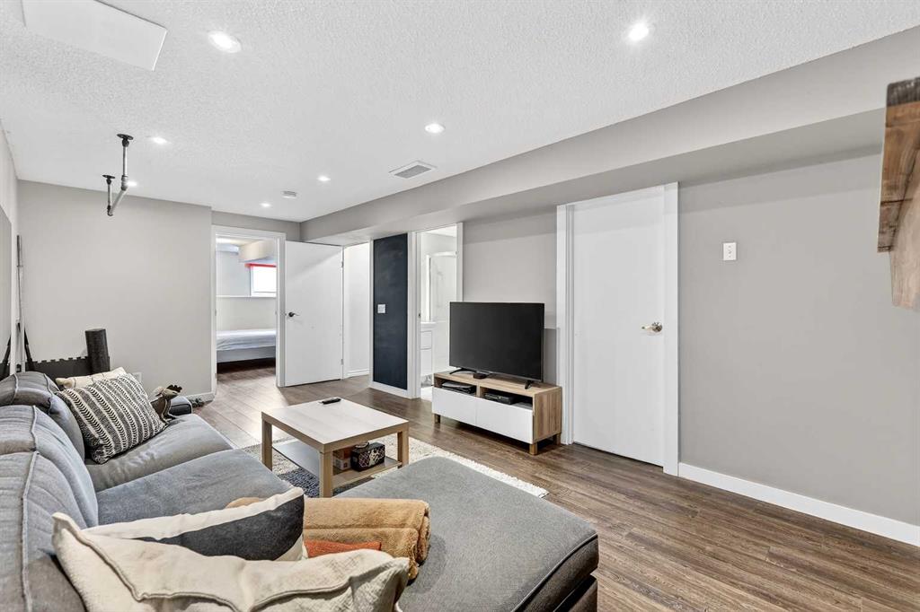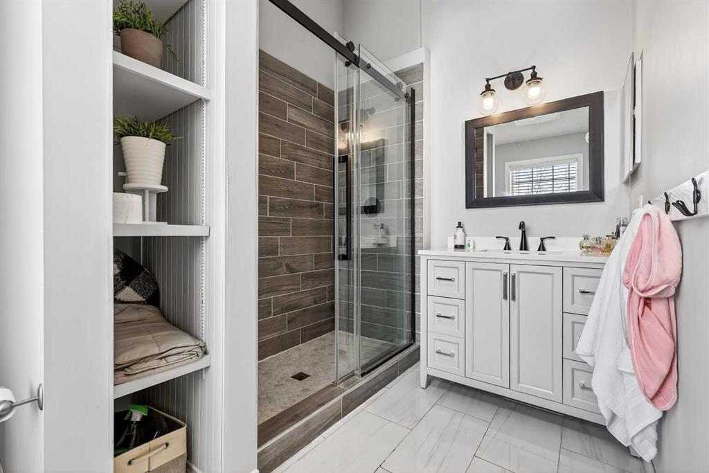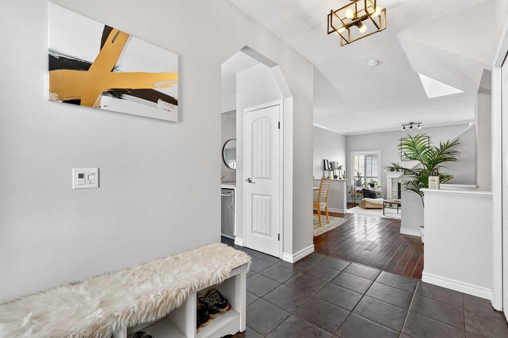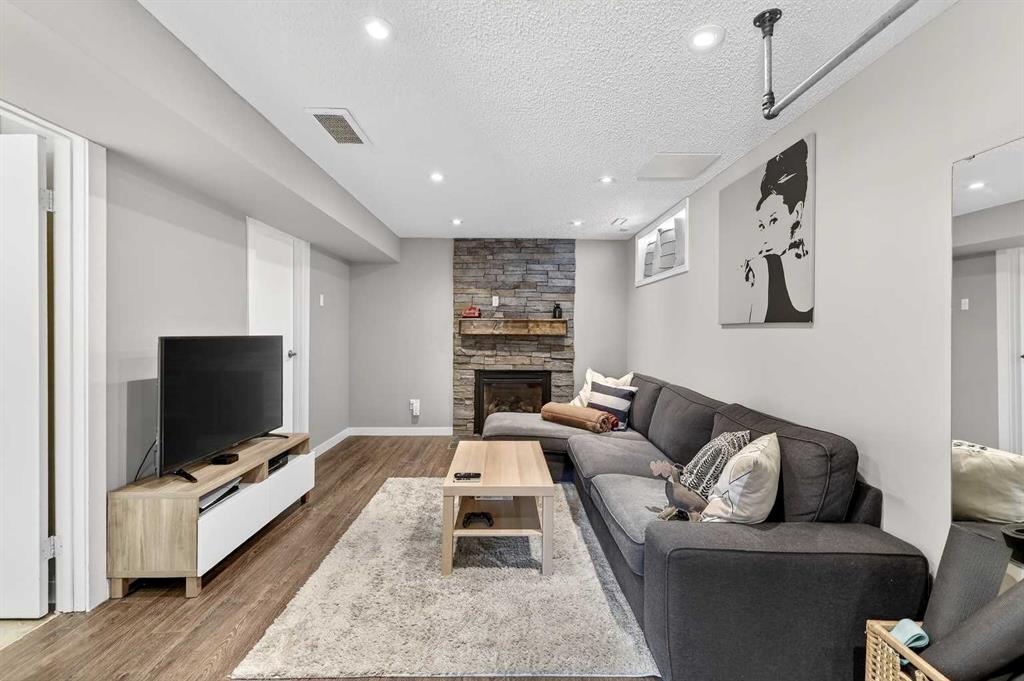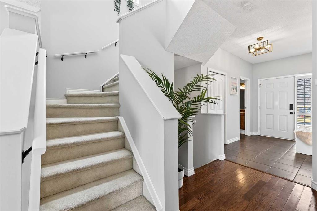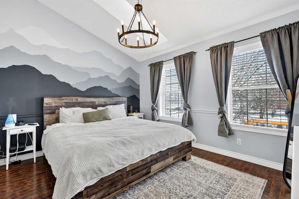 A Truly Distinctive Home That Stands Out from the Rest This immaculate and one-of-a-kind two-story home blends spacious design with exceptional craftsmanship and a beautifully landscaped yard that makes a lasting impression. The stunning outdoor space features an expansive patio, a generous back deck, and a massively oversized garage — perfect for car enthusiasts or hobbyists. Inside, you'll find 9-foot ceilings, vaulted accents, and a bright, open floor plan that welcomes natural light throughout. The main level showcases gleaming hardwood floors, a modern kitchen with stainless steel appliances, a convenient pantry, and an open-concept dining area ideal for entertaining. The inviting living room features a cozy gas fireplace, while the spacious entry, mudroom, and stylish 2-piece bath complete this level. Upstairs, the primary suite impresses with its sizeable walk-in closet and a beautifully updated 3-piece ensuite. Two additional bright bedrooms and a well-appointed 4-piece bath complete the upper floor. The fully finished basement offers even more living space, featuring laminate flooring, a large family room highlighted by another gas fireplace with a stone surround, a spacious fourth bedroom, a 3-piece bath, and a generous laundry/utility area. Perfectly situated across from schools and within walking distance to parks, playgrounds, and abundant green space, this distinctive property combines comfort, style, and location in a way that truly sets it apart.