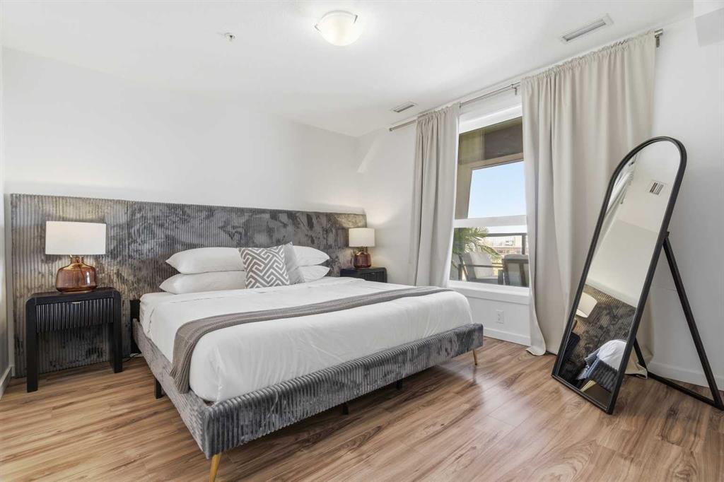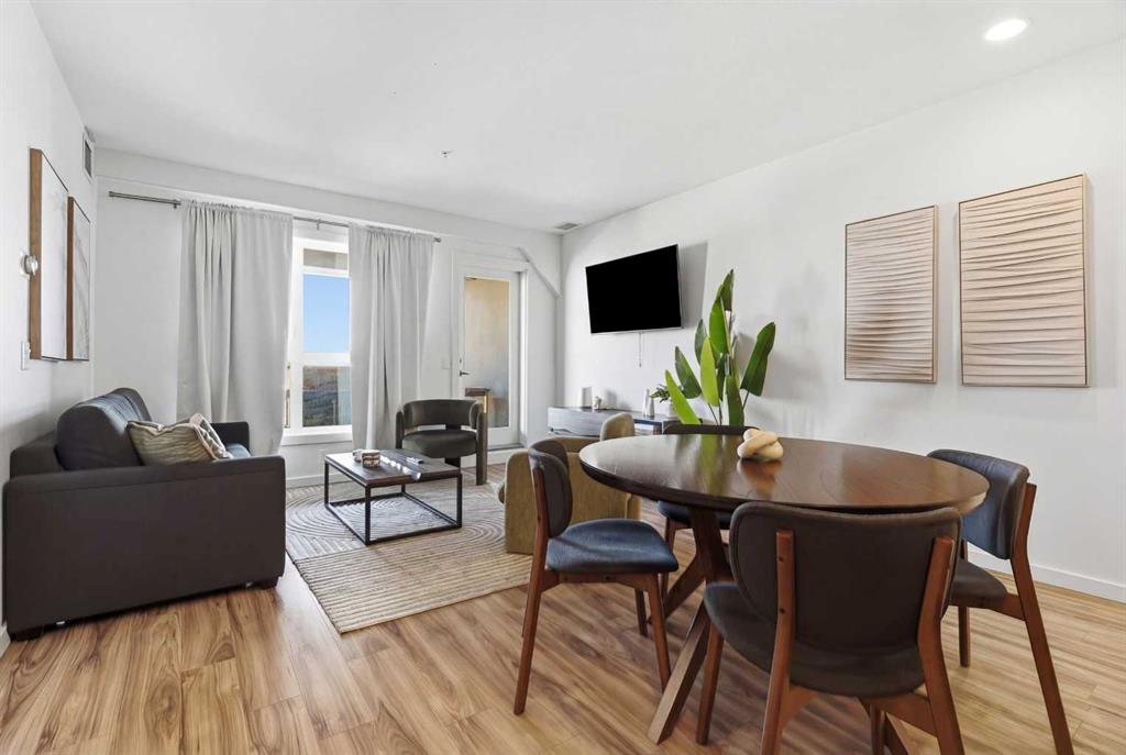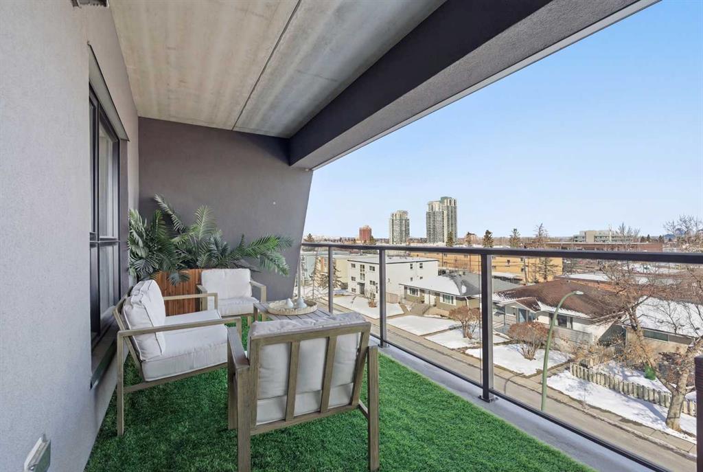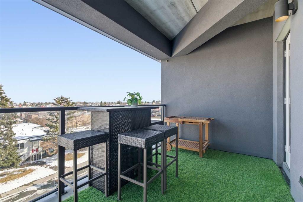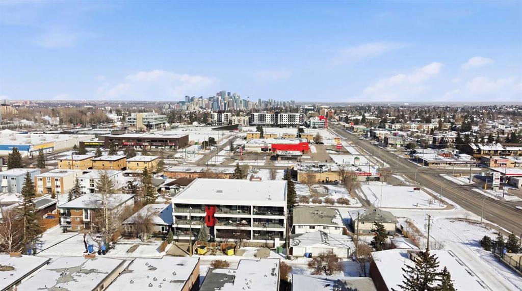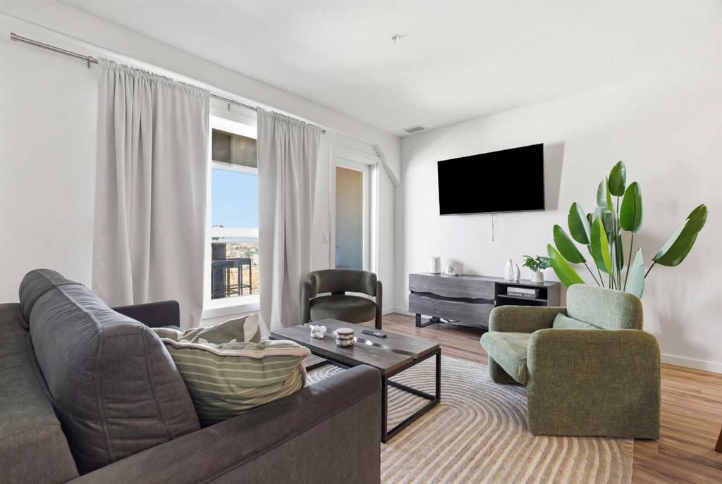 2 BEDROOMS | 2 BATHROOMS | TOP FLOOR CORNER UNIT | 795 SQFT | CONCRETE & STEEL BUILDING | UNDERGROUND PARKING | DOWNTOWN VIEWS | Welcome to this bright top-floor corner unit in the desirable community of Rosscarrock, offering 795 sqft of well-designed living space in a quiet, well-maintained concrete and steel building. With double drywall between units, this home provides exceptional soundproofing and privacy, making it ideal for comfortable condo living. Step inside to an open-concept layout featuring hardwood flooring throughout and central air conditioning for year-round comfort. The modern kitchen is both stylish and functional, complete with quartz countertops, induction cooktop, stainless steel appliances, and a large central island with seating, perfect for entertaining or everyday living. The kitchen flows seamlessly into the dining and living areas, where large windows and a patio door lead to your large private balcony. Enjoy your morning coffee with beautiful sunrise views or unwind while taking in the stunning downtown Calgary skyline. The spacious primary bedroom is filled with natural light and features a walk-in closet and a 4-piece ensuite. A second bedroom offers flexibility for guests, a roommate, or a home office, and is complemented by a 3-piece bathroom. Additional highlights include in-suite laundry, a storage closet, and a well-appointed layout designed for both functionality and comfort. This home also includes a titled underground parking stall, visitor parking, and 24-hour security for added peace of mind . The building is clean, quiet, and ideally located within walking distance to restaurants, 17th Avenue, the C-Train, grocery stores, shopping, schools and parks. With easy access to downtown and a short drive to Westhills Shopping Centre, this location offers the perfect balance of convenience and lifestyle. Whether you're a first-time buyer, investor, or looking for a great AirBnB opportunity, this home checks all the boxes. Book your showing today!