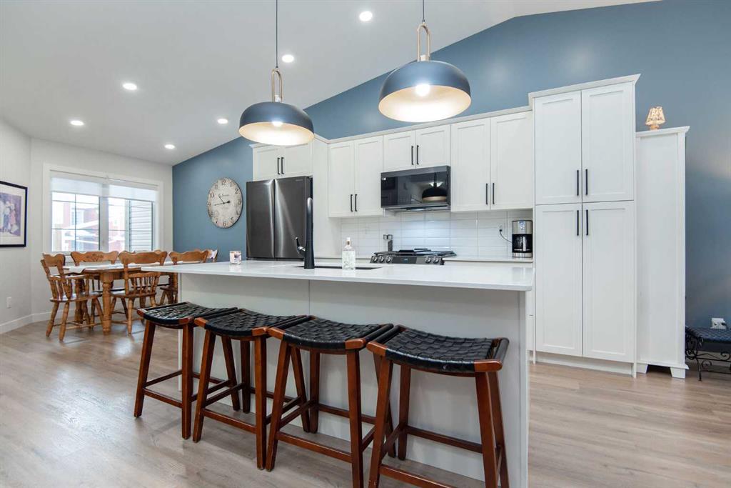 Welcome to Garden Heights – Adult-Oriented Condo Living at Its Finest! Experience the perfect balance of comfort, style, and low-maintenance living in the desirable community of Garden Heights. Ideally situated just steps from scenic green spaces, tree-lined pathways, and trails leading to the Red Deer River and McKenzie Trails, this location also offers a short walk to all the shopping, dining, and everyday amenities of Clearview Market and Timberlands. This beautifully designed bungalow-style townhome feature a fully developed layout with 3 bedrooms and 3 bathrooms, offering functional space for both everyday living and entertaining. The open-concept main floor is highlighted by vaulted ceilings, large windows, and durable vinyl plank flooring throughout, creating a bright and inviting atmosphere. The modern kitchen is sure to impress with painted maple cabinetry, quartz countertops, a spacious island, gas range, and a pantry with convenient pull-out drawers. The main floor also includes a comfortable primary bedroom complete with a private ensuite. An option to add main floor laundry provides additional convenience and flexibility. The fully finished basement expands your living space with two additional bedrooms, a large family/recreation room, a 4-piece bathroom, dedicated laundry area, and ample storage. Enjoy the privacy of your own fenced and landscaped yard with patio, along with a natural gas hookup for your BBQ—perfect for outdoor entertaining. Additional features include central air conditioning and an oversized single attached garage. Whether you’re looking to downsize or enjoy a quiet, maintenance-friendly lifestyle, this premium townhome offers the ideal setting with nature at your doorstep and amenities just minutes away. An excellent opportunity to enjoy easy living in a prime location.