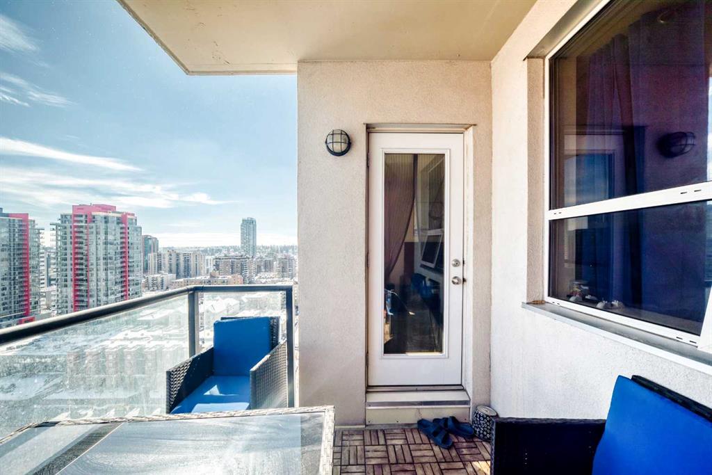Welcome to this well-maintained 18th-floor unit offering stunning east-facing city views and an abundance of natural light through expansive floor-to-ceiling windows and 9-foot ceilings. The functional layout features a bright kitchen with granite countertops, black appliances, and neutral finishes, along with the convenience of in-suite laundry. Laminate and tile flooring run throughout the space. Step outside to your private east-facing balcony, complete with a gas hookup—perfect for enjoying morning coffee or summer BBQs. This unit includes one heated underground titled parking stall, and condo fees cover all utilities except cable. Ideally located, Calgary Co-op Midtown Market is just across the parking lot for easy grocery runs. The building also offers great amenities including a fitness room and secure underground visitor parking. Enjoy being within walking distance to Downtown Calgary, 17th Avenue SW, bike paths, and a wide range of shops, dining, and everyday conveniences. Don’t miss your chance to live in one of Calgary’s most walkable neighborhoods—schedule your private showing today!