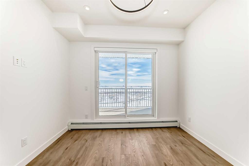 Welcome to Myne by Truman, a refined and contemporary residence nestled in the thriving community of Cornerstone in Northeast Calgary. This impeccably designed 2-bedroom, 2-bathroom condominium offers an elevated living experience, blending sophisticated finishes with effortless functionality—ideal for discerning buyers, professionals, downsizers, or investors seeking both style and convenience. Perched on an upper level, this residence is bathed in natural light, with expansive windows framing serene, unobstructed views. The open-concept layout is thoughtfully curated to create a seamless flow between living, dining, and kitchen spaces—perfect for both everyday living and elegant entertaining. At the heart of the home, the designer kitchen showcases sleek, modern cabinetry, quartz countertops, premium stainless steel appliances, and an oversized island that serves as both a statement piece and a functional gathering space. The primary suite is a private retreat, complete with a well-appointed ensuite, while the second bedroom offers versatility for guests, a home office, or a personalized space. A second full bathroom enhances comfort and privacy for residents and visitors alike. Step onto your private balcony—an ideal setting for morning coffee or evening relaxation. Thoughtfully designed for convenience, the unit also features a dedicated in-suite laundry area, ensuring everyday ease without compromising space or style. Includes a titled underground parking stall and an assigned storage unit, providing both security and additional functionality. Residents enjoy access to premium building amenities, including a fully equipped fitness centre and a lounge area—perfect for relaxation or social gatherings—along with secure entry and elevator access for added peace of mind. Situated in the highly desirable and amenity-rich community of Cornerstone, you are moments away from parks, scenic pathways, shopping, dining, schools, and major routes such as Stoney Trail and Metis Trail, ensuring seamless connectivity throughout the city. Experience elevated condo living at Myne by Truman—where modern elegance meets everyday comfort. Schedule your showings today!