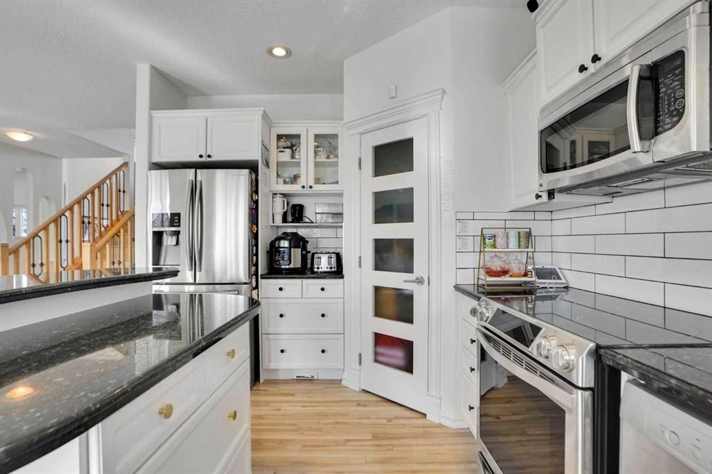 OPen House, this coming Saturday, April 11, from 10:00 am to 12:30 pm. Welcome to this beautifully updated two-storey home with a rare triple attached garage in the sought-after community of Strathcona Park. Recent upgrades include refinished hardwood floors, fresh modern paint, newly painted kitchen cabinetry, central air conditioning, designer wallpaper accents, and a redesigned living room feature wall with custom built-ins and new Fireplace stone work that creates a stylish focal point. The bright open-concept main floor offers an inviting living room with a fireplace, a functional kitchen with a large island, ample cabinetry, a pantry, and modern appliances, plus a versatile dining area that can also serve as a home office. A laundry room and a 2-piece bathroom complete this level. Upstairs features a spacious bonus room with another fireplace, three bedrooms including a generous primary suite with an ensuite, and an additional full bathroom. Hardwood flooring throughout the top two floors adds warmth and elegance. The fully developed basement includes two additional bedrooms connected by an ensuite, a flex space ideal for a gym or office, and plenty of storage. Enjoy the landscaped, fenced backyard with patio, perfect for summer gatherings. The triple-car garage with drive-through access to the backyard is a rare and valuable feature. Conveniently located near excellent schools, shopping, parks, and walking paths, this move-in-ready home offers space, comfort, and thoughtful updates in a prime location