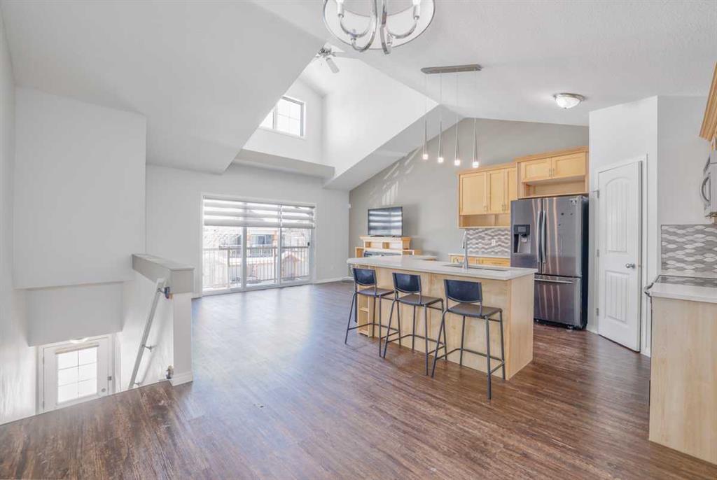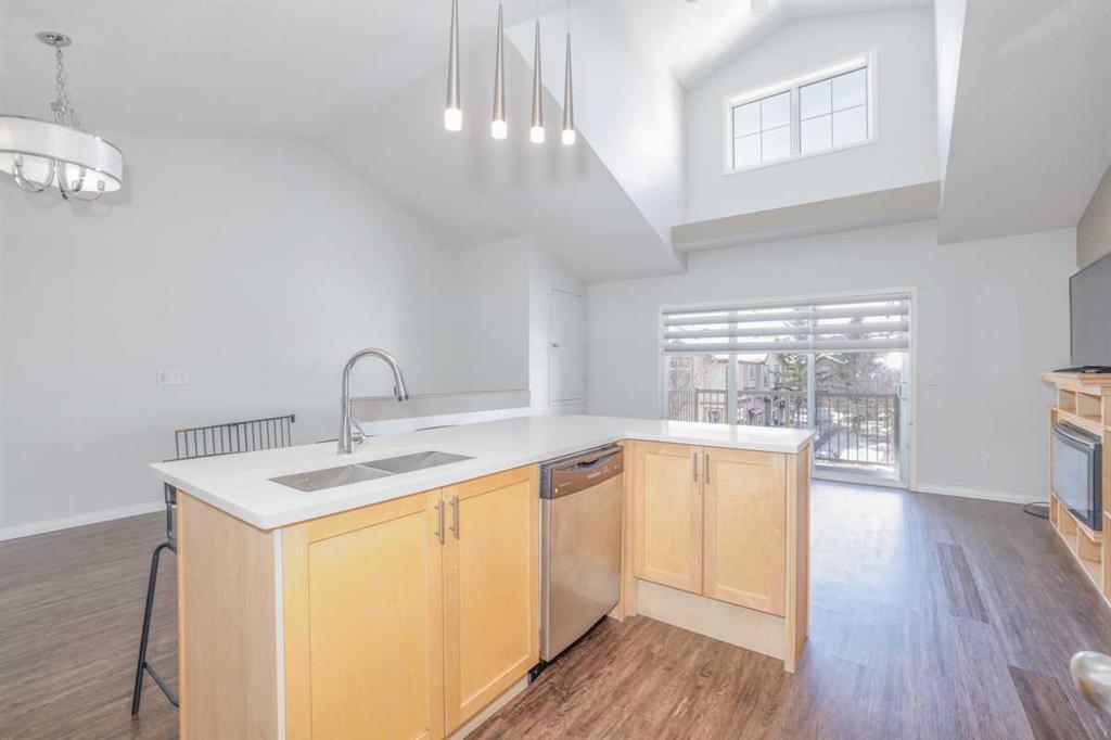 COURT ORDERED SALE! ALL OFFERS MUST BE UNCONDITIONAL & INCLUDE THE SCHEDULE "A" AND A COPY OF THE BANK DRAFT. 2 bedroom condo with vaulted ceilings in the sought after community of Panorama Hills. This bright unit features a spacious open layout, in-floor heating, vaulted ceilings throughout the main floor, dining area and living room. The kitchen features a corner pantry and central island with eating bar, in-suite laundry room and additional storage space. 2 good sized bedrooms and a 4 pc bathroom. Large west facing balcony perfect for enjoying summer nights and accessed by sliding doors from the living room provides even more living and entertaining space. One assigned parking stall. Located within walking distance to schools, shopping, restaurants, parks & playgrounds.