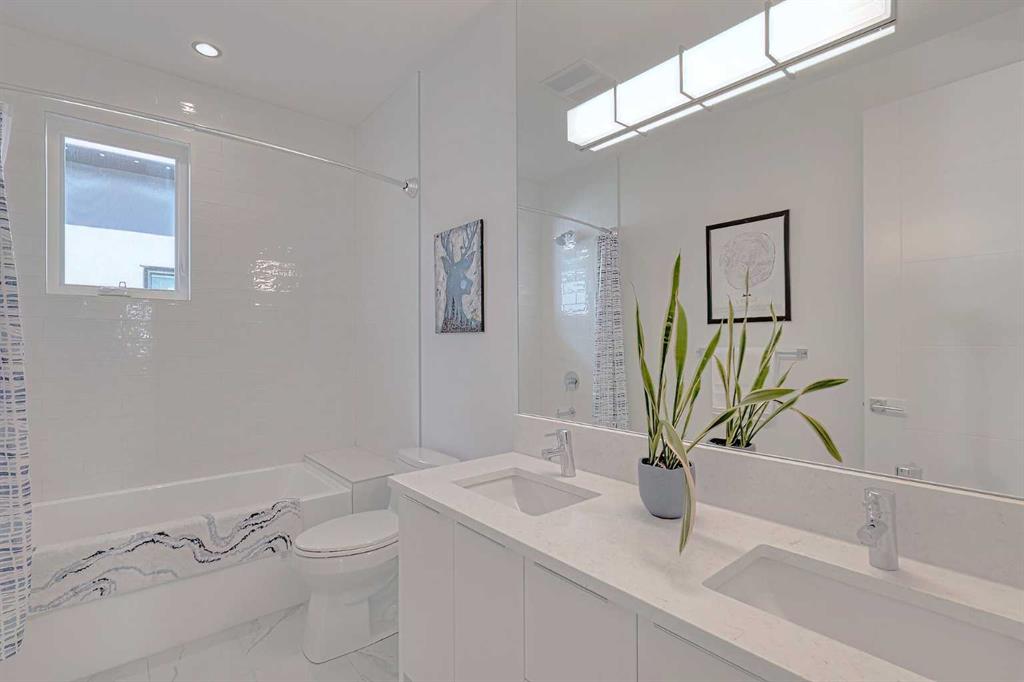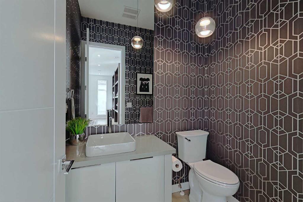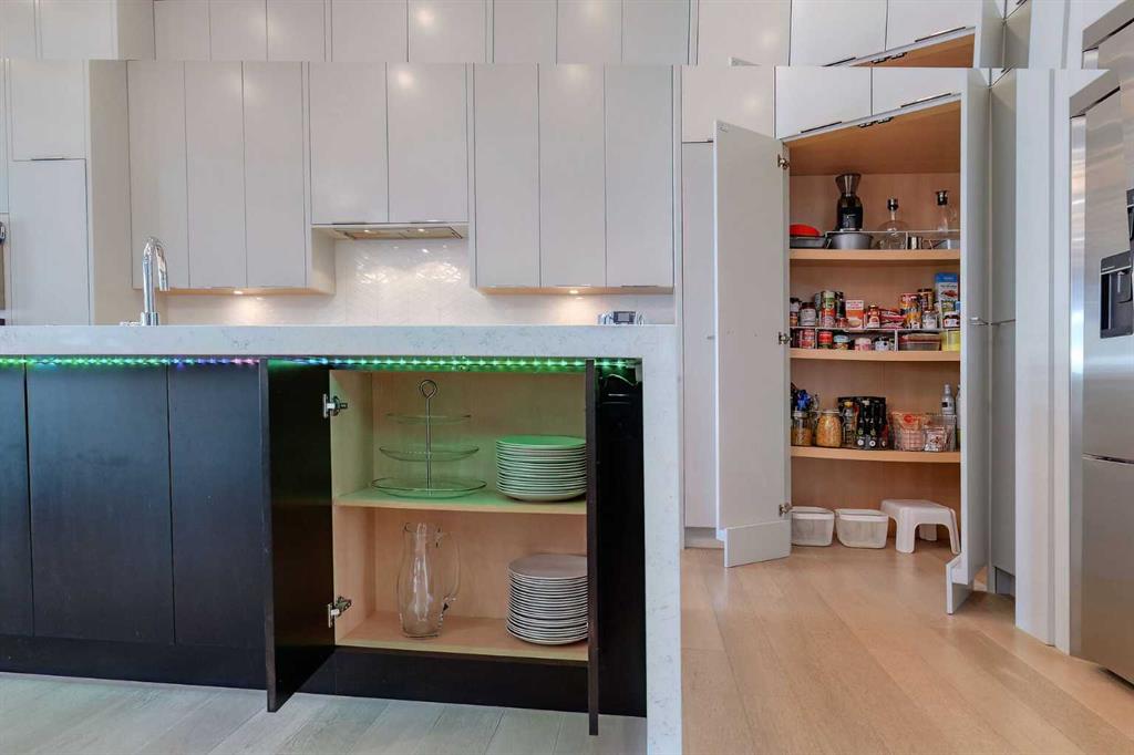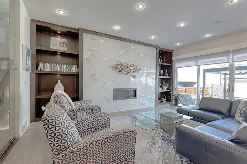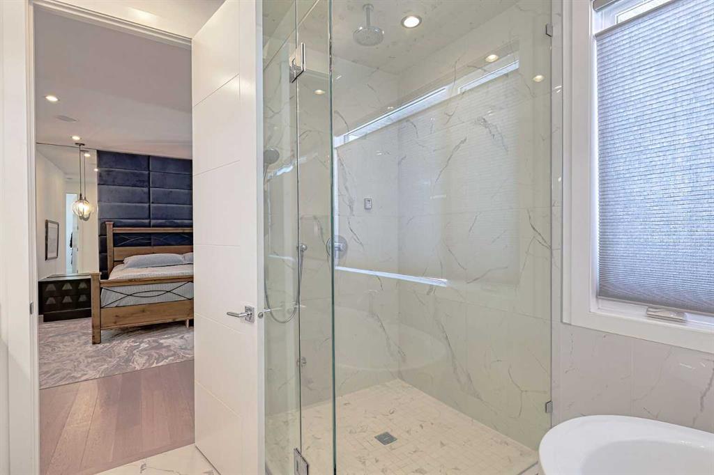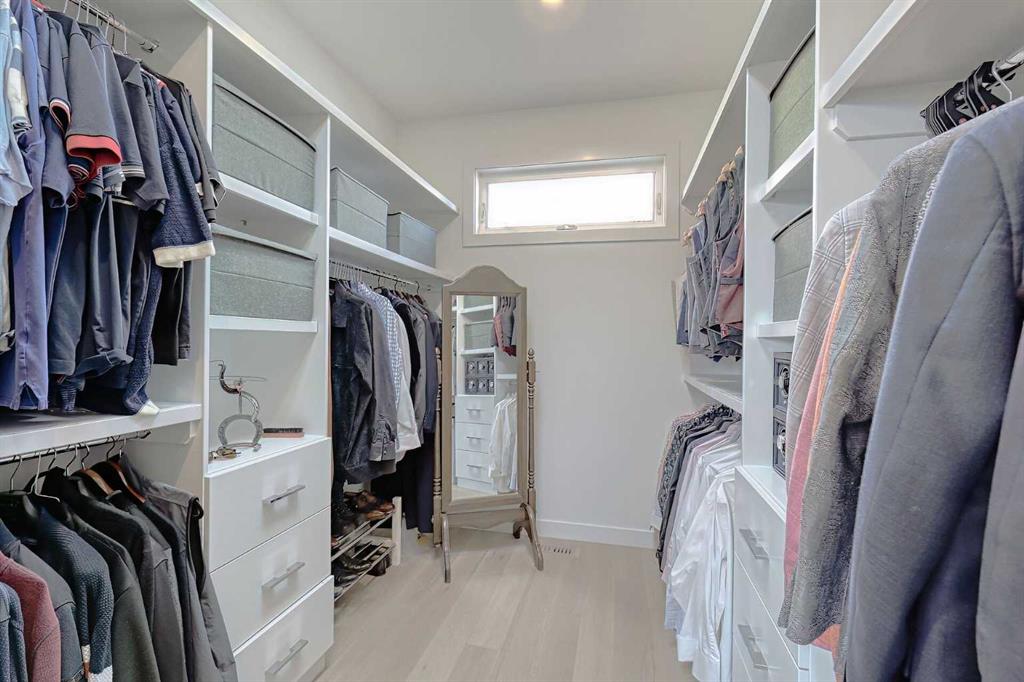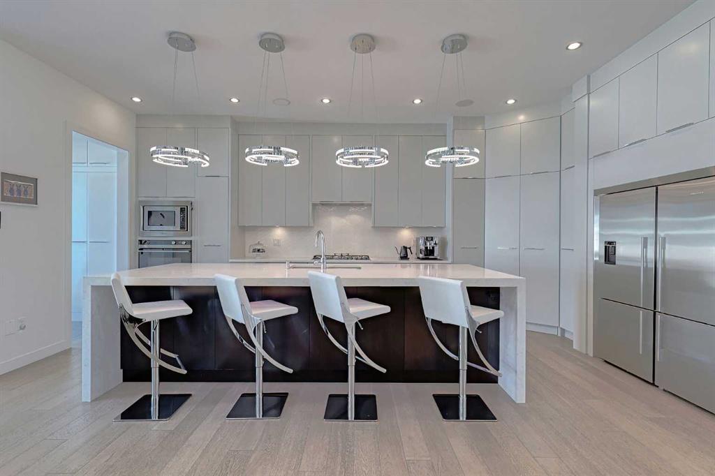 IT’S A LIFESTYLE !! Picture a life where you wake up in a quiet, tree lined SW inner-city neighbourhood, grab a coffee, drive out of your RARE TRIPLE CAR GARAGE and be downtown in minutes. Live the dream in your luxurious modern home and enjoy fun-filled evenings with family and friends in a showpiece GOURMET KITCHEN designed for real cooks. The kitchen features DELUXE FISHER PAYKEL APPLIANCES including gas cooktop, wall oven, microwave, two wine refrigerators and a quiet MIELE DISHWASHER. Note the hidden corner pantry, extra rolling storage and spice racks, and even more storage in the covert cabinets at the front of the island, lit by multi-coloured LED lighting. Imagine laughter echoing through soaring 10’ CEILINGS, and natural sunlight pouring into the OVERSIZED WINDOWS. The upper level with THREE SPACIOUS BEDROOMS includes a relaxing primary bedroom retreat sensibly designed with his and hers walk-in closets. After a tough work week envision finally resting in your king sized bed with tufted blue velvet wall and designer pendant lights or unwinding in the SPA-INSPIRED ENSUITE that feels like a boutique hotel… comes with a freestanding soaker tub, European tiled shower and dual sinks. Also on this floor is a spacious laundry room, and I nearly forgot to mention that the second bedroom has its own walk in closet! So many CUSTOM UPGRADES – lighting, plumbing, built in speakers, and for ease of life, Lucent automated roller blinds in the great room, a mudroom with built in storage, second air conditioner rough in, etc. This Killarney gem is beautifully built with 10’ ceilings that create an airy, open feel, has wide-plank hardwood flooring, custom cabinetry, a massive island for your creative baking pleasure, a great room that brings people together and features a tile surround showcase fireplace. AND the large dining room with stunning floor to ceiling built-in shelving is a show stopper. A large FOURTH BEDROOM and THREE PIECE BATHROOM complete the FULLY DEVELOPED BASEMENT. Imagine movie nights in your own private media lounge where you might also host guests with a wine or whiskey tasting at your fancy wet bar, a lower level made for memories. Check out the garage with new, cutting edge steel cabinets and polyaspartic flooring (tough as nails, but breaths better than epoxy). A fabulous, private back yard with artificial turf gives you a near entirely MAINTENANCE FREE FRONT and BACK YARD with ALUMINUM PERGOLA WITH POWERED LOUVRES and lots of space for your patio furniture and outdoor fire pit. There are plenty of entertaining areas inside and outside this opulent home. Minutes to downtown, transit, parks, amenities and the Shaganappi Golf Course; golf in summer or cross country ski and snow shoe in winter. The Killarney Aquatic Recreation Centre is also just blocks away. This magnificent detached home blends contemporary design with everyday comfort – where modern luxury meets everyday ease.