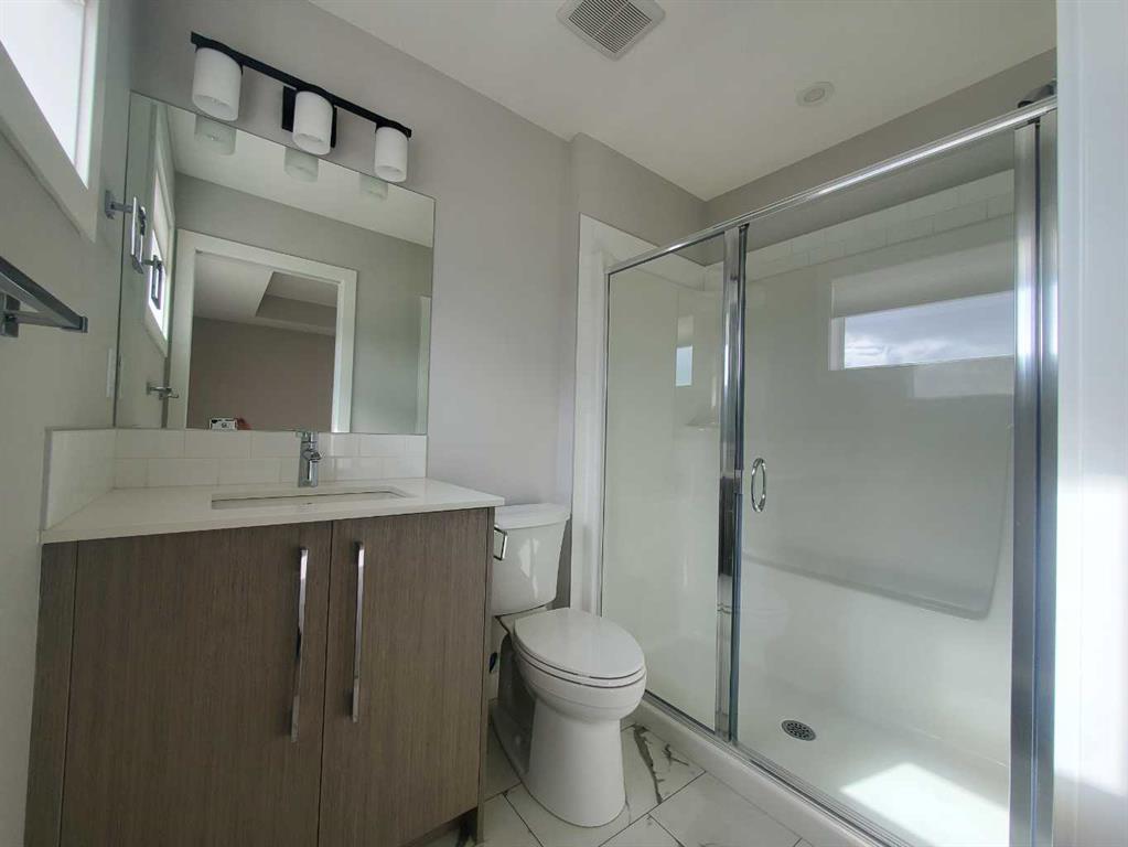 Amazingly bright & newer family house located in Chelsea, the new community of beautiful lake city of Chestermere. Property is selling at very competitible price for new and young families. Two storey, each level is spacious, full of natrual light welomes you to this home sweet home. This duplex property comes with big windows, modern & open Floor PLan and high ceiling. Close to all amenities, big stores, malls and stoney trail to access the whole city within minutes. Main level offers huge living room, 9 feet ceiling, big and bright kitchen with stainless steel appliances. Double door refrigerator with ice maker. Flat coot top electric stove. Microwave hood fan. Not to mention, big central kithcen island for all your cooking and eatery needs. Adding to bright living room and kithcen, there is open and big Dining room linked with rear mud room, which opens into the backyard. Backyard has a concrete pad for your future double garage parking. Going upstaris, you wil find total of 3 big bedrooms and a bonus room for your extra family room activites. Primary bedroom with en-suite full Washroom and a walking closet. Other 2 bedrooms and of very good size with theri own closets. Apart from Bonus room, Laundry room is conviniently located on the upper level. Huge open unfinished basement with side separate entry and 2 big windows provides an opportunity to develop according to your own needs. House is 2023 built and builder structural warranty is still in place for couple of years or so. Please call to book your private showing. Thanks for visiting in advance.