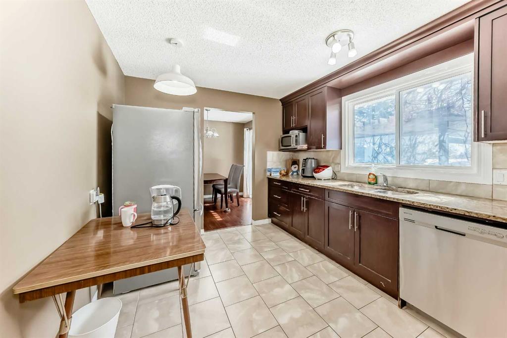 Situated on a quiet street in the established community of Dalhousie, this well-located 3+1 bedroom bungalow offers excellent potential for both homeowners and investors. The main level presents a functional and inviting layout, with generous living and dining areas filled with natural light. Main floor windows were replaced in 2014, adding long-term value and improved efficiency. The kitchen maintains its classic galley design and overlooks a beautifully maintained, south-facing backyard that backs directly onto green space—providing a rare sense of openness and privacy. A large, multi-level deck extends the living space outdoors, surrounded by mature trees and a peaceful setting. Upstairs features a primary bedroom with its own ensuite, along with two additional bedrooms and a full bathroom, offering practical family living. The fully finished basement expands the usable space with a comfortable family room anchored by a brick fireplace, a spacious fourth bedroom, a den, and a dedicated workshop area—ideal for hobbies or storage. With a short walk to the LRT, nearby schools, shopping, and quick access to major routes, this property combines convenience with a desirable northwest location.
