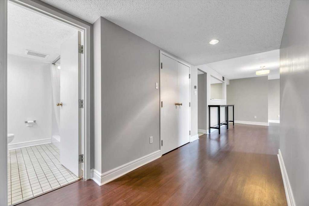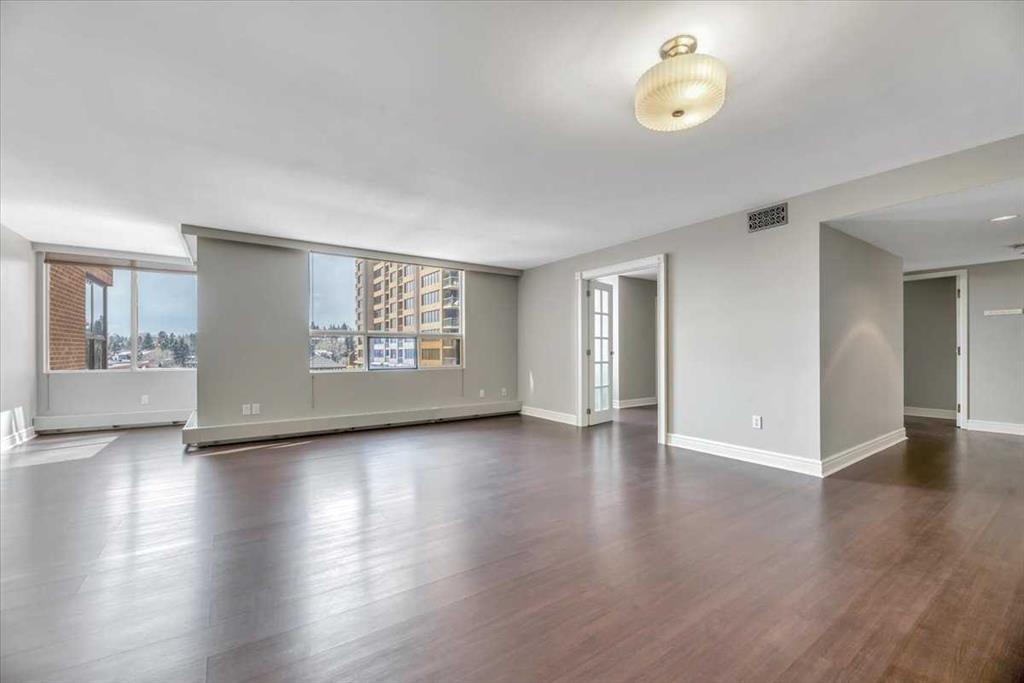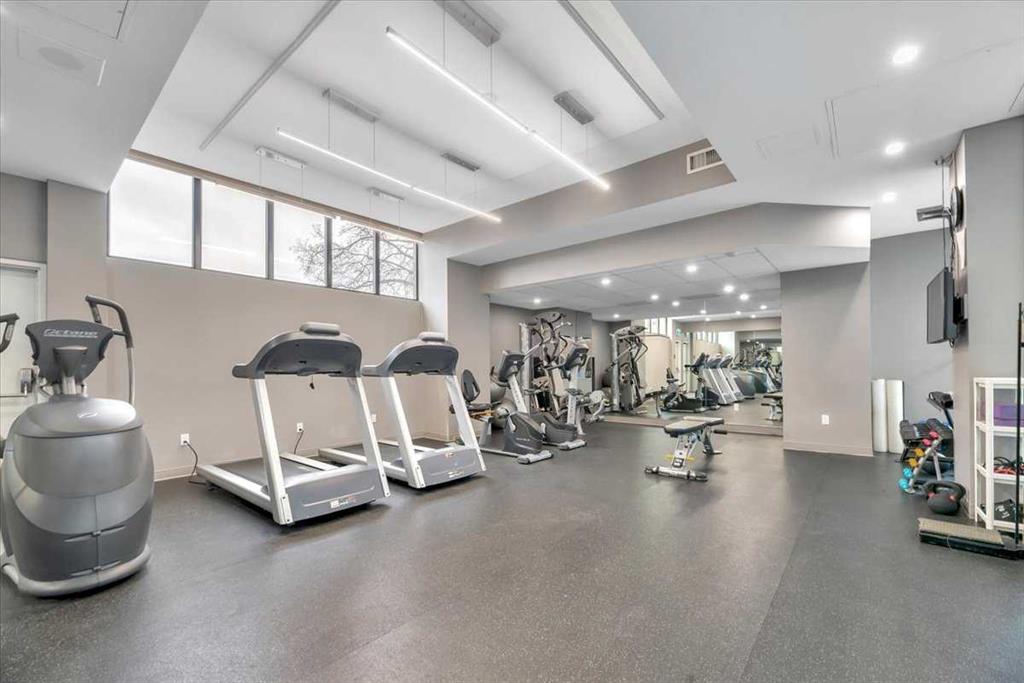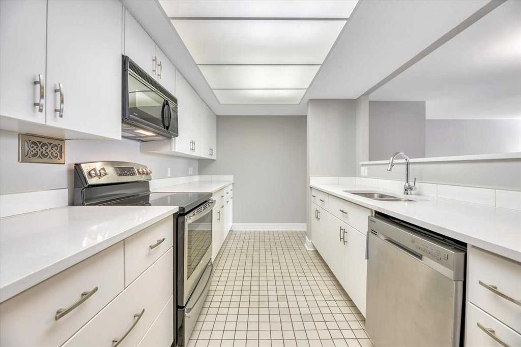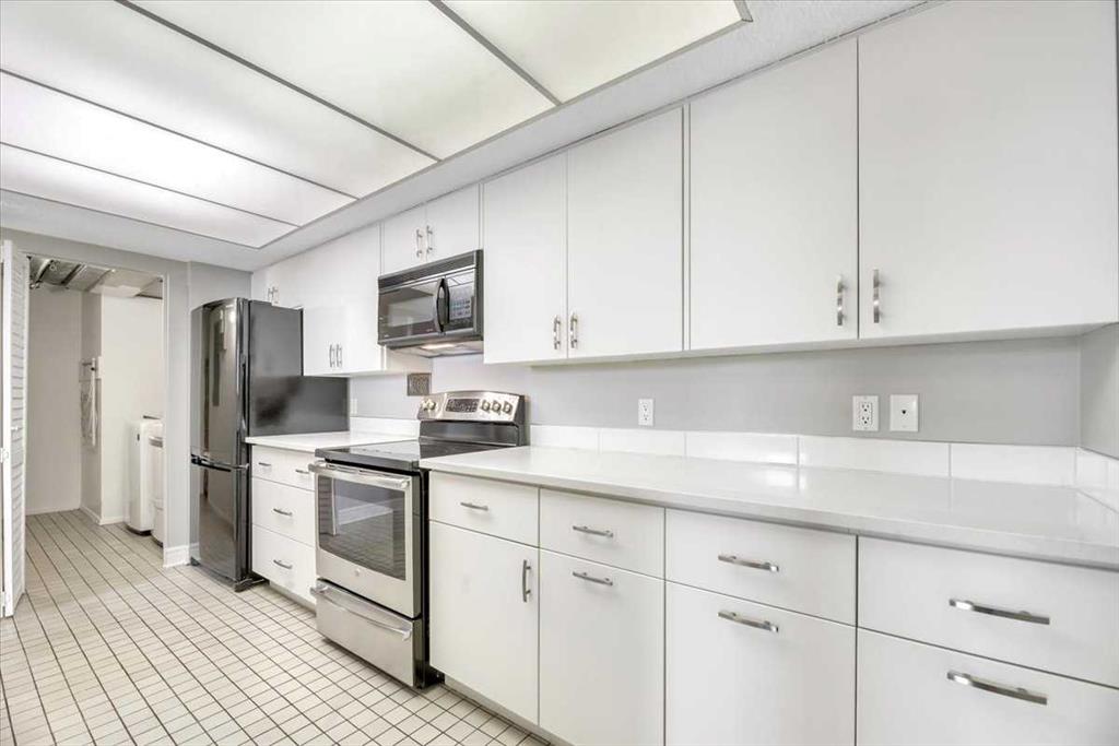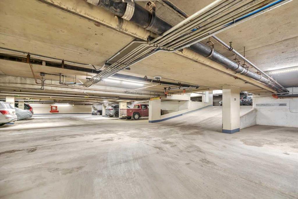 From the moment you pull up to the front entrance of this exclusive riverside residence, you will be impressed. The building is meticulously maintained with extensive upgrades throughout. Superbly located along the Elbow River with immediate access to an extensive route of bike and walking paths, as well as the prestigious Glenco Club, there are no disappointments here. For those lazy weekend afternoons, there is a large array of coffee shops, restaurants and bistros all within a comfortable walking distance. The unit itself is on the 5th floor. Its features include 2 bedrooms and 2 bathrooms, with a West-facing view overlooking a lovely green rooftop terrace. Its main living area is large and inviting with loads of decorating potential. Upgrades include newer mocha-colored laminate flooring, wide baseboards, fresh paint, refaced kitchen cabinets with white quartz countertops.... The indoor swimming pool is a gorgeous, bright, open lounging area. Additional features include a hot tub, a sauna, showers, a full gym, a library and a social room for those times when you want to host colleagues, friends or family for special occasions. You also have the convenience of an on-site car wash and Tennis Courts. Also included is one titled parking space, extra, fully enclosed assigned storage and visitor parking. This is a fabulous opportunity to move into the Riverstone at an entrance level
