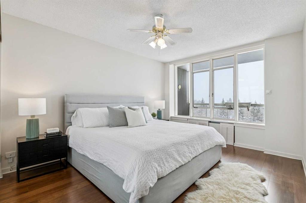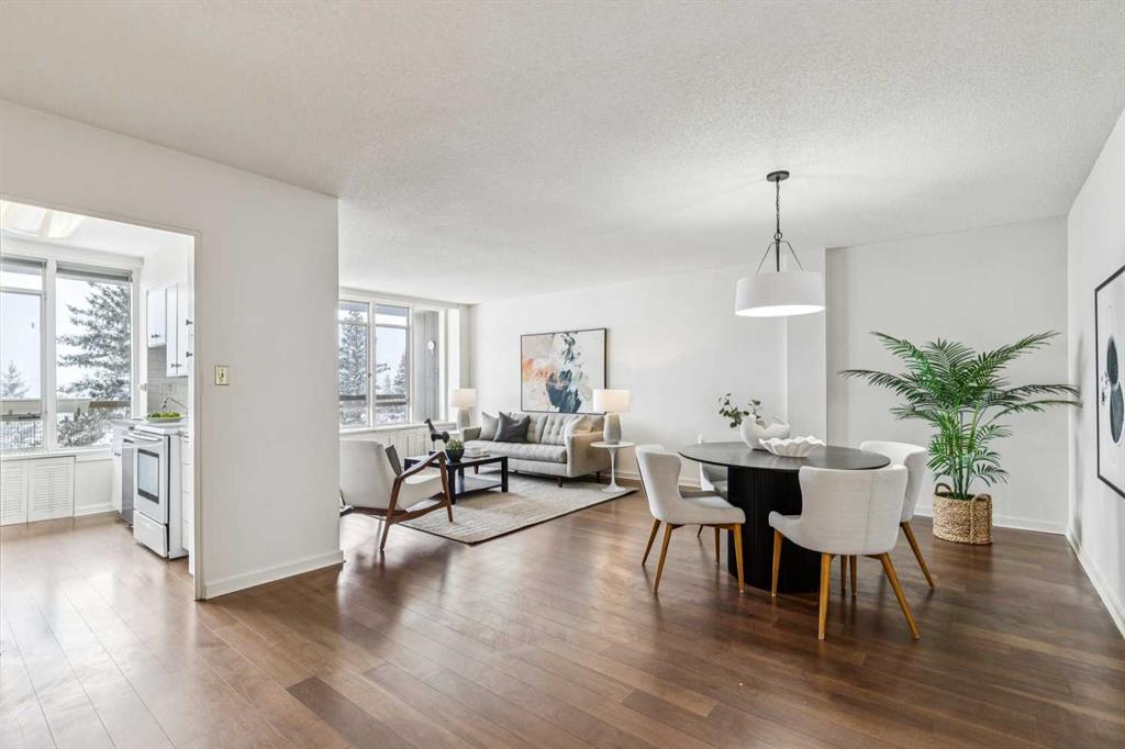 Situated in the desirable Rideau Towers, this bright + spacious two-bedroom apartment offers an comfortable lifestyle in a beautiful, park-like setting. The open-concept living + dining area is filled with natural light + finished in neutral décor + there are two generously sized bedrooms, a full bathroom + the convenience of en-suite laundry. Enjoy very pretty views overlooking the outdoor pool with mountain views beyond. This quiet, all-concrete building is well maintained + offers a strong sense of community. Residents enjoy an outdoor pool for summer use, along with the added benefits of underground parking + a dedicated storage room. The building is pet-friendly + the special assessment for upcoming balcony work has already been fully paid, providing additional value + peace of mind. Ideally positioned just off the ridge, the location offers incredible walkability to the pathway system + river, as well as easy access to Stanley Park, including its tennis courts + outdoor pool. The shops + restaurants of Fourth Street are just a short walk away + downtown remains easily accessible. Enjoy a quiet, nature-filled setting as well as urban convenience.
