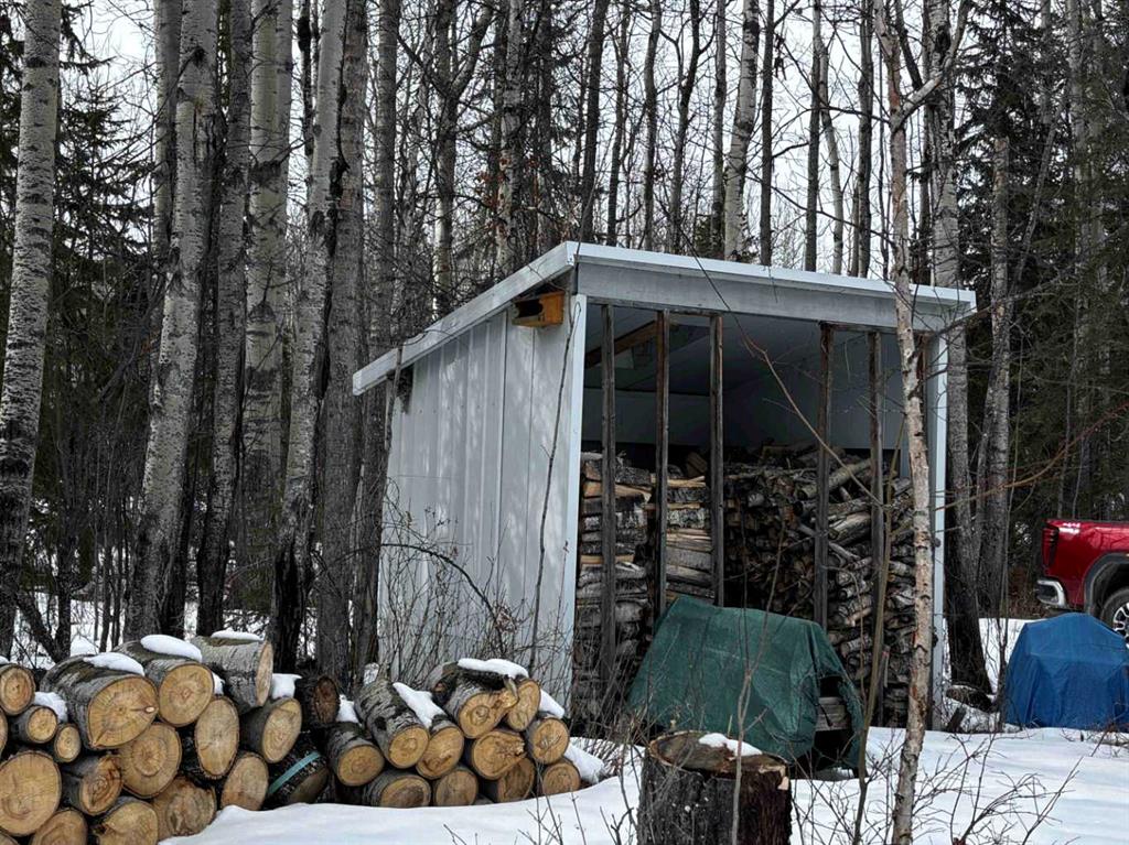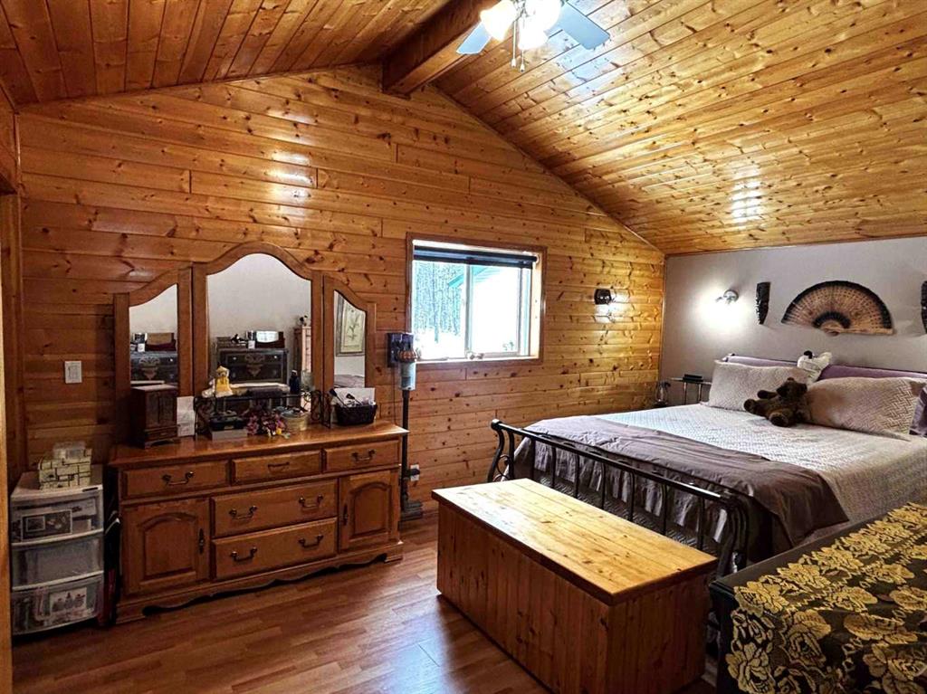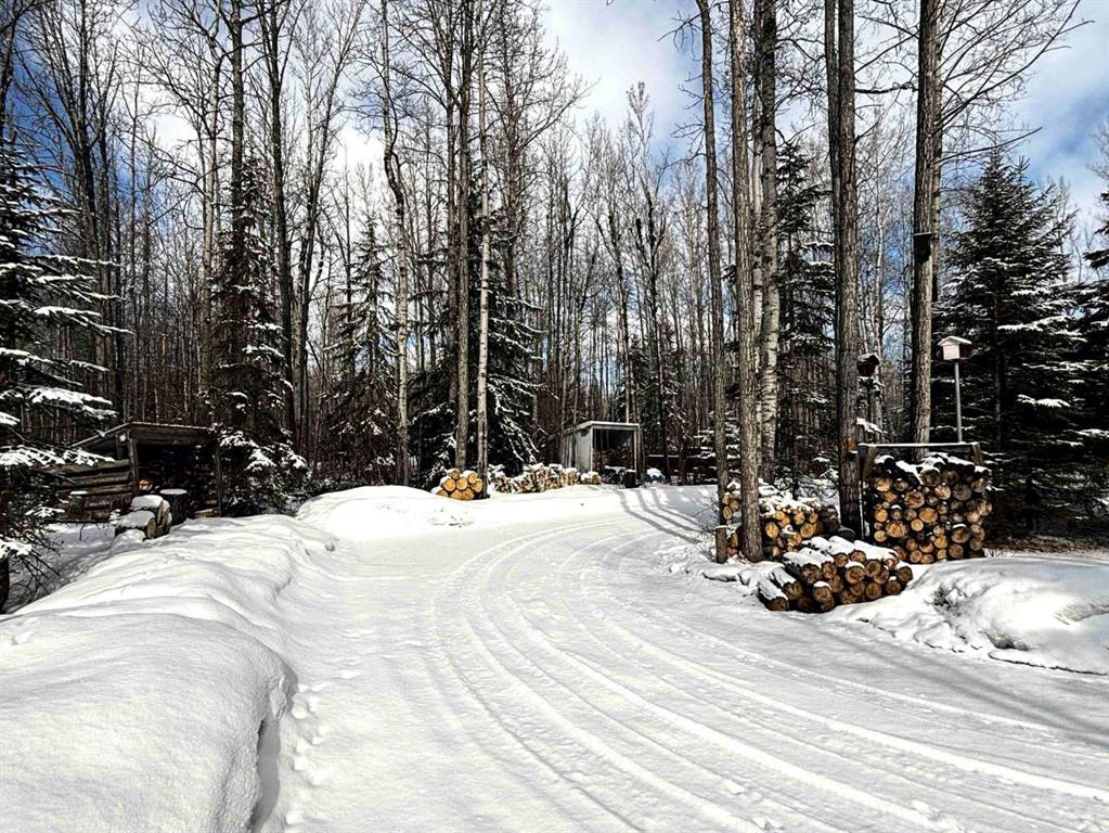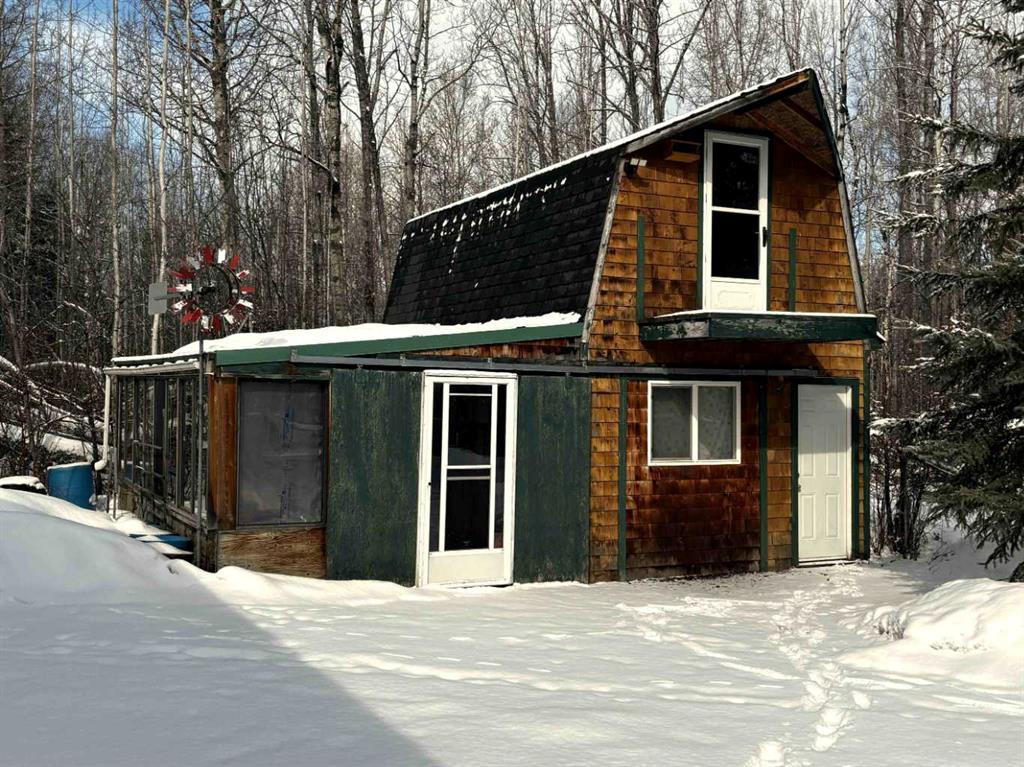 Set on 1.96 beautifully treed acres, this charming 1,245 sq. ft. home offers the perfect blend of comfort, privacy, and rustic appeal. Surrounded by mature forest, the property features a 26' x 28' heated garage, garden shed with enclosed lean-to, two wood sheds, a cozy fire pit area, and covered raised garden beds—ideal for enjoying the outdoors year-round. Inside, the home welcomes you with warm wood finishes throughout and a cozy woodstove that creates a true cabin feel in the living room. The main floor offers a functional kitchen and dining area, the main bedroom, 4-piece bathroom, and convenient main floor laundry. Upstairs, the loft provides additional sleeping space, perfect for guests or family. Modern comforts include a high-efficiency furnace, on-demand tankless hot water, water softener, and reverse osmosis system for drinking and cooking water. Enjoy the peace and privacy of country living on nearly 2 acres, all while being just minutes from Buck Lake and everything it has to offer.