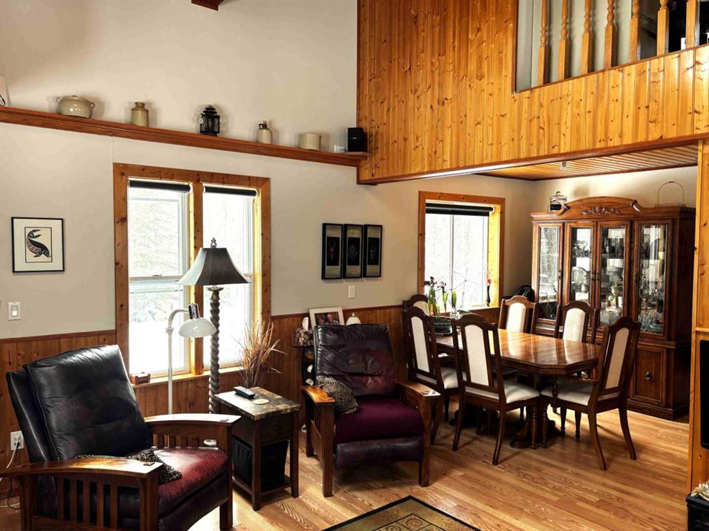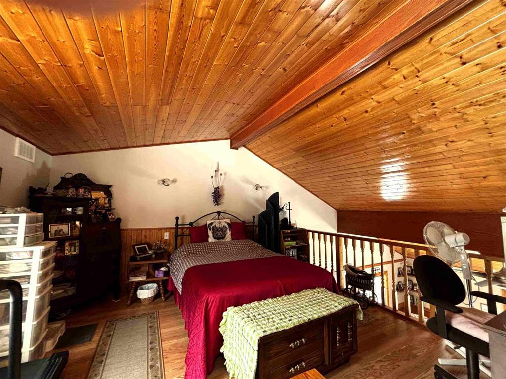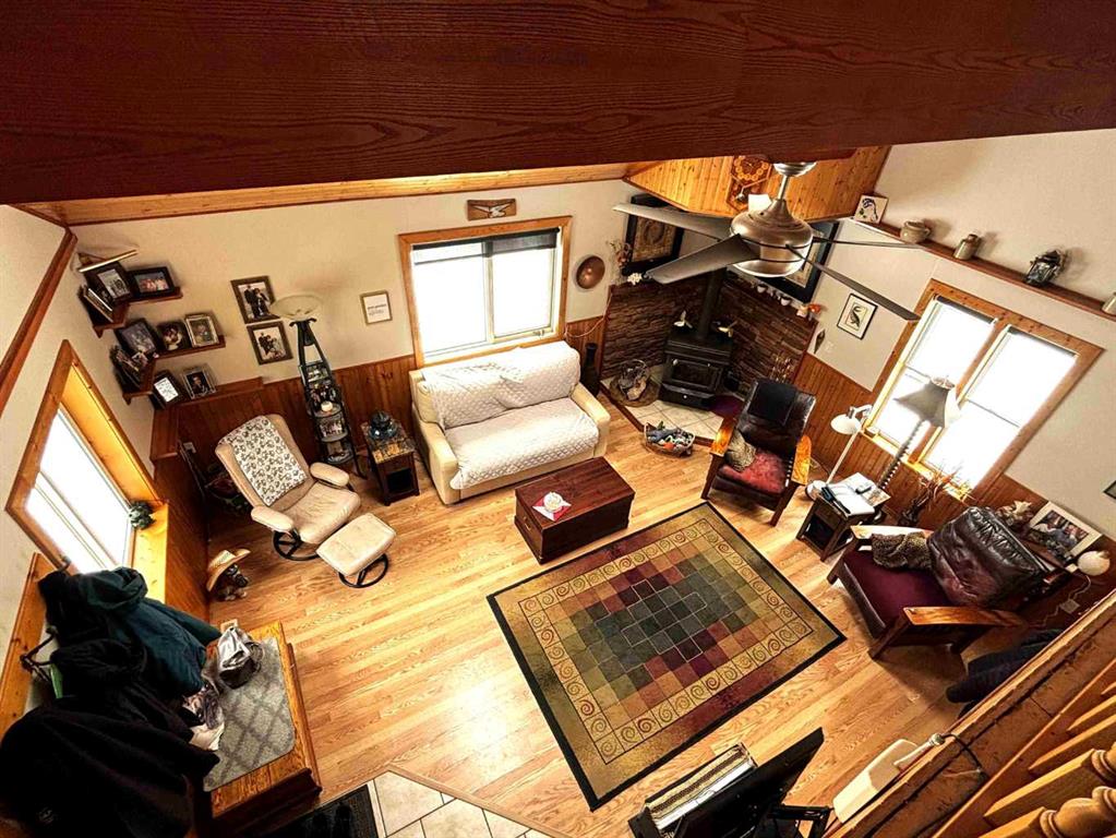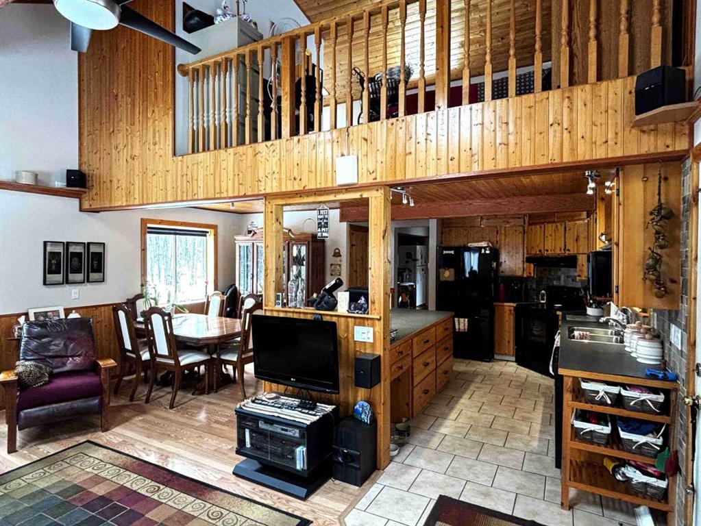 Set on 1.96 beautifully treed acres, this charming 1,245 sq. ft. home offers the perfect blend of comfort, privacy, and rustic appeal. Surrounded by mature forest, the property features a 26' x 28' heated garage, garden shed with enclosed lean-to, two wood sheds, a cozy fire pit area, and covered raised garden beds—ideal for enjoying the outdoors year-round. Inside, the home welcomes you with warm wood finishes throughout and a cozy woodstove that creates a true cabin feel in the living room. The main floor offers a functional kitchen and dining area, the main bedroom, 4-piece bathroom, and convenient main floor laundry. Upstairs, the loft provides additional sleeping space, perfect for guests or family. Modern comforts include a high-efficiency furnace, on-demand tankless hot water, water softener, and reverse osmosis system for drinking and cooking water. Enjoy the peace and privacy of country living on nearly 2 acres, all while being just minutes from Buck Lake and everything it has to offer.