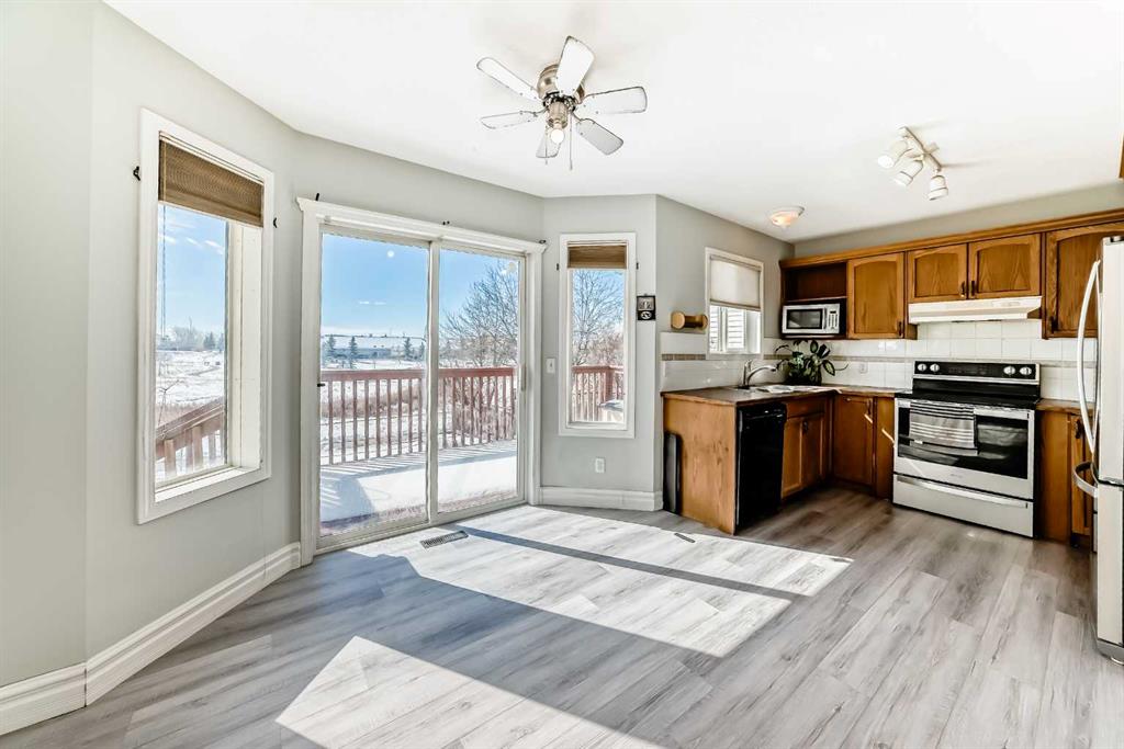 BACKING ONTO NOSE CREEK PRESERVE - 4 BEDROOMS - FULLY FINISHED - DOUBLE ATTACHED GARAGE. Stylish and spacious, all with a perfect location— Note: carpet will be changed with negotiated offer & buyer can choose their color/type... welcome to your modern sanctuary. Perfectly situated in the highly desired community of Silver Creek, backing directly onto Nose Creek Preserve! This upgraded home blends sleek design elements with everyday functionality across more than 1,900 sq ft of developed space. Tasteful modern upgrades, including brand new luxury laminate flooring that elevate your experience. Just off the front door find your access to your attached double garage, making parking effortless year-round, plus extra storage or a workshop. Then inside You're greeted by a flood of natural light through large windows, accentuating the open layout and stylish finishes. The main floor is all about connection and comfort. The inviting living room, anchored by a cozy gas fireplace, is made for everything from lazy Sundays to lively gatherings. Rich laminate flooring adds a contemporary touch, while the expansive kitchen steals the show with sleek stainless steel appliances that tie the space together beautifully. A generous dining area flows seamlessly to the backyard, where your south-facing, sun-drenched deck and patio invite you to enjoy morning coffees, summer BBQs, and effortless outdoor living with a beautiful view. Upstairs, the large primary suite offers a peaceful retreat with its own elegant 4pc ensuite. Two additional bedrooms and another 4pc Jack and Jill style bathroom provide plenty of room for family, guests, or a home office setup. The fully finished basement is as versatile as it is cozy — the perfect spot for movie nights, a kids’ zone, or a quiet workspace — plus a spacious fourth bedroom for added flexibility. Located in the vibrant, family-friendly community of Silver Creek, you're just steps from parks, playgrounds, walking and biking paths, schools, transit, and all the shopping and amenities that NW Airdrie has to offer. NOTE: carpets on the upper level and basement need replacing & can be negotiated into offer so buyer can choose their color/type or make a deal without the carpet replacement. Book your private viewing today while it lasts!