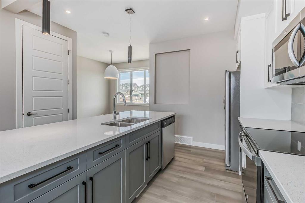 Welcome to this brand-new Glacier model in the sought-after Waterford community of Chestermere—where modern design meets everyday functionality. Step inside to a bright, open-concept layout enhanced by 8’ interior doors and engineered hardwood flooring on the main level, paired with plush carpet upstairs for added comfort. The heart of the home features a chef-inspired kitchen with quartz countertops throughout, offering durability, style, and plenty of workspace for daily living or entertaining. The inviting living area is anchored by a cozy electric fireplace, perfect for relaxing evenings or hosting guests, while the thoughtful layout ensures seamless flow throughout the main floor. Upstairs and beyond, the home continues to deliver on space and versatility, ideal for families, professionals, or investors looking for long-term value. A standout feature is the separate side entrance, providing excellent potential for future basement development (subject to city approval)—adding flexibility down the line. Set in a growing, family-friendly community close to parks, schools, and amenities, this home offers the perfect balance of lifestyle and opportunity. Take advantage of the First-Time Home Buyers’ GST Rebate—potential savings up to $50,000. Eligible buyers must be 18+, Canadian citizens or permanent residents, and not have owned or lived in a home they or their spouse owned in the past four years. Applies to qualifying contracts after May 27, 2025, subject to CRA guidelines. Note: Photos are of a similar model for illustration purposes only. Actual finishes, colors, and elevation may vary. Call Today!