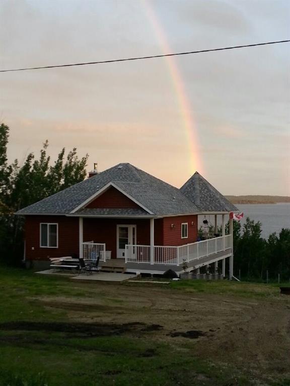 This stunning 1.6-acre lakefront property offers breathtaking views of Lac La Biche Lake, making it an ideal spot to live or unwind with friends. With over 1,800 sq.ft of finished space, the home boasts high-end finishes, including granite countertops, premium stainless steel appliances, Kitchen Craft cabinets, engineered hardwood floors, a steam shower, and a walk-out basement. Two covered decks provide spectacular views of the lake. Located in the Golden Sands subdivision, the property is 2.5 hours south of Fort McMurray and 3 hours north of Edmonton. Built to the highest standards, this home features a glued and screwed subfloor, 9' ceilings throughout, an ICF block basement, in-floor heating with four zones, a heatilator fireplace, triple-glazed windows, 35-year shingles, and 220 wiring to a 40' sea-can. Additionally, there is another 20' sea-can, a shed, outdoor wiring for a hot tub, and a geotechnical report available. This listing includes two titled lots, offering the potential to sell one or use it for parking a friend’s RV for weekend visits. Enjoy the beauty of sunsets and the tranquility of this exceptional home for years to come.