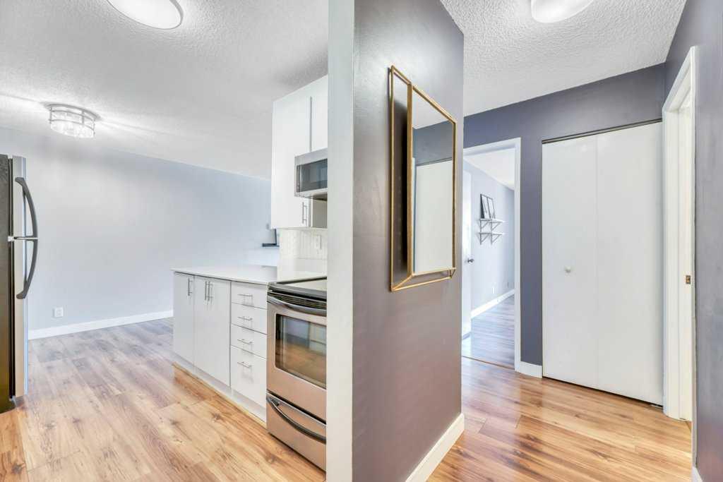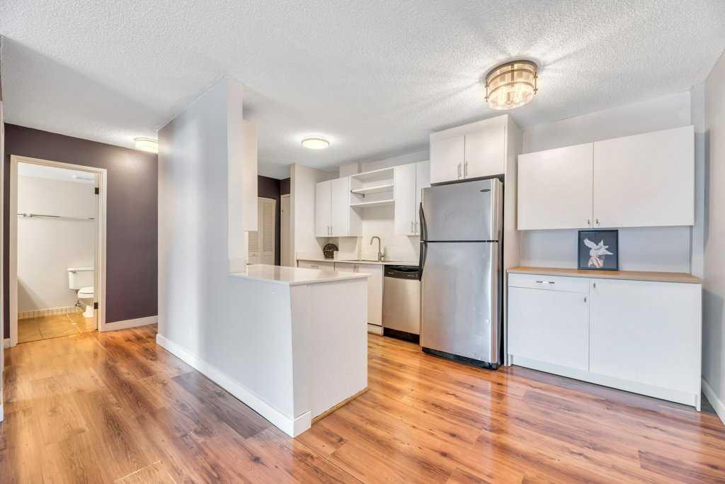SPACIOUS, 1 BED + 1 BATH / QUIET TREE LINED STREET / QUICK ACCESS TO DOWNTOWN & CHINOOK MALL / Move-in with ease to this refreshed, 1 Bed + 1 Bath Unit which is sure to impress! Recent updates include: painted kitchen cabinets & quartz counters, kitchen backsplash, paint throughout and newer light fixtures. The Open Floor Plan effortlessly combines the Kitchen, Dining & Living Room; host and gather with ease. Hard Floors throughout make cleaning a breeze. Relax outdoors on the private balcony, facing the beautiful tree-lined street for quiet mornings & evenings. The Primary Bedroom offers room for large furniture. The Storage Room is spacious and may offer future In-Suite Laundry with Board Approval. Covered carport parking stall included too. A fantastic opportunity for a simplistic, laid-back lifestyle & move-in ready! Fantastic location. Book a showing today!