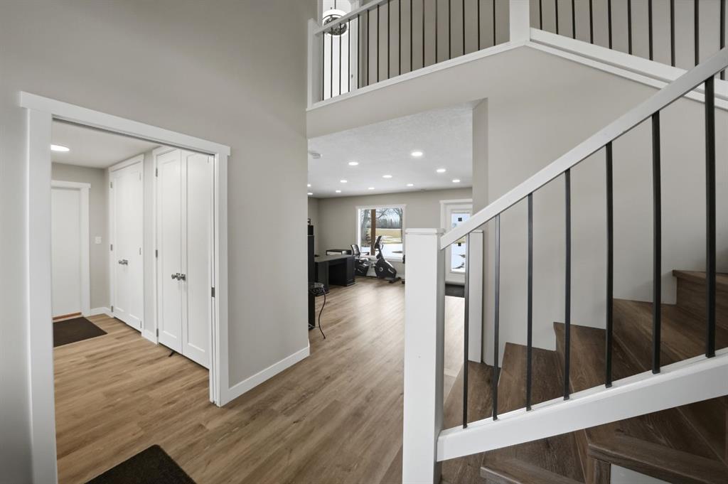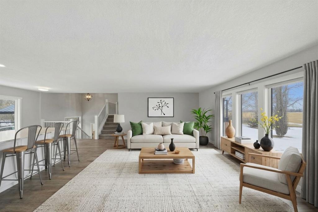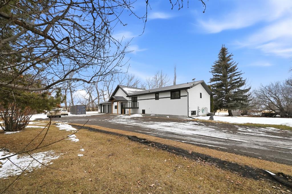 Experience the perfect blend of country living and modern comfort on this stunning 14-acre property—fully renovated, move-in ready, and ideal for families, hobby farming, or an equestrian lifestyle. Enjoy this 2,500 sq ft modified bi-level with treed perimeter, private ½ km driveway, a 5-acre fenced pasture with water and livestock shelter—perfect for horses or hobby farming. The north side features a chicken coop, multiple outbuildings, a 20 x 26 secondary building equipped with power gas and water. Ample space remains for equipment or RV storage. The 36' x 60' Heated shop has 13' ceilings allowing for a a Mezzanine area, 220 power and cement floor with a 12' x 20' door for easy access for machinery. Underground power has been run to most outbuildings. The south side showcases a landscaped yard with large garden, secluded fire pit area, with RV hook ups including water, power and sewer and stunning West-facing views. The 5-bedroom, 3-bath home includes an attached heated 24x25 garage with 8 ft doors and 3-season sunroom./gym. Entering the home enjoy a vaulted entrance, functional mudroom, office/craft/rec. room with in-floor heat, and 10x19 covered deck. The open-concept kitchen/living area features quartz countertops, a large island, all-new stainless-steel appliances, and a spacious butler’s pantry with counter space, pull-out shelves, fridge/freezer combo, WOW! Upstairs, the primary retreat offers vaulted ceilings, private west-facing deck, luxurious 4-piece ensuite, separate water closet , standalone tub, and walk-in closet with separate washer/dryer. The lower level includes a family room, two additional large bedrooms with egress windows, full bath, large laundry, ample storage, and a cold room for garden harvests. Enjoy a quiet, family-friendly country lifestyle on 14 private acres with room to play, garden, and explore—just minutes SE of Red Deer.