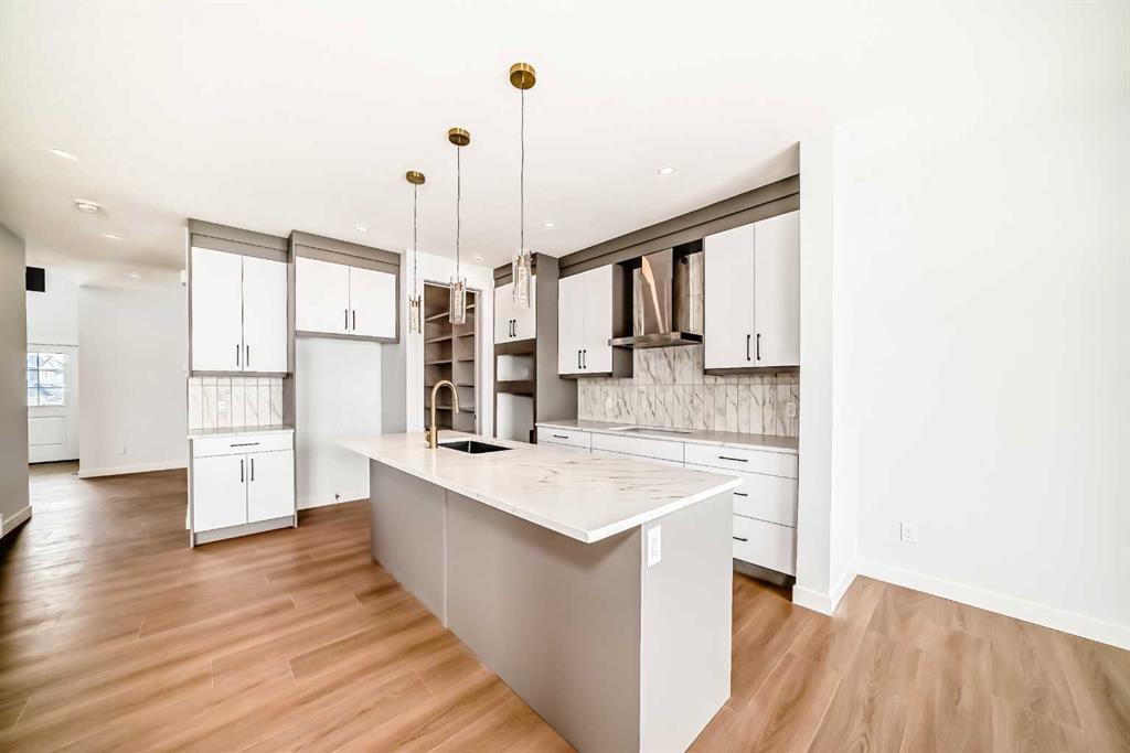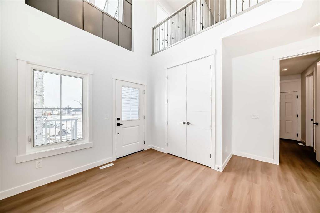 Nestled on a desirable street in Strathmore, this magnificent two-story residence on Lake Estates Circle offers an unparalleled living experience. Step inside to discover a thoughtfully designed main level that immediately impresses. Soaring high ceilings adorn the entryway, den/office, and living area, creating an atmosphere of elegance and spaciousness. The heart of the home is undoubtedly the gourmet kitchen, seamlessly integrated with a cozy fireplace, making it an ideal space for both culinary creations and comfortable gatherings. For added convenience, a practical walk-in pantry provides direct access from the kitchen to both the garage and the mudroom, streamlining daily routines. Ascending to the second level, you'll find a sanctuary of comfort and privacy. Here, two opulent master bedrooms await, each boasting its own En-suite washroom, offering a luxurious retreat for relaxation and rejuvenation. Complementing these are two additional generously sized bedrooms, serviced by a well-appointed shared washroom, making this home perfect for a growing family or those who love to host. GST Eligible for first time home buyer. Basement remains unfinished, providing ample opportunity for customization. Landscaping will include one tree in the front yard before the possession date.