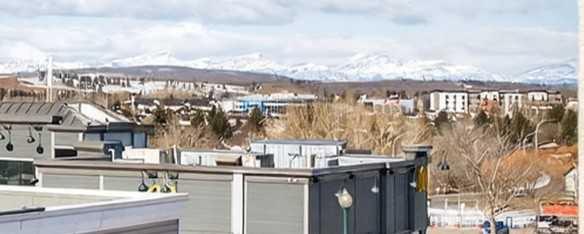 RENOVATED DOWNTOWN CONDO. Experience the perfect blend of comfort and convenience in this meticulously maintained 2-BEDROOM, 2-BATHROOM unit. Flooded with natural light from its prime southwest-facing exposure, the open-concept floor plan seamlessly connects a spacious dining area to a modern kitchen featuring NEW APPLIANCES and ample cabinetry. Step out onto your private, sun-soaked deck and enjoy MOUNTAIN VIEWS— the ultimate backdrop for your morning coffee or evening glass of wine. The intelligent "split-wing" design offers maximum privacy, placing large bedrooms on opposite sides of the living space; ideal for roommates or a home office. The primary suite boasts a walk-through closet and a private 4-piece ensuite, while the second spacious bedroom is steps away from an additional 4-piece bath. Bonus features include: Ample in-suite storage and a premium parking stall located directly beside the entrance for effortless access. PRIME DOWNTOWN location situated just steps from shops, restaurants, groceries, library, and transit. EXCEPTIONAL VALUE in a sought-after downtown location!