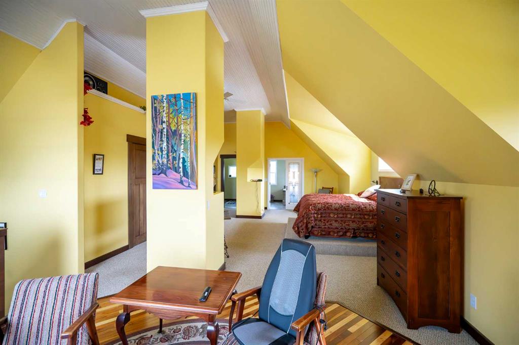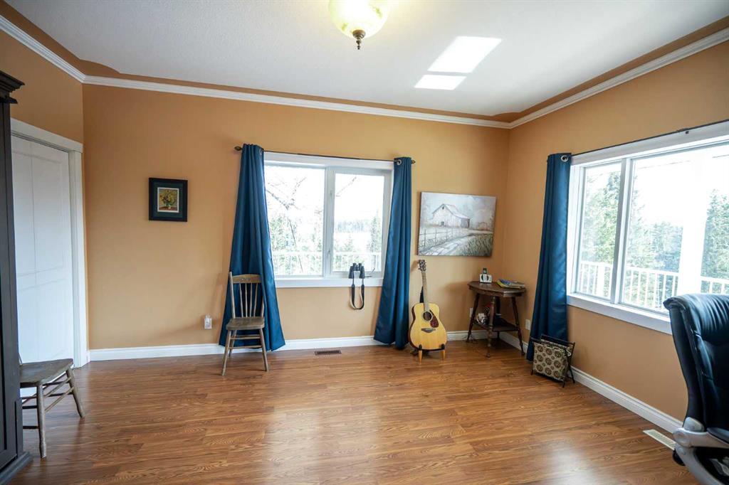 If privacy, nature, and outdoor living matter, this exceptional 86-acre sanctuary overlooking Adams Lake offers a rare and peaceful setting. Featuring your own private lake, rolling meadows, and mature forest protected by a conservation easement, this property is rich in wildlife and natural beauty. A paved driveway leads to a custom 2012 walk-out home with 2,672 sq ft of living space. The bright, open design showcases soaring ceilings, a stone fireplace, and expansive bay windows framing stunning lake and Rocky Mountain views. The gourmet kitchen features granite countertops, custom cabinetry, large island, and walk-in pantry, flowing seamlessly to the dining area and wraparound deck. The upper-level primary retreat is a true escape with sitting area, fireplace, dual walk-in closets, and two ensuites, including a spa-inspired bath overlooking the lake. The fully developed walk-out basement offers in-floor heat, wood stove, and wine cellar. Additional features include a triple attached heated garage, solar system tied to the grid, new shingles (March 2026), and a Beand NEW spring of 2026- 36x52ft heated Shop with 12x12ft overhead doors & 220V power. Enjoy year-round recreation with a private dock, skating, kayaking, greenhouse, RV hookups, and nearby access to Glennifer Lake. Conveniently located in the Raven Area, just minutes to Spruce View, Innisfail, and Red Deer—this is luxury country living at its finest.